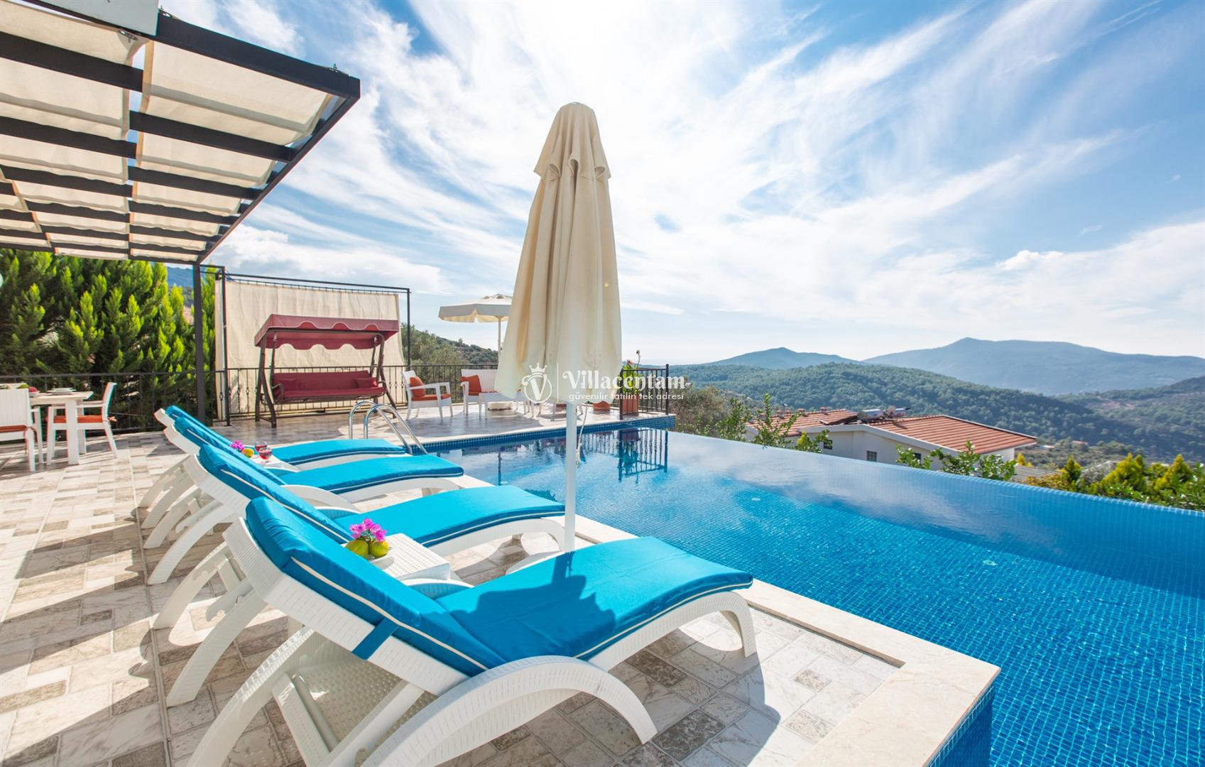Villamız Kalkan Üzümlü mevkiinde konumlandırılmıştır. Eşsiz doğa manzarası ile iç içe tasarlanmış villamız 2 yatak odalı 5 kişi konaklama kapasitesine sahiptir. 2020 yılında inşaatı tamamlanan villamız son derece lüks eşyalarla dekore edilmiştir. Villamız doğa içerisinde gözlerden uzak, sakinliğin ve dinginliğin tadını gün boyunca uzak bir açıdan Patara Plajını inceleyebilir, sonsuz huzurla tatilinizi sürdürebilirsiniz. Çekirdek aileler ve balayı çiftlerimizin de tercih ettiği villamızın keyfini çıkarmanız için sizleri villa Eslem'e davet ediyoruz.