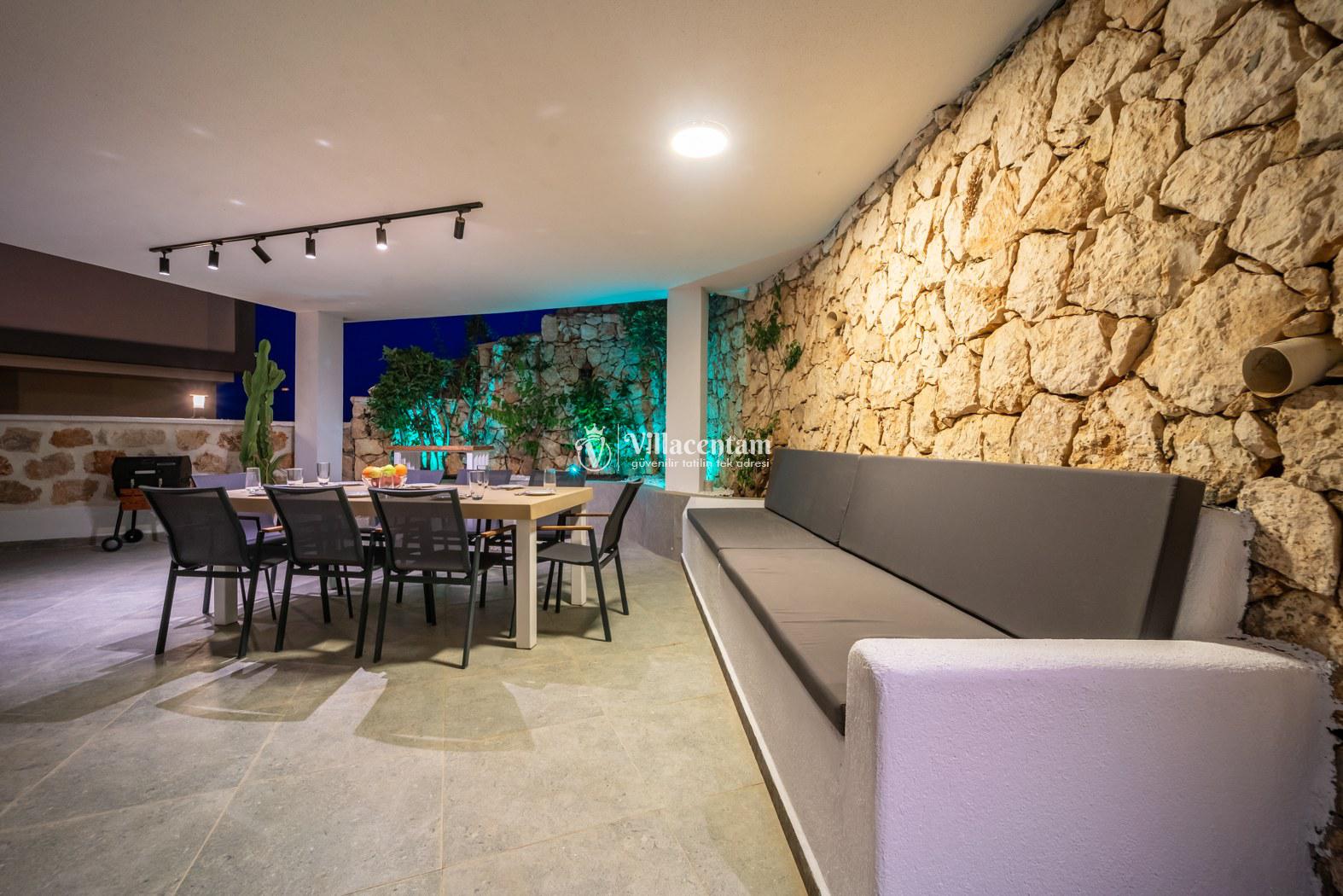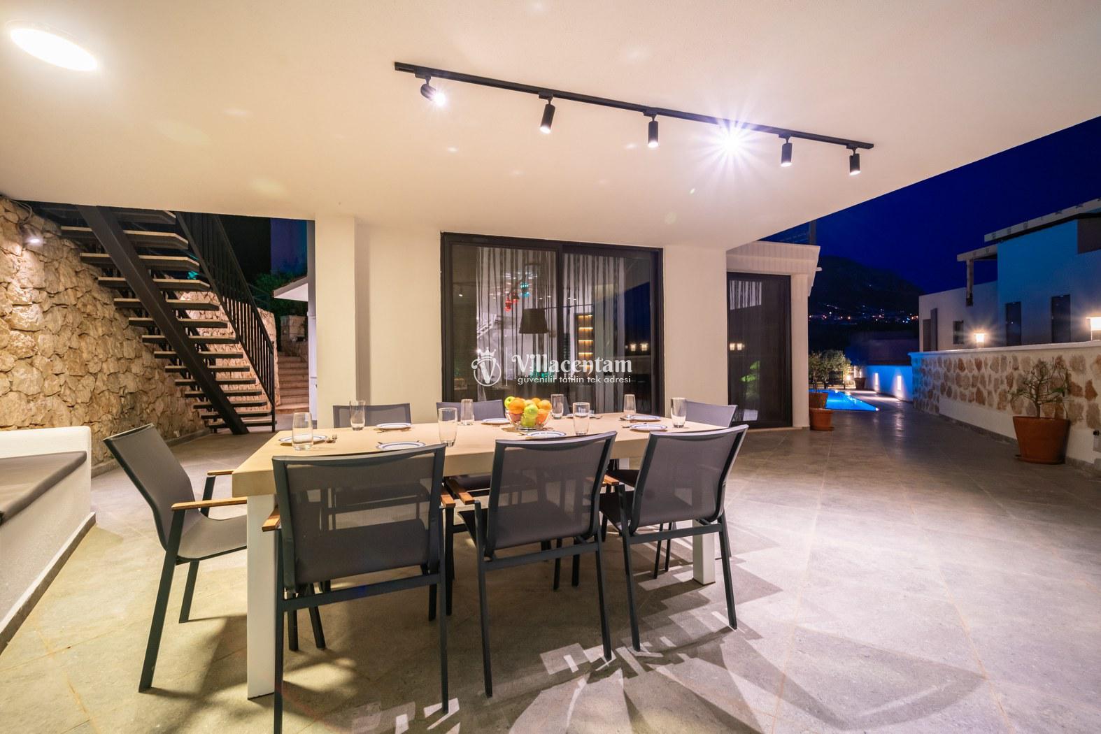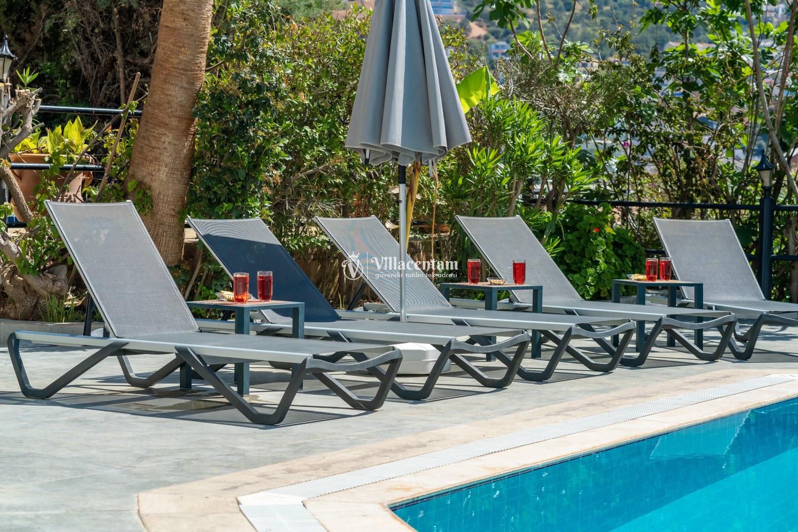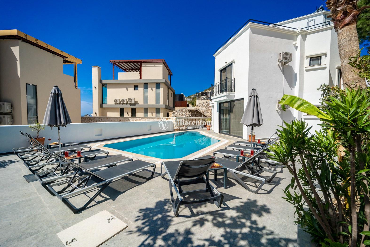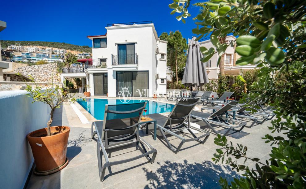 Villa Fey, Kalkan Ortaalan mevkiinde konumlanmakta olan yeşilliklerle kaplı doğa manzarasına hakim kiralık villalarımız arasında yer almaktadır. Modern ve konforlu bir şekilde dekore edilen yazlık villamızda 4 adet yatak odası bulunmakta olup, 8 kişiye konaklama imkanı sağlamaktadır. Villamızın terasında tüm yorgunluğunuzu giderebileceğiniz jakuzi yer almaktadır. Balayı çiftleri, çekirdek aileler ve geniş aileler rahatlıkla tercih edebilirler. Sevdiklerinizle birlikte keyif dolu anlar geçirebilir, kahvaltı ve barbekünüzün tadını çıkarabilirsiniz. Hayallerinizin de ötesinde huzurlu bir yazlık villada tatil için Villa Fey'i tercih edebilirsiniz.