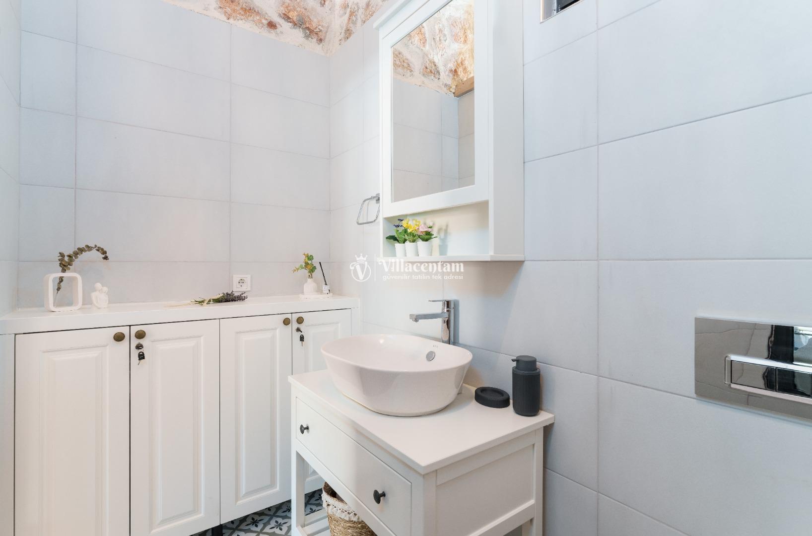 *Villalarda sıcak su için güneş enerjili su ısıtma sistemleri kullanılmaktadır. Çok yoğun sıcak su kullanımında, yoğunluğa ve su tankının büyüklüğüne bağlı olarak su tankında sıcak su tükenebilmekte ve tekrar suyun ısınması için belirli bir süre geçmesi gerekmektedir. Bu not sadece bu villa ile ilgili değil, tüm villalarımız için geçerli bir durumdur.