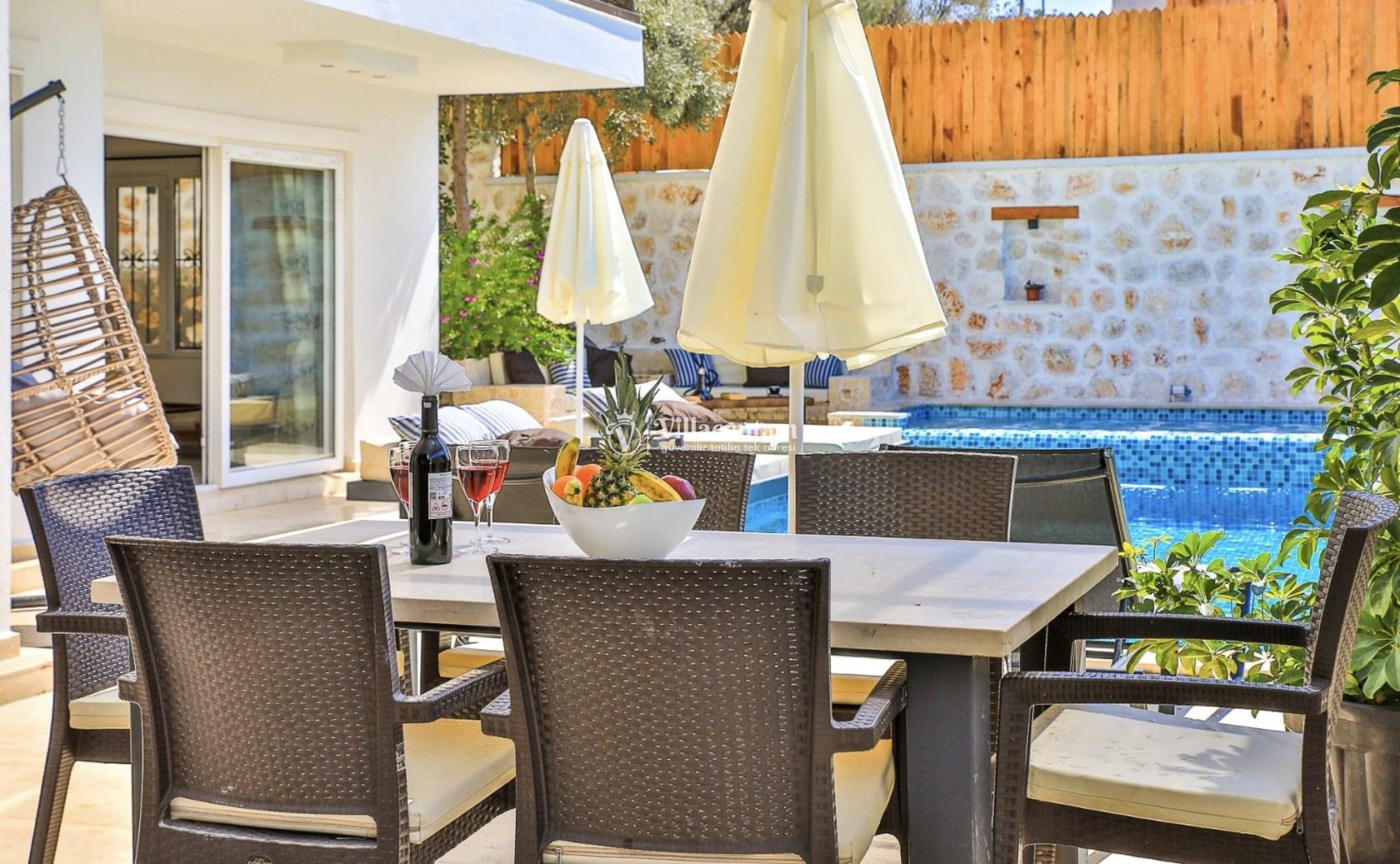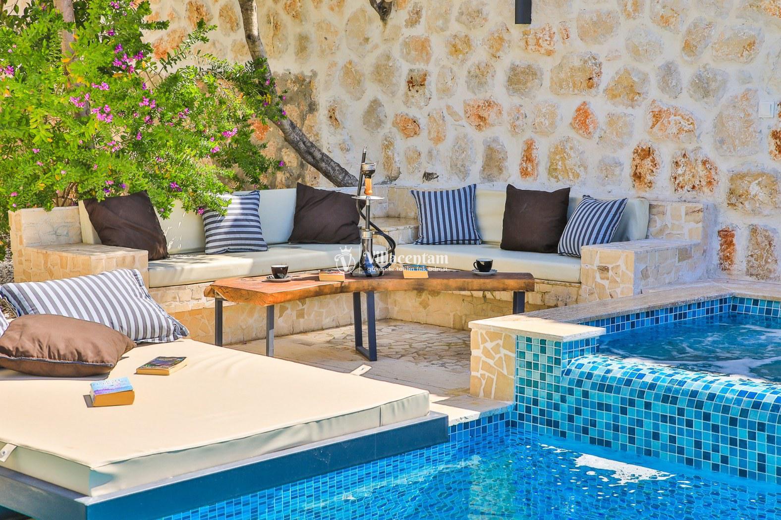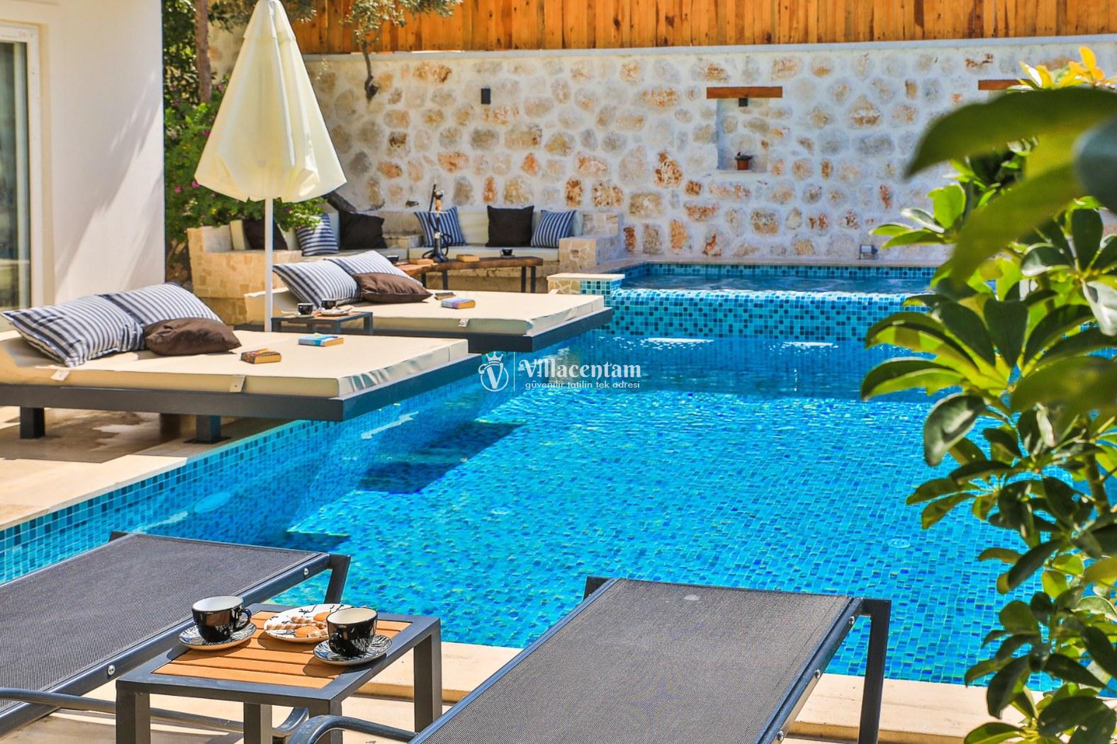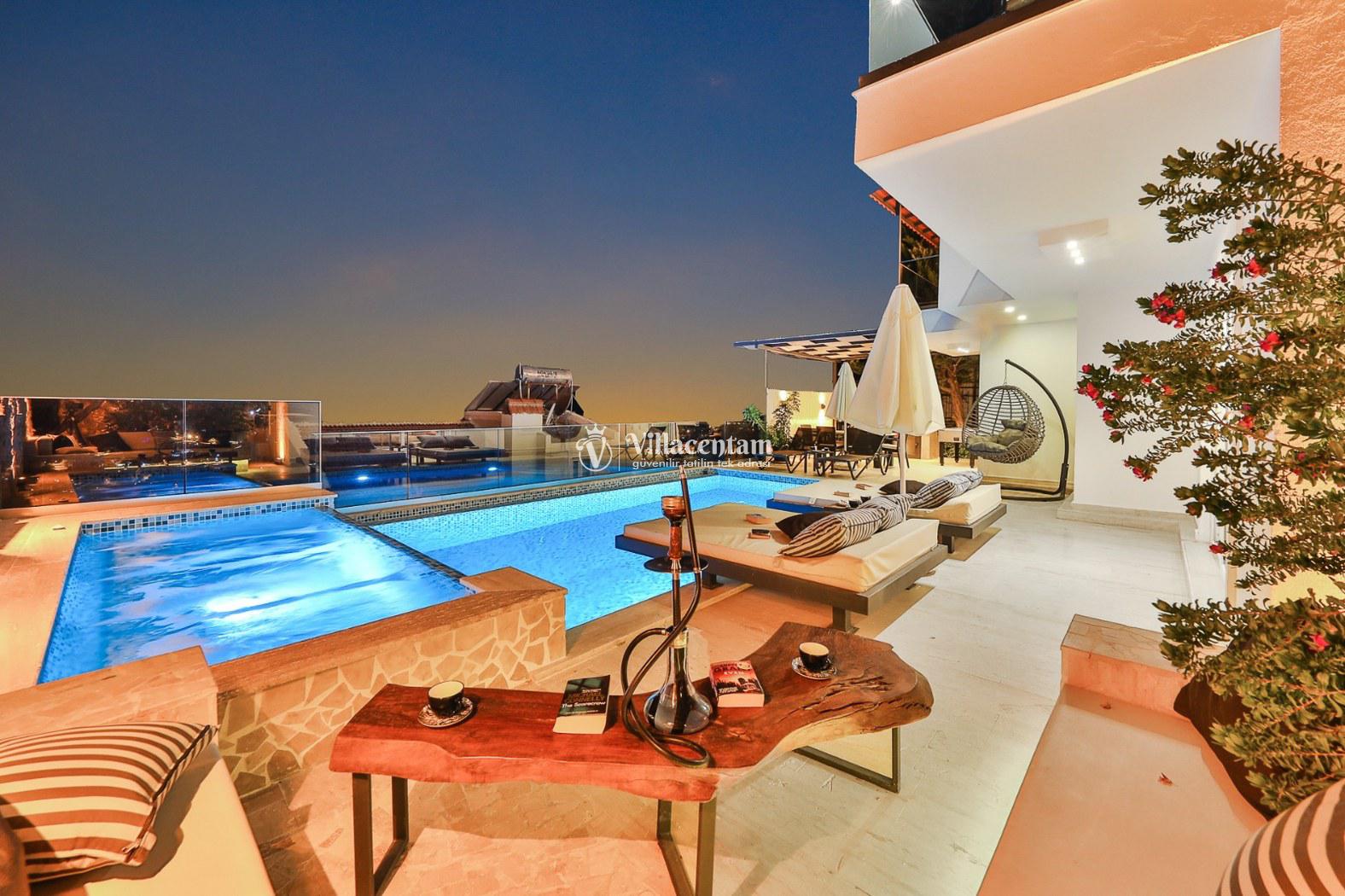 Villa Flamingo, Kalkan Kızıltaş mevkiinde konumlanmakta olan masmavi muhteşem deniz ve yeşilliklerle kaplı doğa manzarasına hakim kiralık villalarımız arasında yer almaktadır. Modern ve konforlu bir şekilde dekore edilen yazlık villamızda 3 adet yatak odası bulunmakta olup, 6 kişiye konaklama imkanı sağlamaktadır. Yatak odalarından bir tanesinin içerisinde tüm yorgunluğunuzu giderebileceğiniz eşsiz deniz manzarasına karşı jakuzi yer almaktadır. Havuzunuzda ve havuz terasında yer alan hamakta keyifli anlar geçirebilir, kahvaltı ve barbekünüzün tadını çıkarabilirsiniz. Hayallerinizin de ötesinde huzurlu bir yazlık villada tatil için Villa Flamingo’ yu tercih edebilirsiniz.