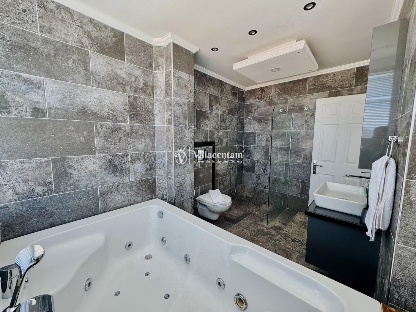 Villalarda sıcak su için güneş enerjili su ısıtma sistemleri kullanılmaktadır. Çok yoğun sıcak su kullanımında, yoğunluğa ve su tankının büyüklüğüne bağlı olarak su tankında sıcak su tükenebilmekte ve tekrar suyun ısınması için belirli bir süre geçmesi gerekmektedir. Bu not sadece bu villa ile ilgili değil, tüm villalarımız için geçerli bir durumdur
