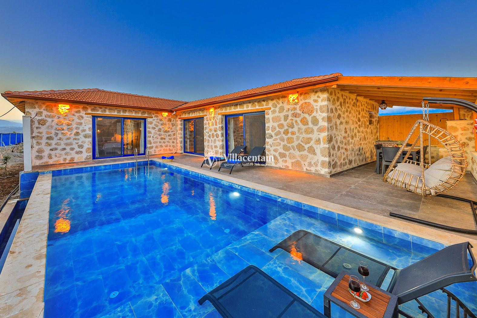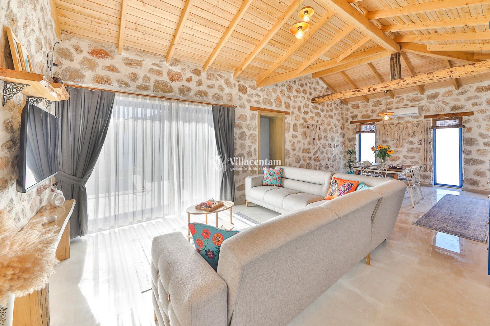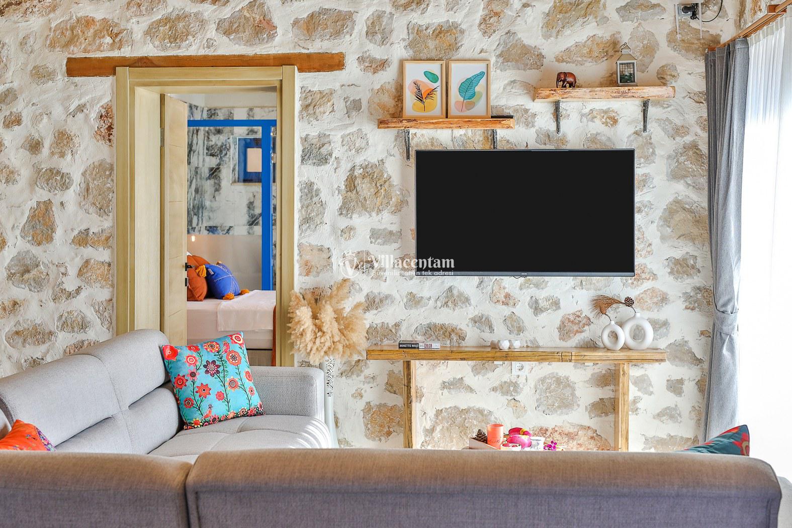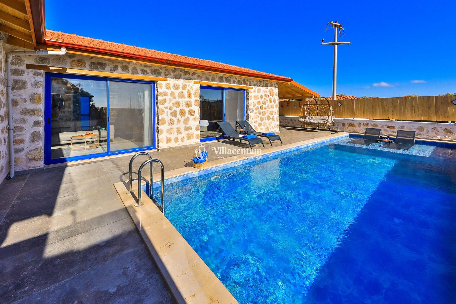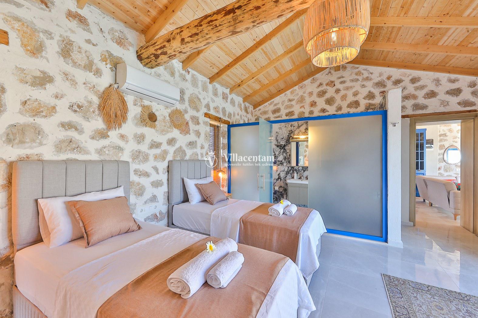Villamız taş mimarisiyle zarif bir tasarıma sahiptir ve konforunuz düşünülerek özenle dizayn edilmiştir. Her iki yatak odasında da özel jakuzi bulunur; bu özellik, tatilinizi hem rahat hem de keyifli kılar.