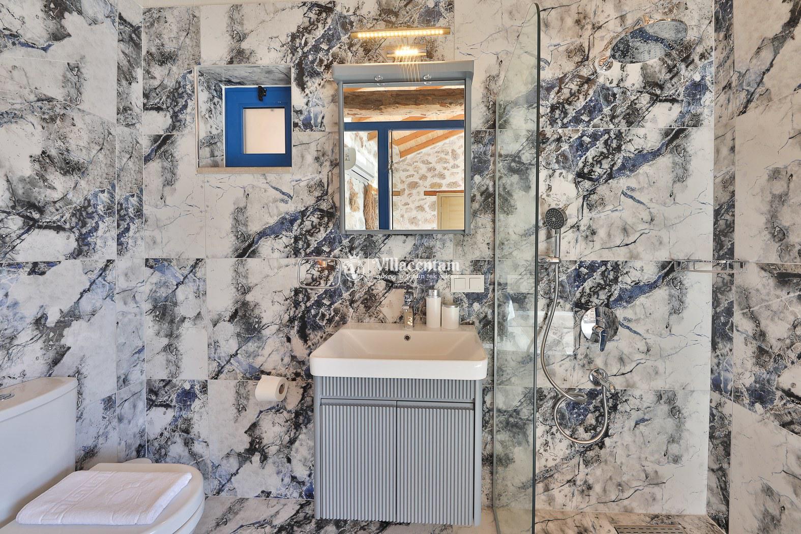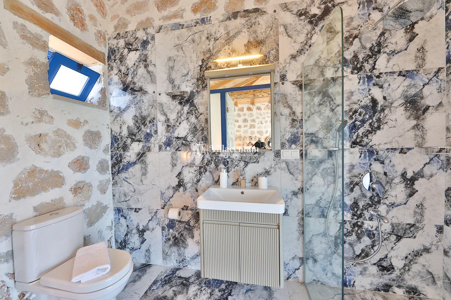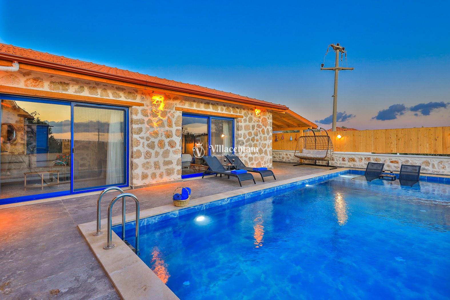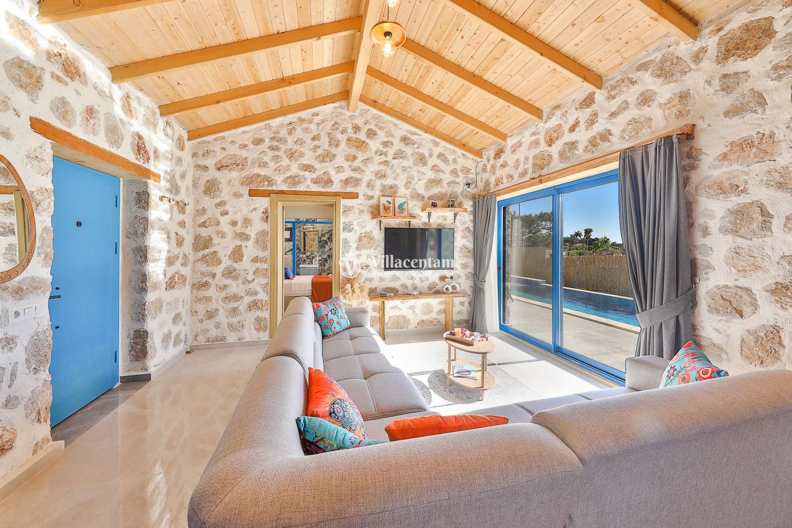 Villamız taş mimarisiyle zarif bir tasarıma sahiptir ve konforunuz düşünülerek özenle dizayn edilmiştir. Her iki yatak odasında da özel jakuzi bulunur; bu özellik, tatilinizi hem rahat hem de keyifli kılar.