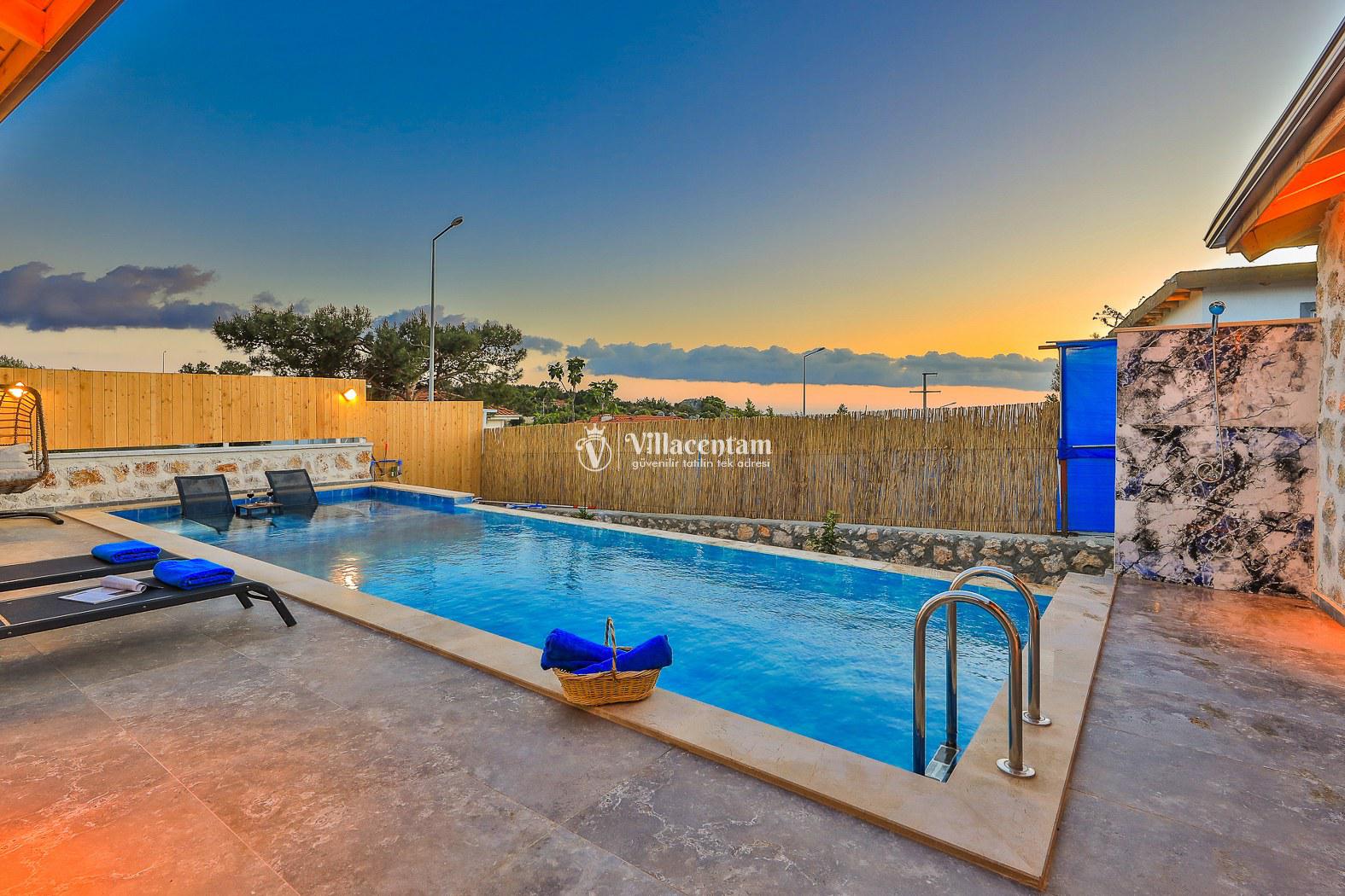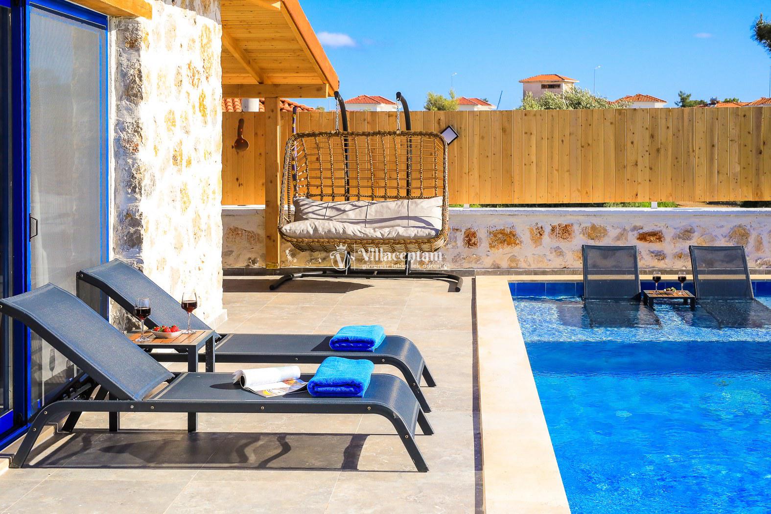 Dış mekanda korunaklı özel havuz ve ferah havuz terası ile mahremiyete önem veren misafirler için mükemmel bir dinlenme alanı sunar. Havuz çevresinde şezlong, barbekü ve oturma alanı sayesinde bahçe keyfini doyasıya yaşayabilirsiniz.