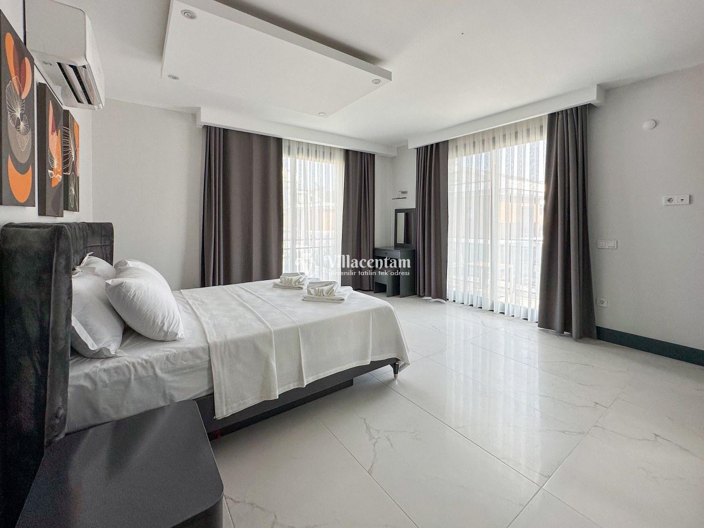 Villa Galaksi Dünya 4, Fethiye Çalış mevkiinde konumlanan geniş aileler ve kalabalık arkadaş grupları için ideal bir konaklama alanı sunan 8 kişilik özel villamız, modern mimarisi ve konforlu tasarımıyla misafirlerine üst düzey bir tatil deneyimi yaşatmak üzere özenle hazırlanmıştır. Geniş yaşam alanları, ferah odaları ve tüm ihtiyaçlara cevap veren modern donanımlarıyla villa; hem huzurlu hem de eğlenceli bir tatil geçirmek isteyen misafirlerin gözde seçeneklerinden biridir. Villanın iç mekânında kalite ve rahatlık ön planda tutulmuş; geniş salon alanı, konforlu oturma grupları ve tam donanımlı mutfak ile ailece zaman geçirmeyi keyifli hale getiren bir atmosfer oluşturulmuştur. Her biri özenle dizayn edilen yatak odaları, rahat yatakları ve modern banyolarıyla konaklama süresince maksimum konfor sağlar.