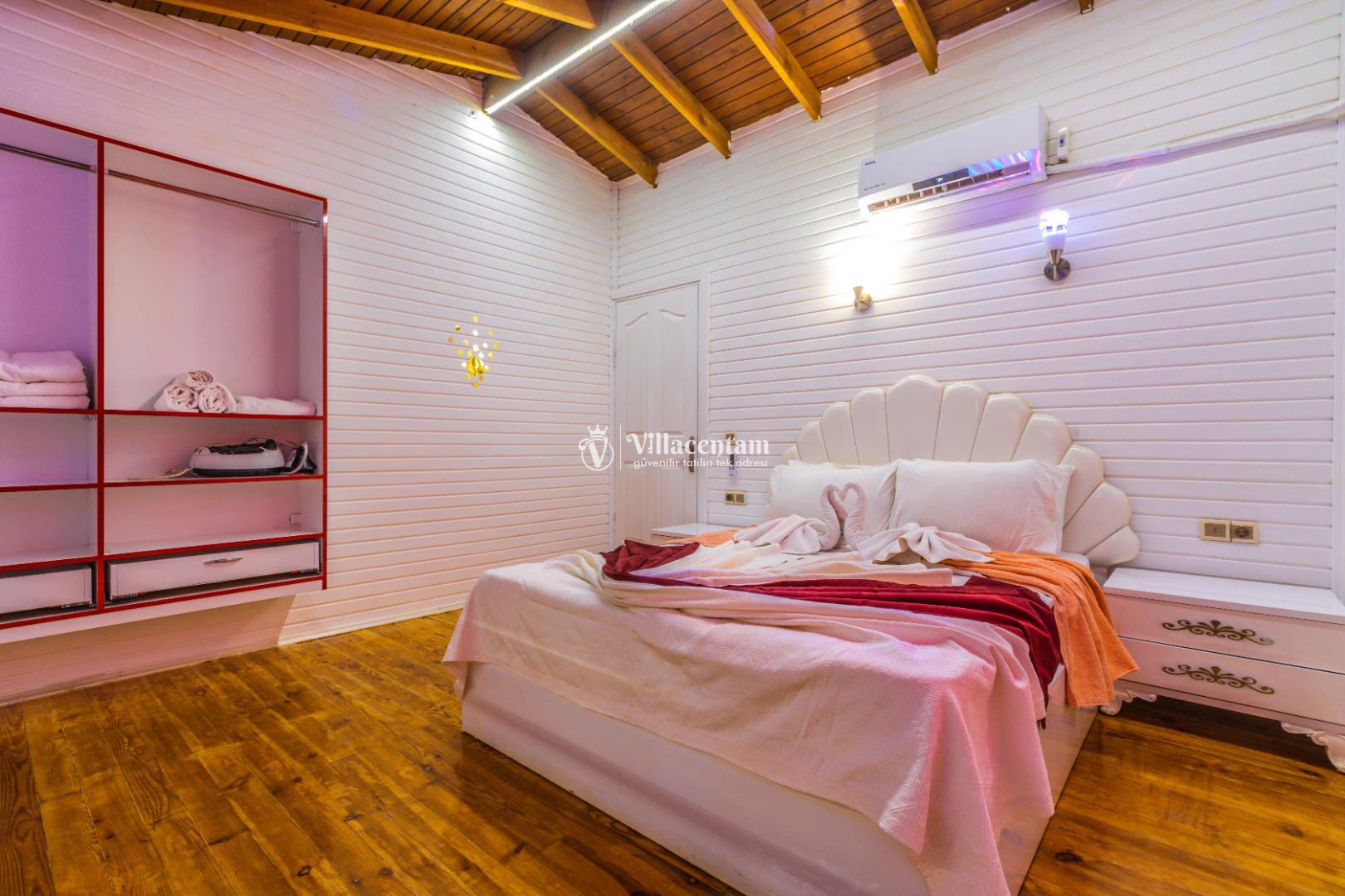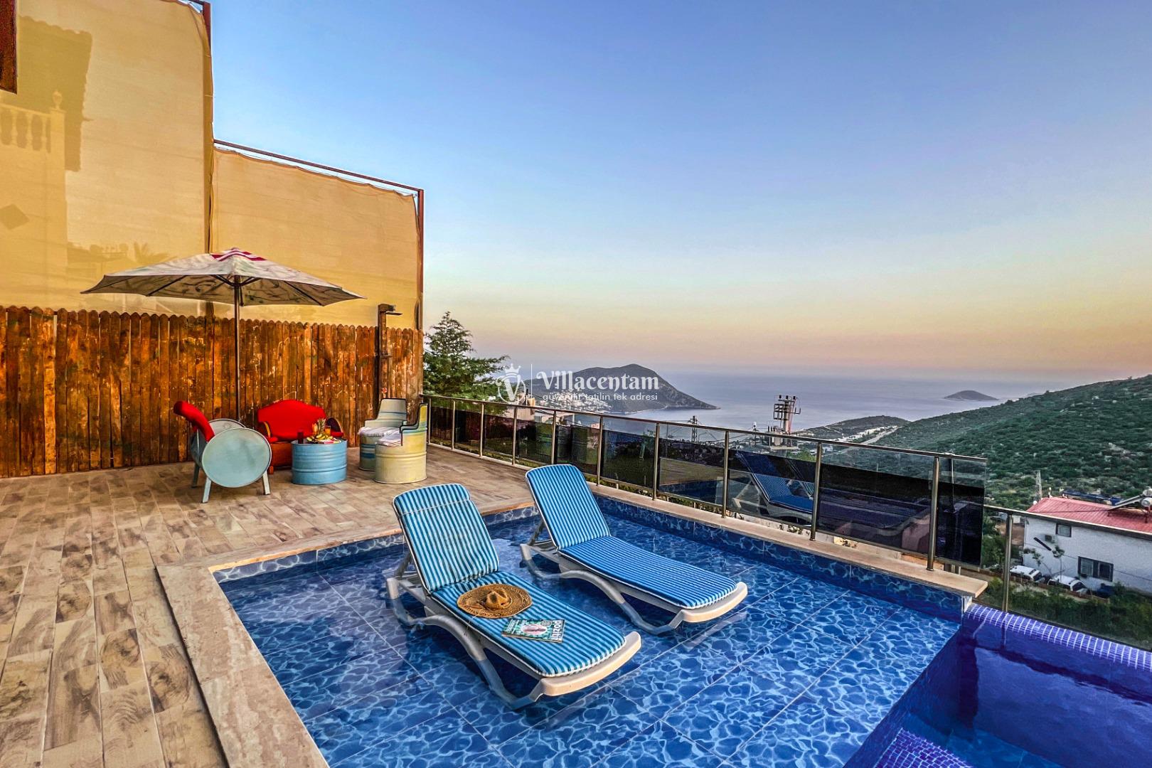 İki konforlu yatak odası ve şık banyolarıyla 4 kişiye kadar ideal konaklama sunan villada; sabahları denize karşı uyanabilir, gün boyu havuz keyfi yapabilir, akşamları ise gün batımının tadını çıkarabilirsiniz. Özel alan sunan yapısı sayesinde balayı çiftleri ve çekirdek aileler için mükemmel bir tercih.