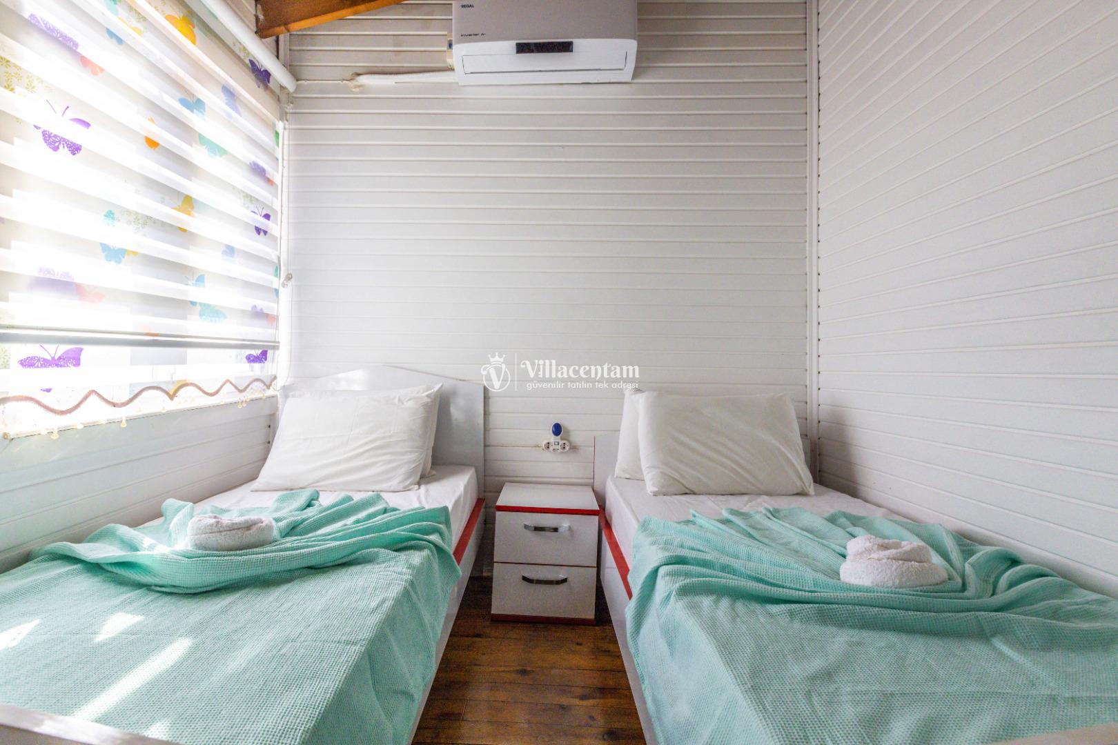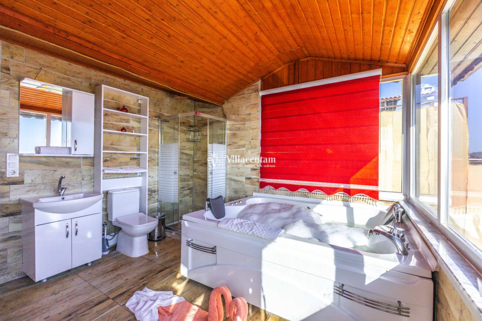 *Villalarda sıcak su için güneş enerjili su ısıtma sistemleri kullanılmaktadır. Çok yoğun sıcak su kullanımında, yoğunluğa ve su tankının büyüklüğüne bağlı olarak su tankında sıcak su tükenebilmekte ve tekrar suyun ısınması için belirli bir süre geçmesi gerekmektedir. Bu not sadece bu villa ile ilgili değil, tüm villalarımız için geçerli bir durumdur.