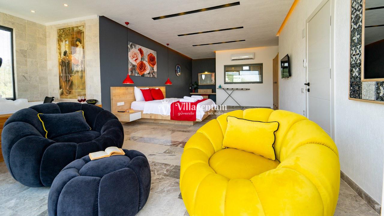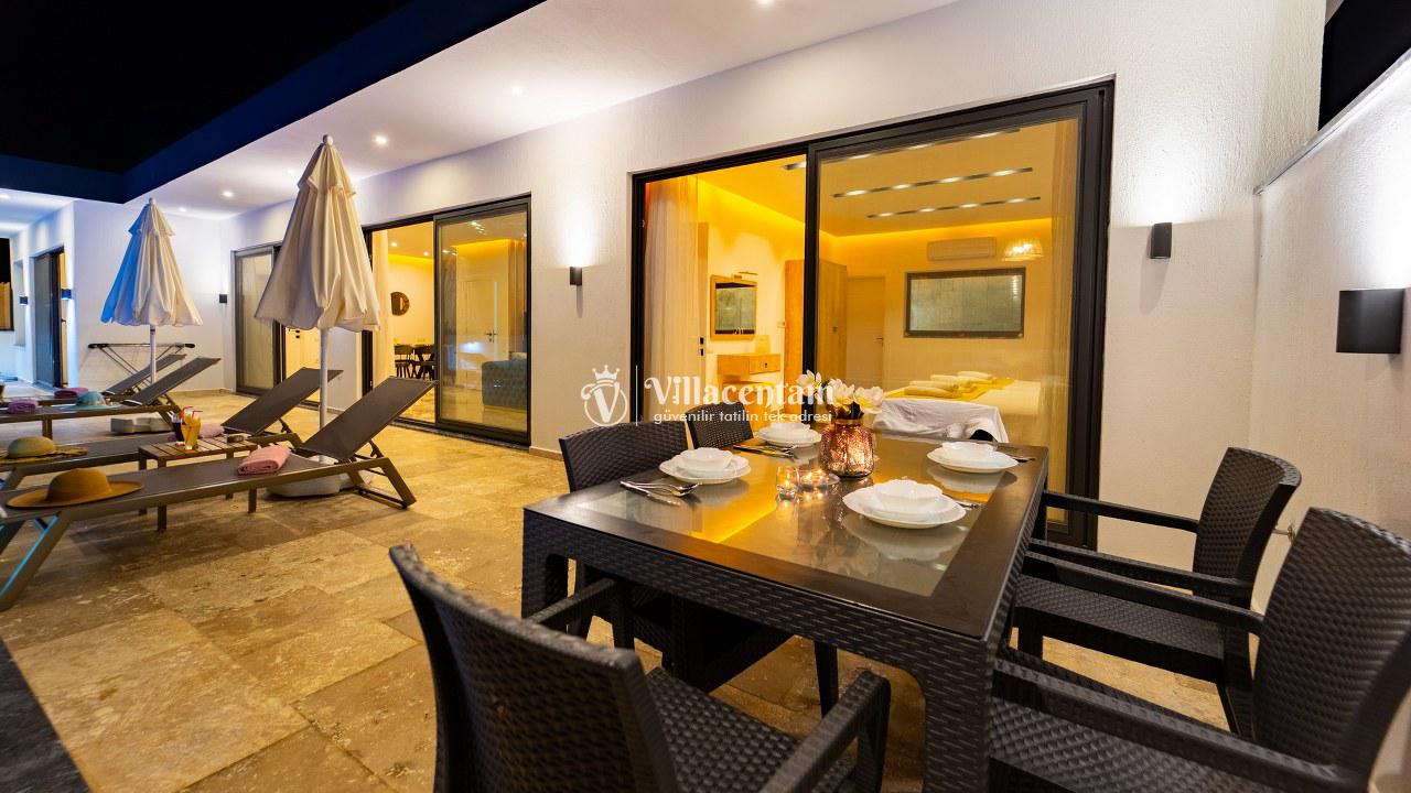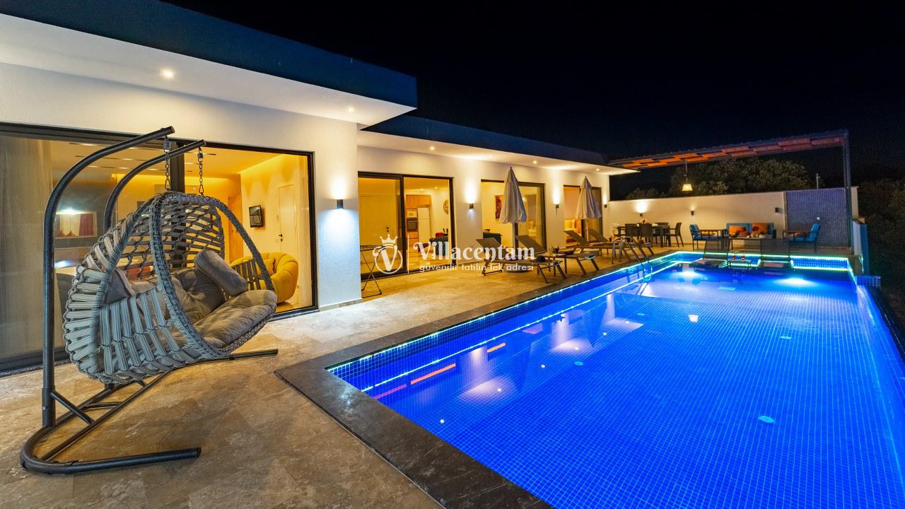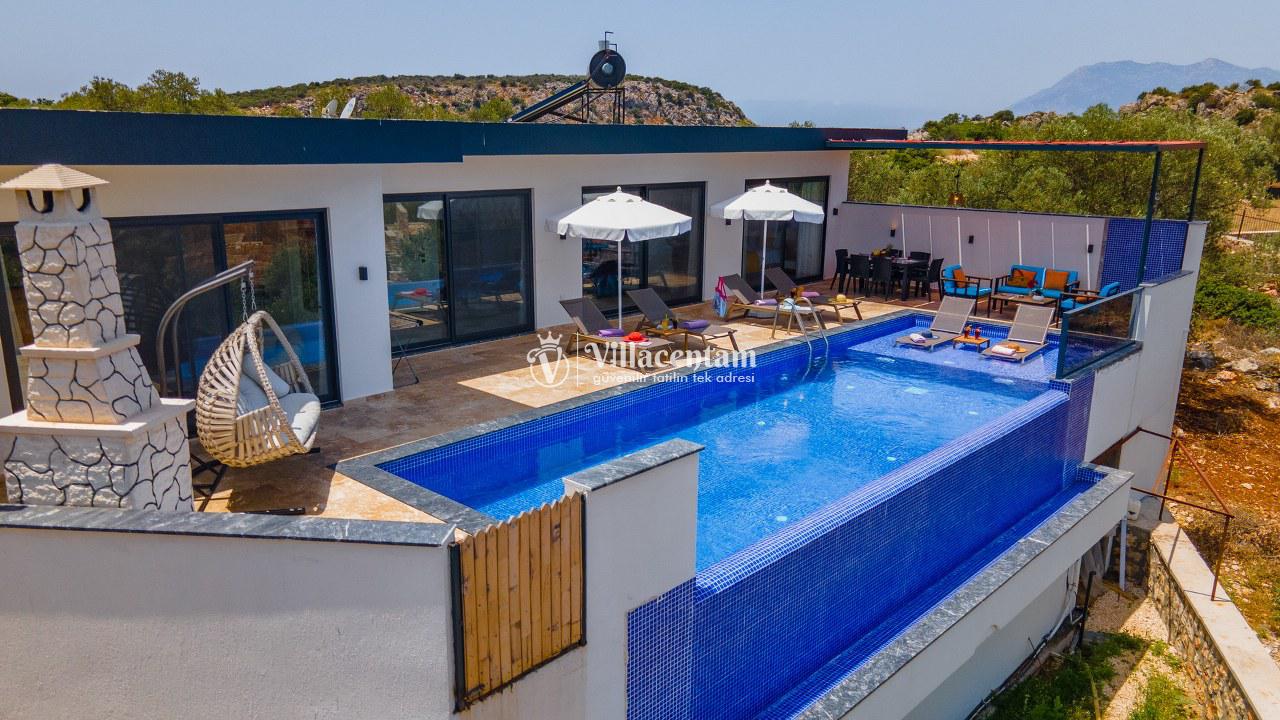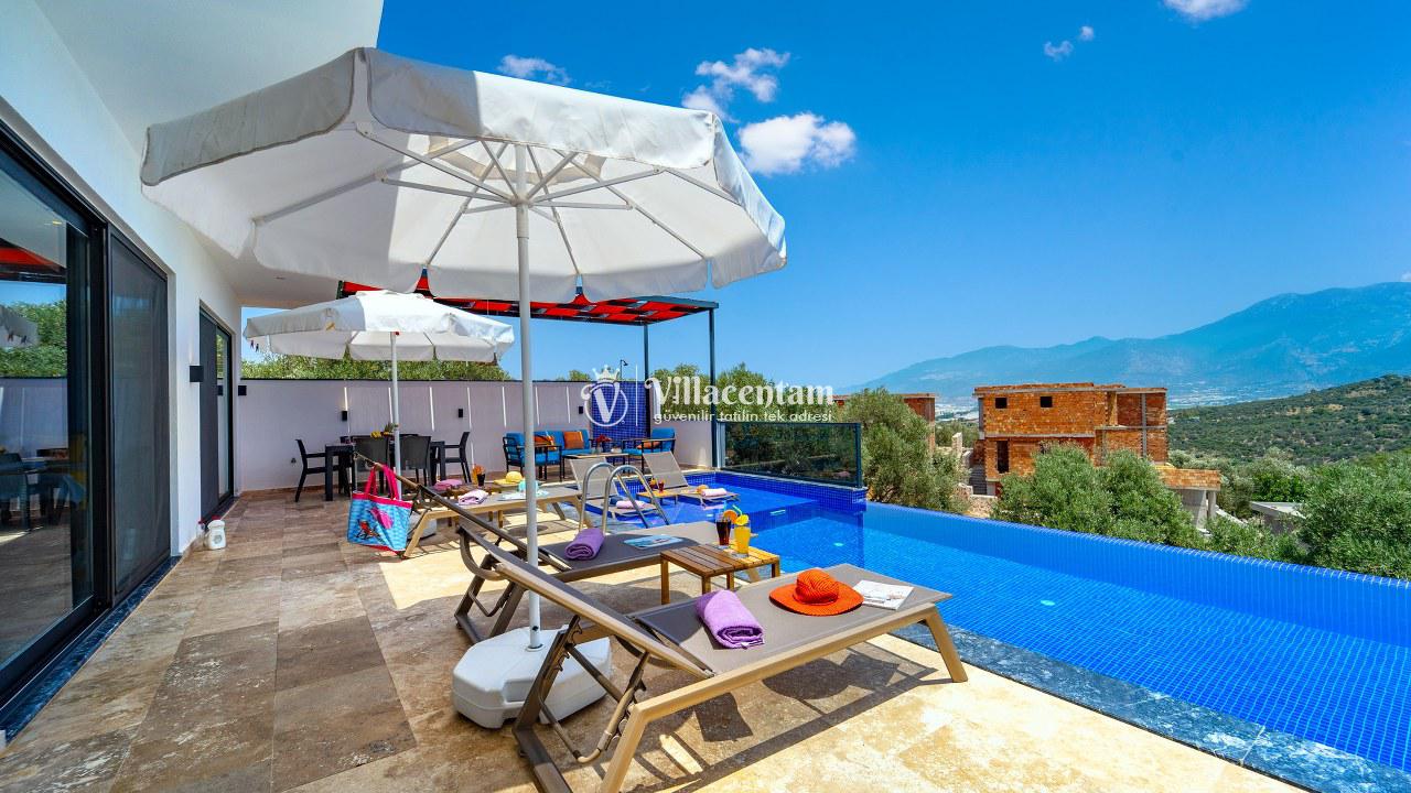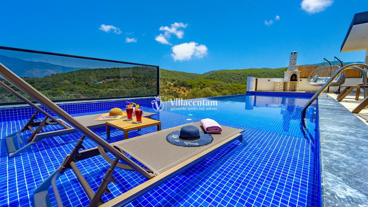 Villa Glorya, Kalkan Patara mevkiinde konumlanmakta olan yeşilliklerle kaplı doğa manzarasına hakim kiralık villalarımız arasında yer almaktadır. Modern ve konforlu bir şekilde dekore edilen kiralık villamızda 3 adet yatak odası bulunmakta olup, 7 kişiye konaklama imkanı sağlamaktadır. Yatak odalarının bir tanesinin içerisinde tüm yılın vermiş olduğu yorgunluğu giderebileceğiniz jakuzi yer almaktadır. Özellikle çekirdek ailelerimize ve geniş ailelere hitap eden yazlık villamızın havuz ve havuz terası korunaklı hale getirilmiştir. Aynı zamanda villamızın özel yüzme havuzuna entegre sığ havuz yer almaktadır. Kiralık villamız dışarıdan gözükmemektedir. Muhafazakar ailelerimiz de gönül rahatlığı ile tercih edebilirler. Sessizlik ve sakinlik içerisinde huzur dolu bir tatil için Villa Glorya 'yı tercih edebilirsiniz.