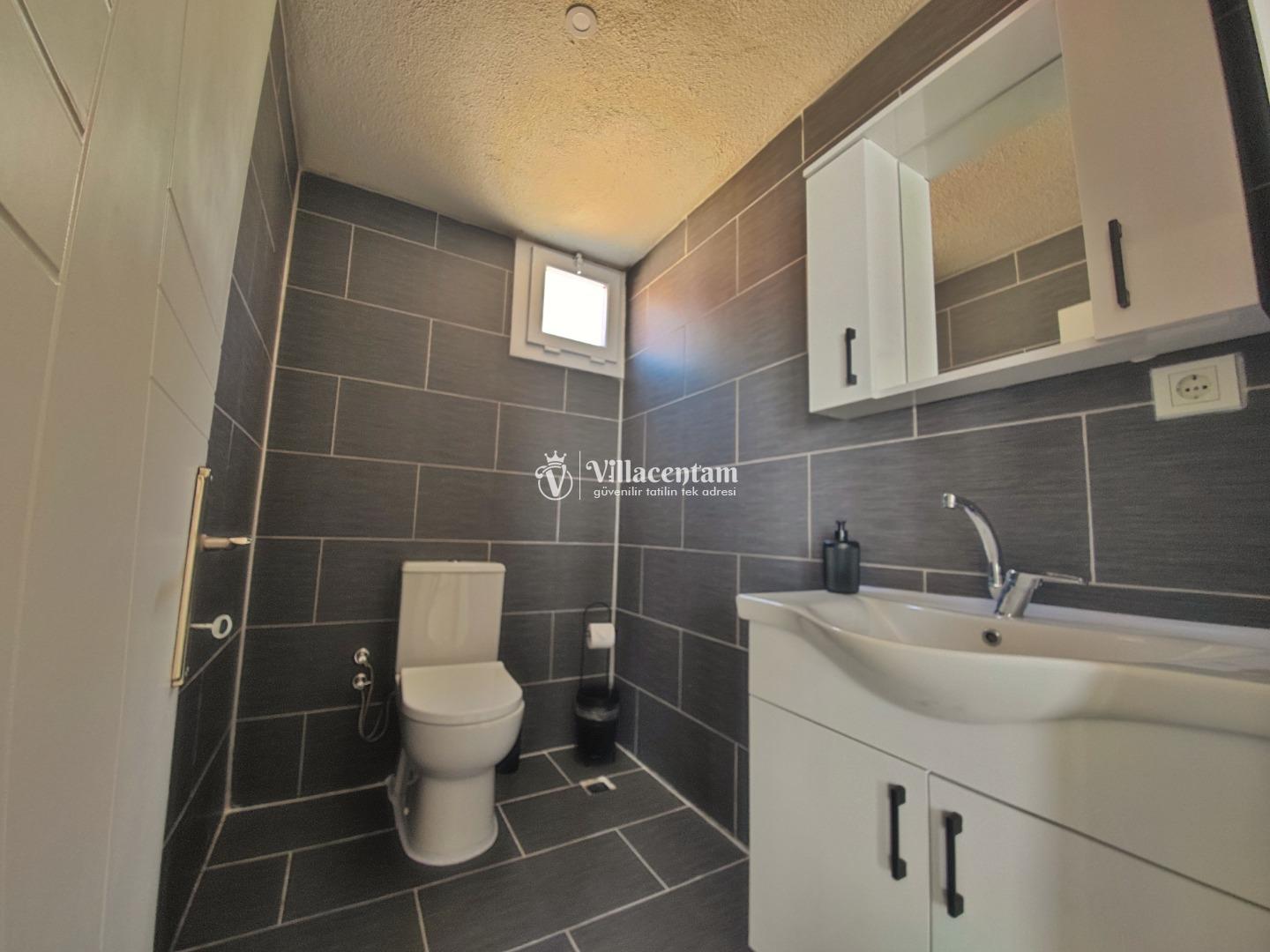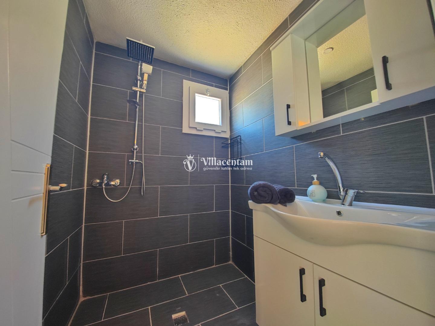 *Villalarda sıcak su için güneş enerjili su ısıtma sistemleri kullanılmaktadır. Çok yoğun sıcak su kullanımında, yoğunluğa ve su tankının büyüklüğüne bağlı olarak su tankında sıcak su tükenebilmekte ve tekrar suyun ısınması için belirli bir süre geçmesi gerekmektedir. Bu not sadece bu villa ile ilgili değil, tüm villalarımız için geçerli bir durumdur