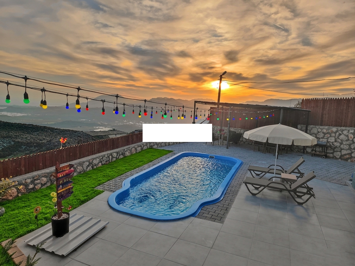 Doğa manzaralı havuz terası, özel bahçesi ve korunaklı havuzu sayesinde misafirlerine daha rahat ve mahrem bir tatil imkânı sağlayan villa; güneşlenme alanı, barbekü, yemek masası ve dış oturma alanlarıyla tatil boyunca keyifli vakit geçirebileceğiniz bir ortam sunar. Yatak odasında yer alan jakuzi ise konaklamaya ekstra konfor ve romantik bir dokunuş katmaktadır.