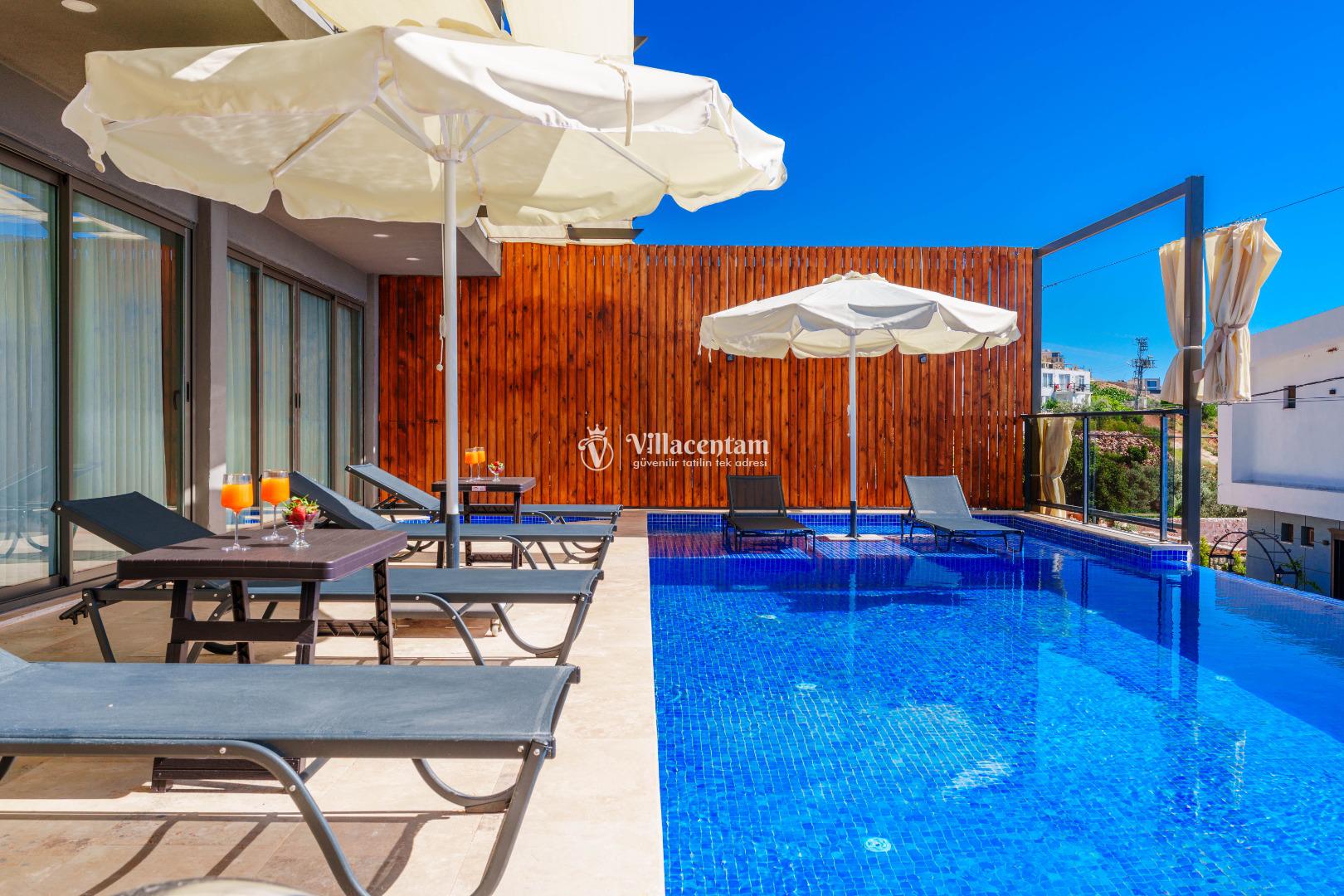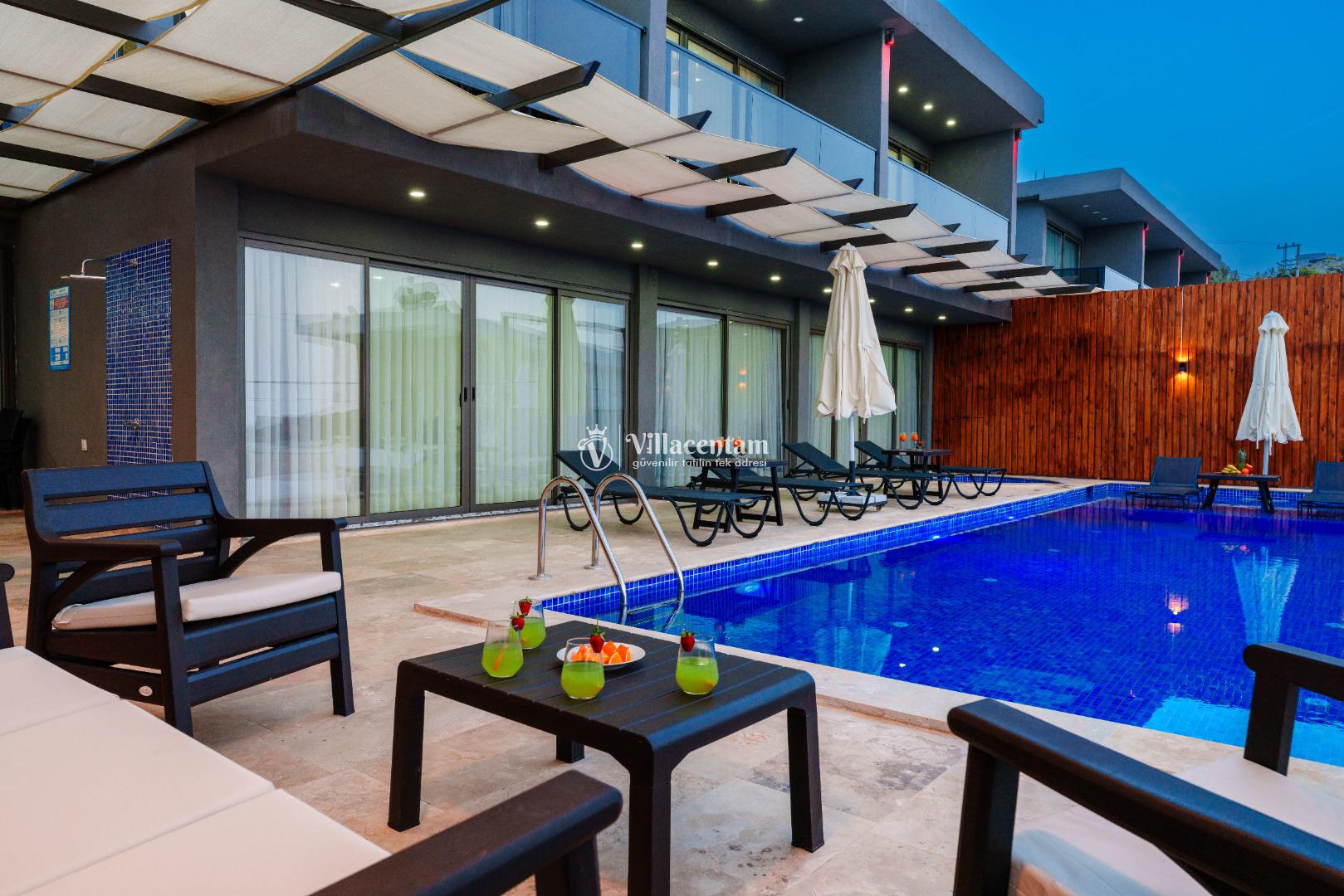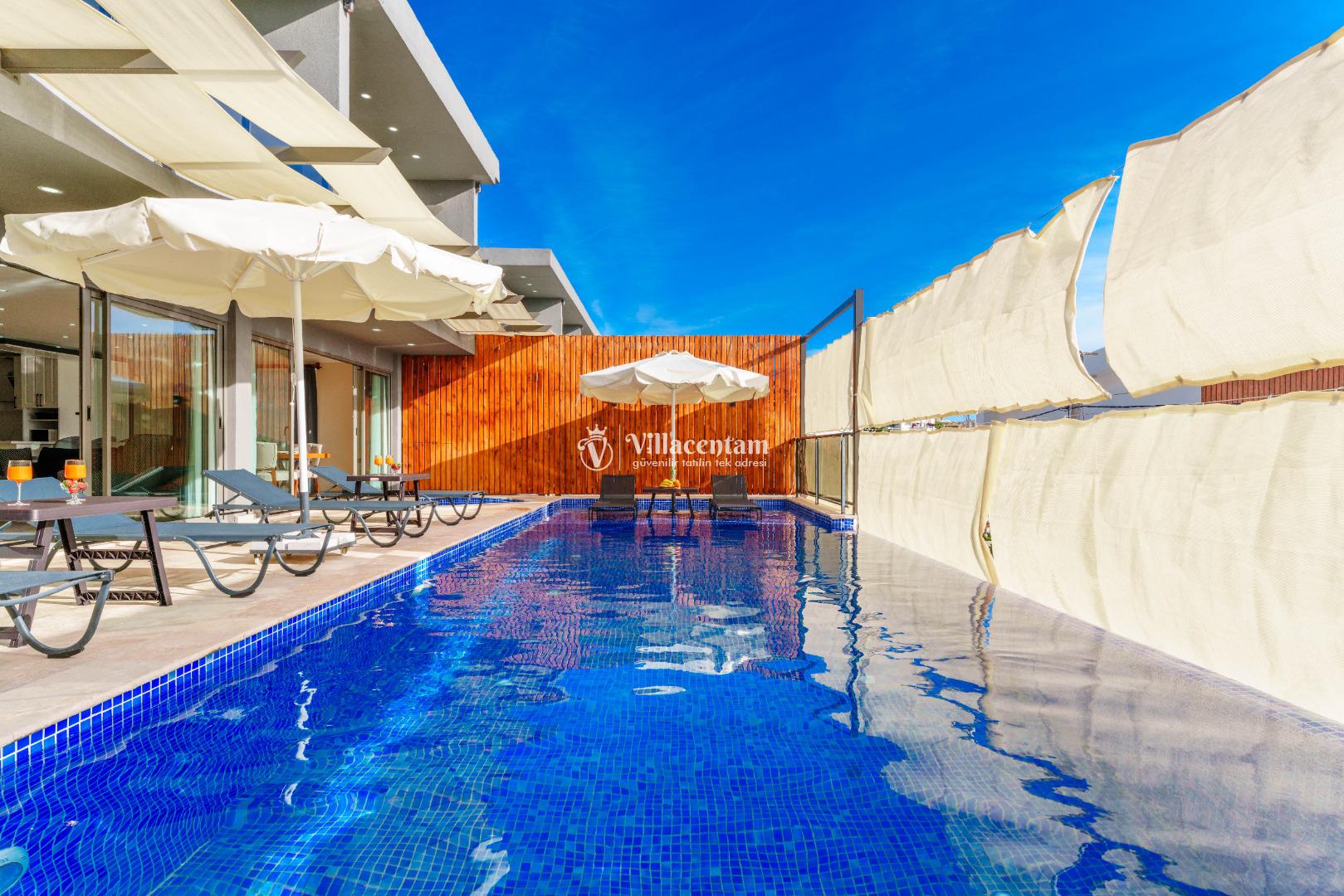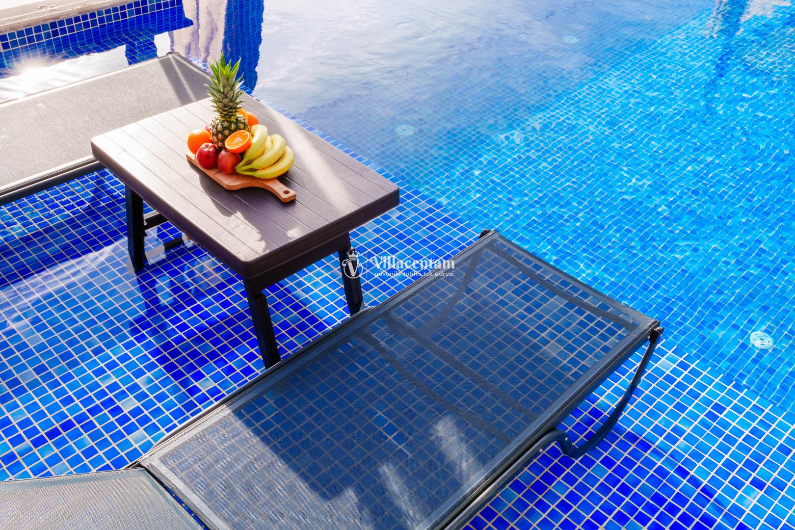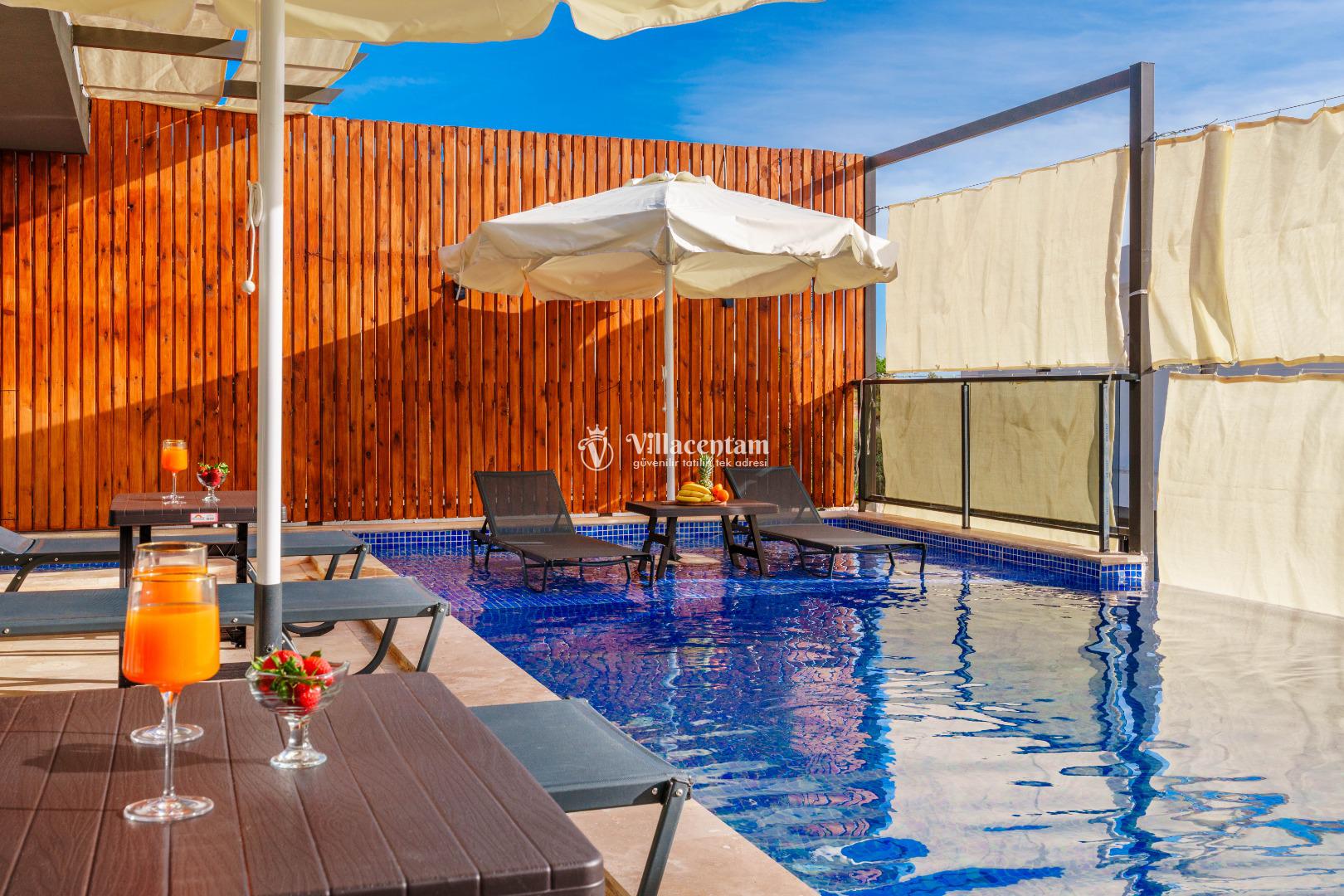 NOT 2 : Villamızın havuz terası oldukça korunaklıdır, fakat diğer villalara kıyasla görünürlük ve sakınma payı yüksek seviyededir. Tam korunaklı seçenek isteyen misafirlerimiz için uygun değildir.