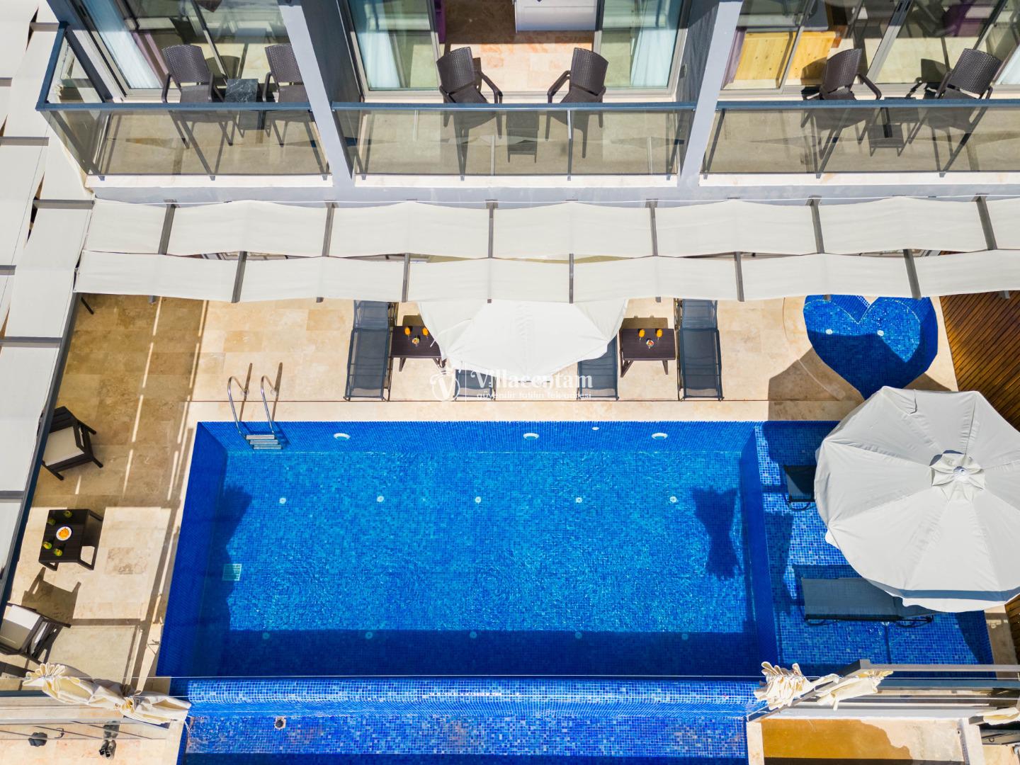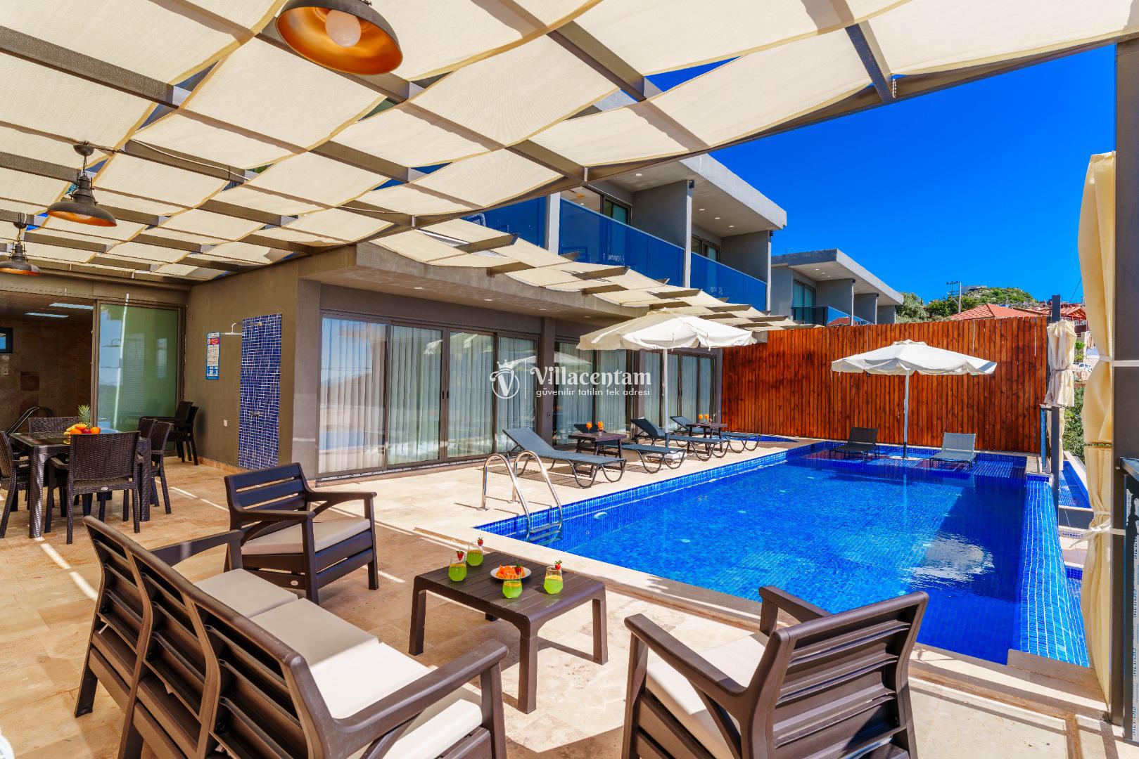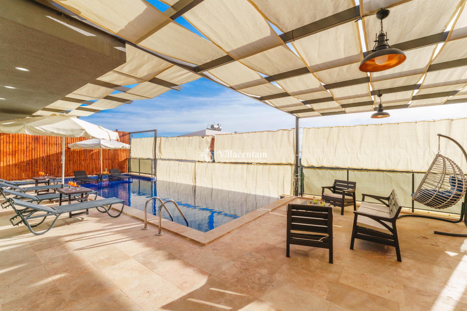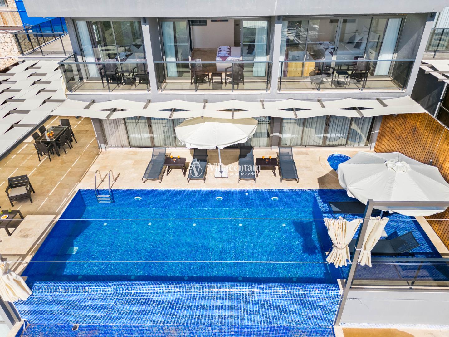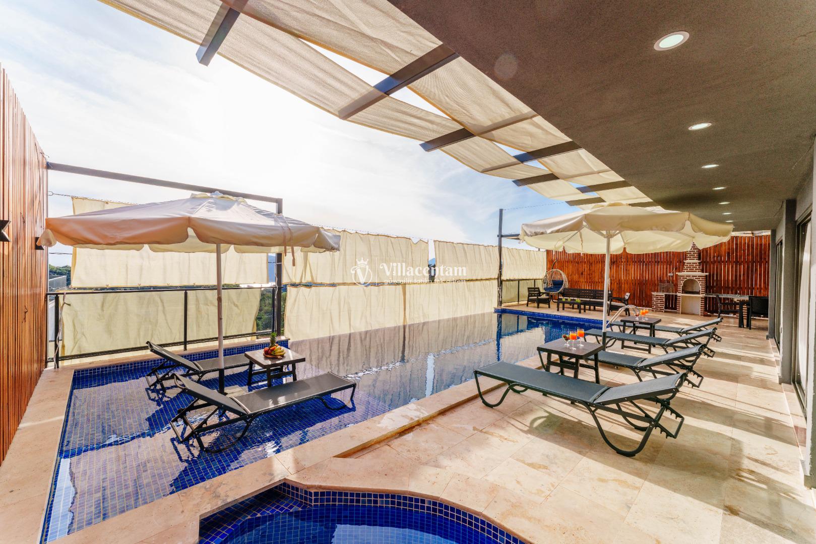 NOT 2 : Villamızın havuz terası oldukça korunaklıdır, fakat diğer villalara kıyasla görünürlük ve sakınma payı yüksek seviyededir. Tam korunaklı seçenek isteyen misafirlerimiz için uygun değildir.