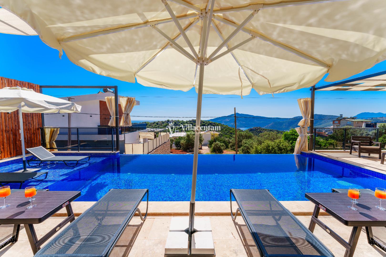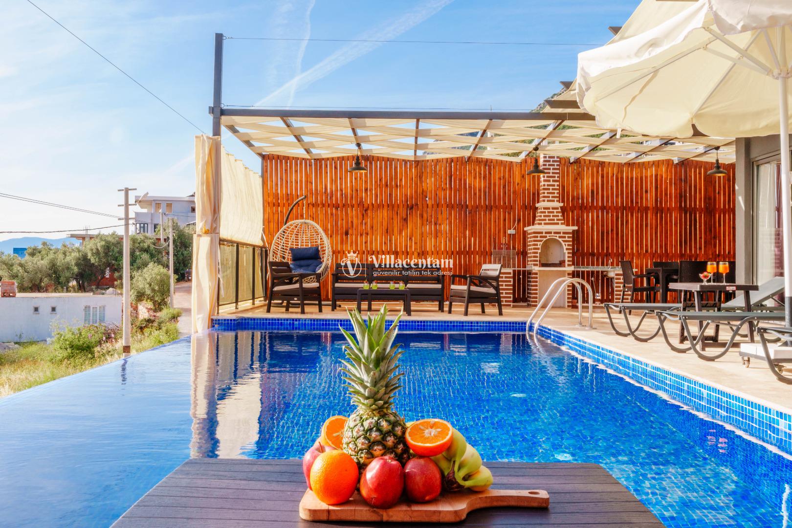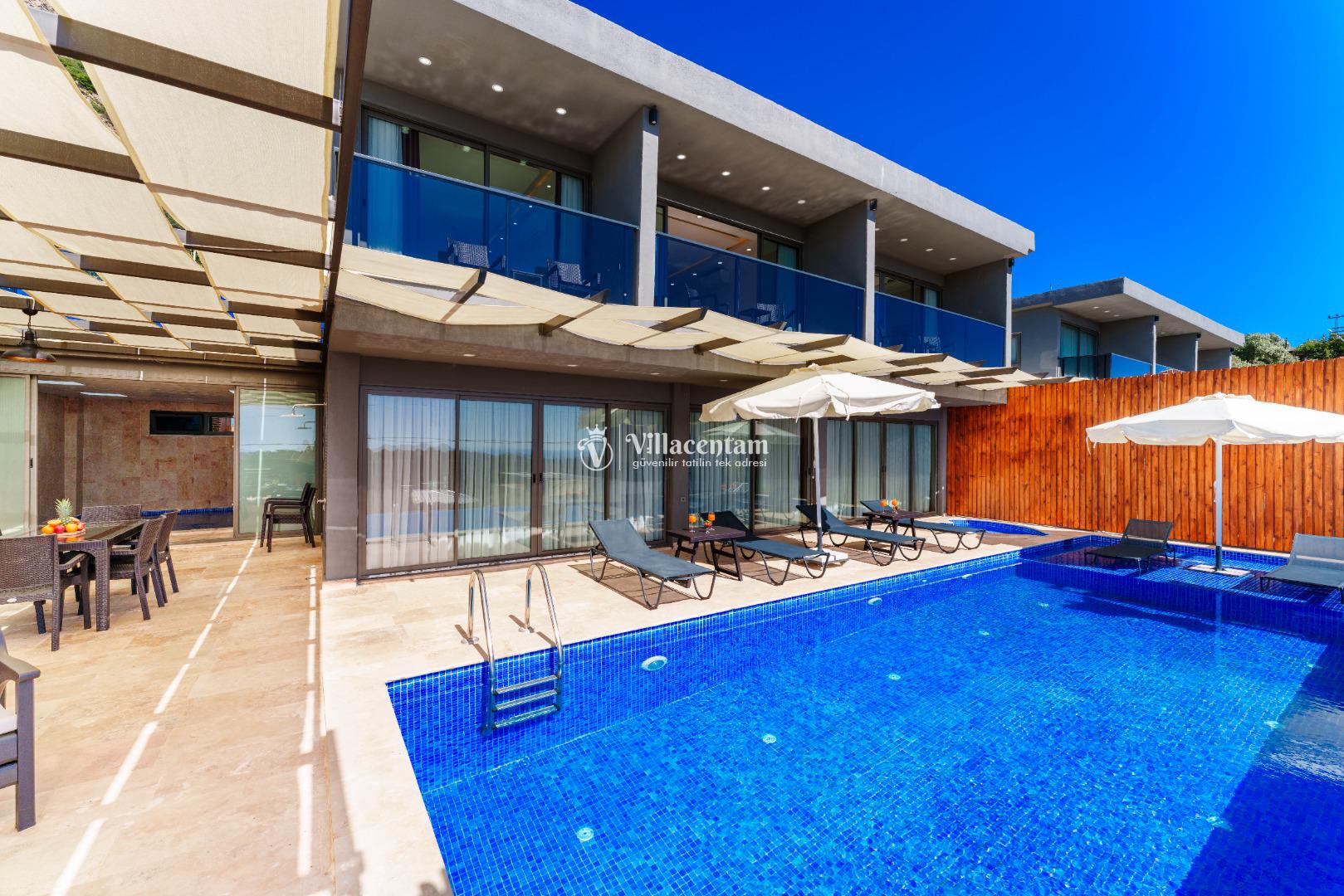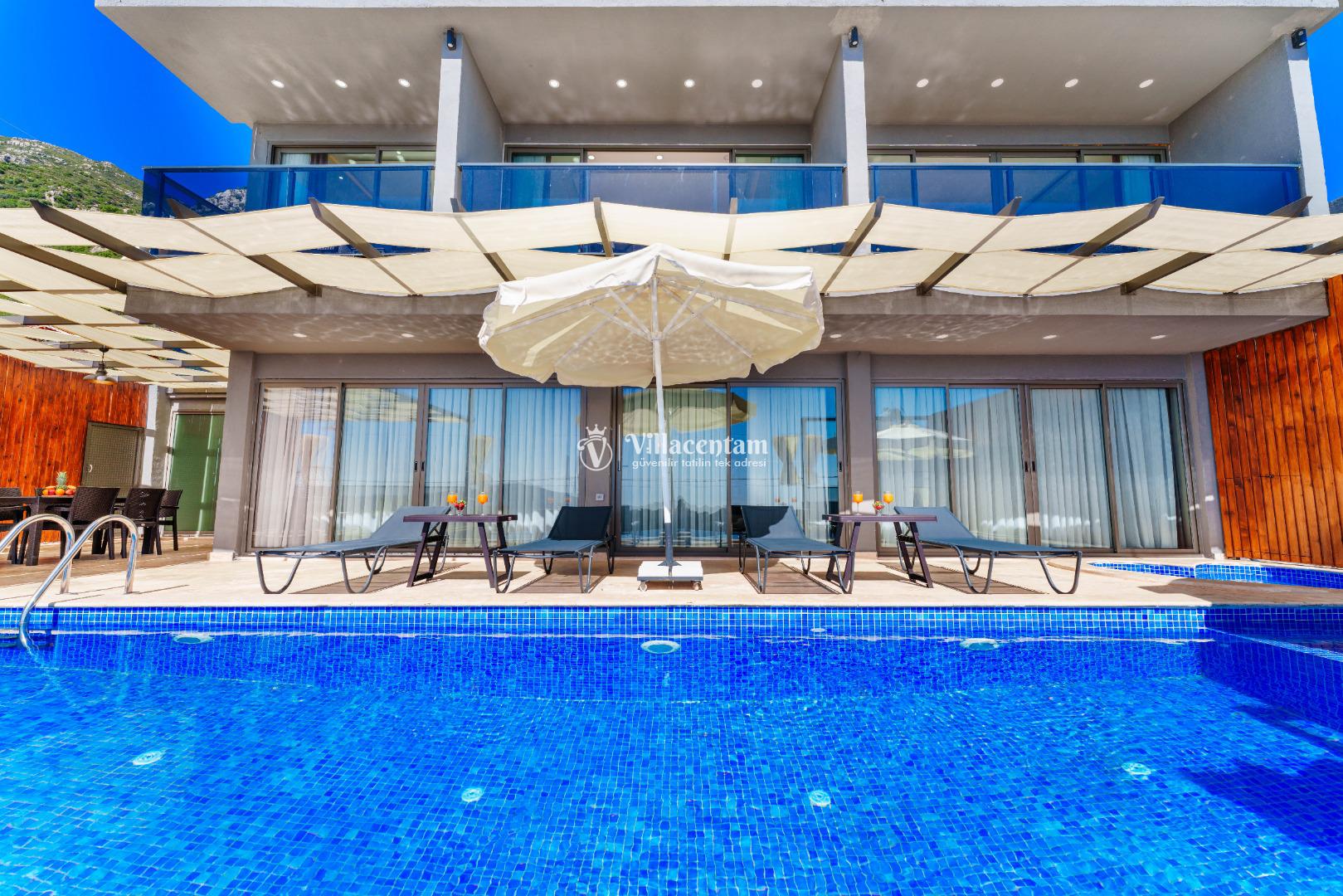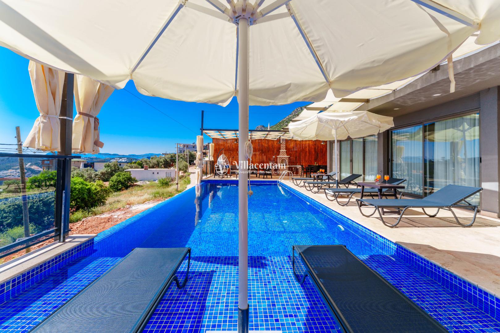 NOT 2 : Villamızın havuz terası oldukça korunaklıdır, fakat diğer villalara kıyasla görünürlük ve sakınma payı yüksek seviyededir. Tam korunaklı seçenek isteyen misafirlerimiz için uygun değildir.