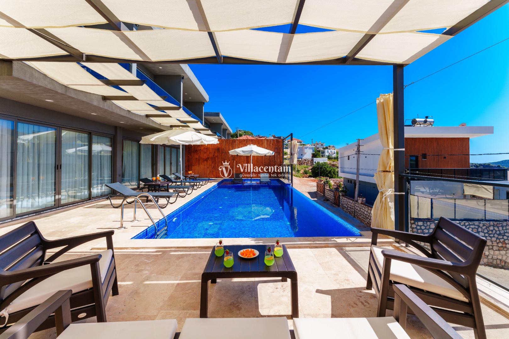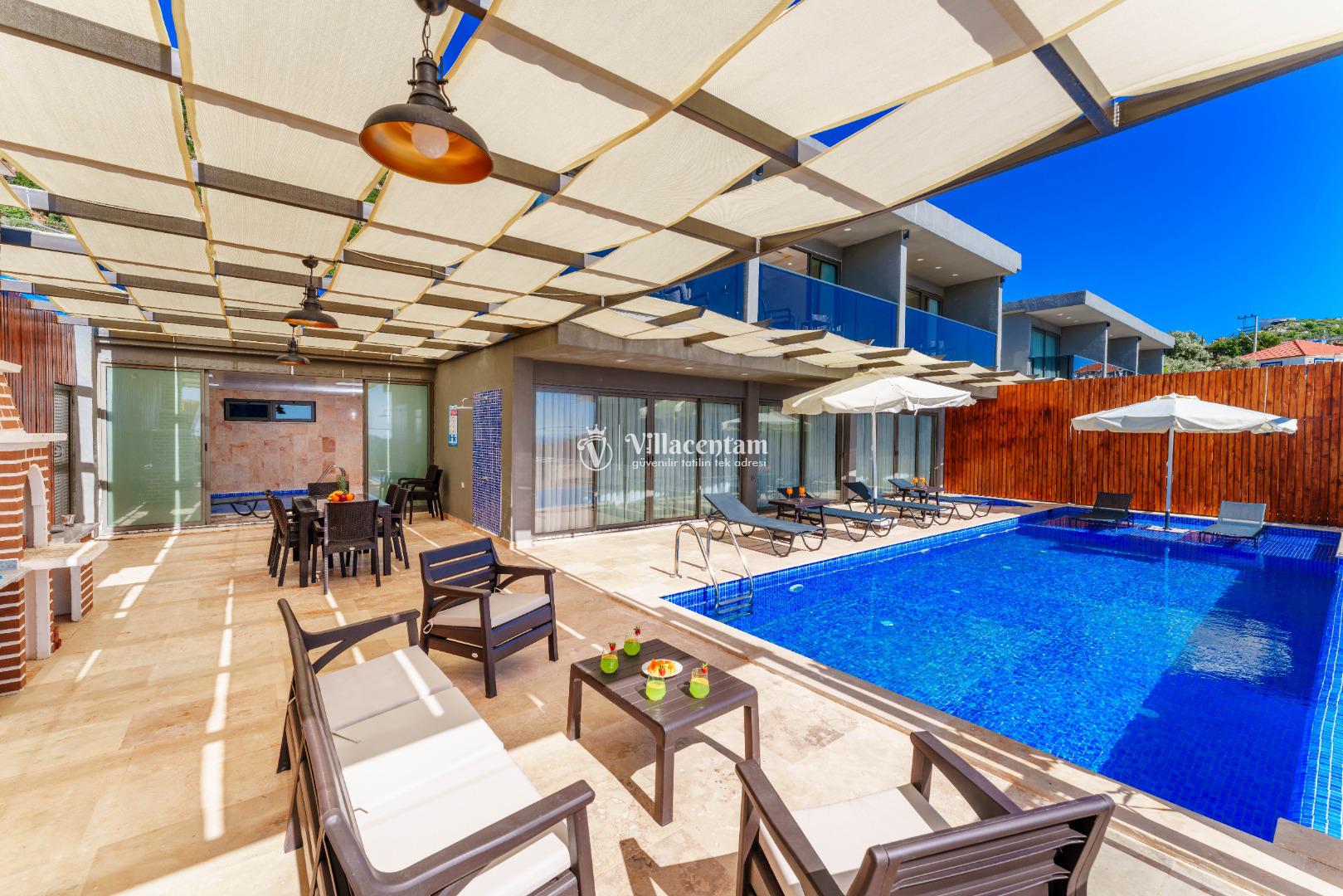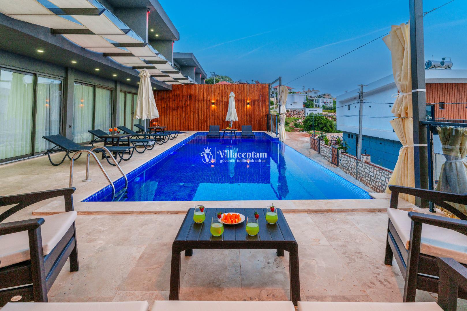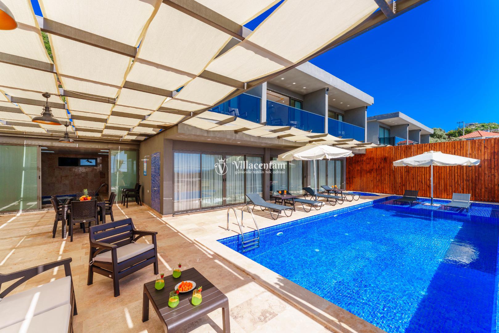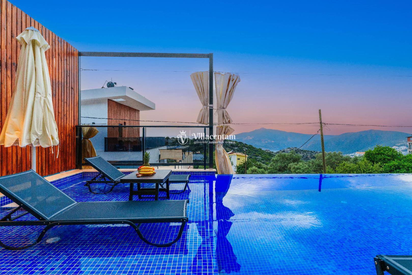 NOT 2 : Villamızın havuz terası oldukça korunaklıdır, fakat diğer villalara kıyasla görünürlük ve sakınma payı yüksek seviyededir. Tam korunaklı seçenek isteyen misafirlerimiz için uygun değildir.
