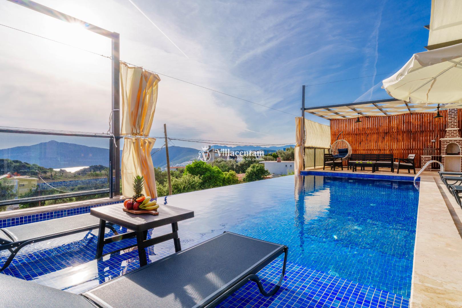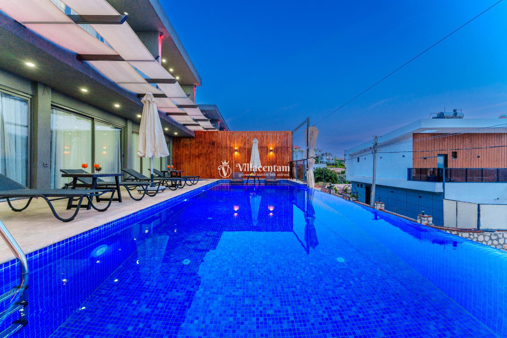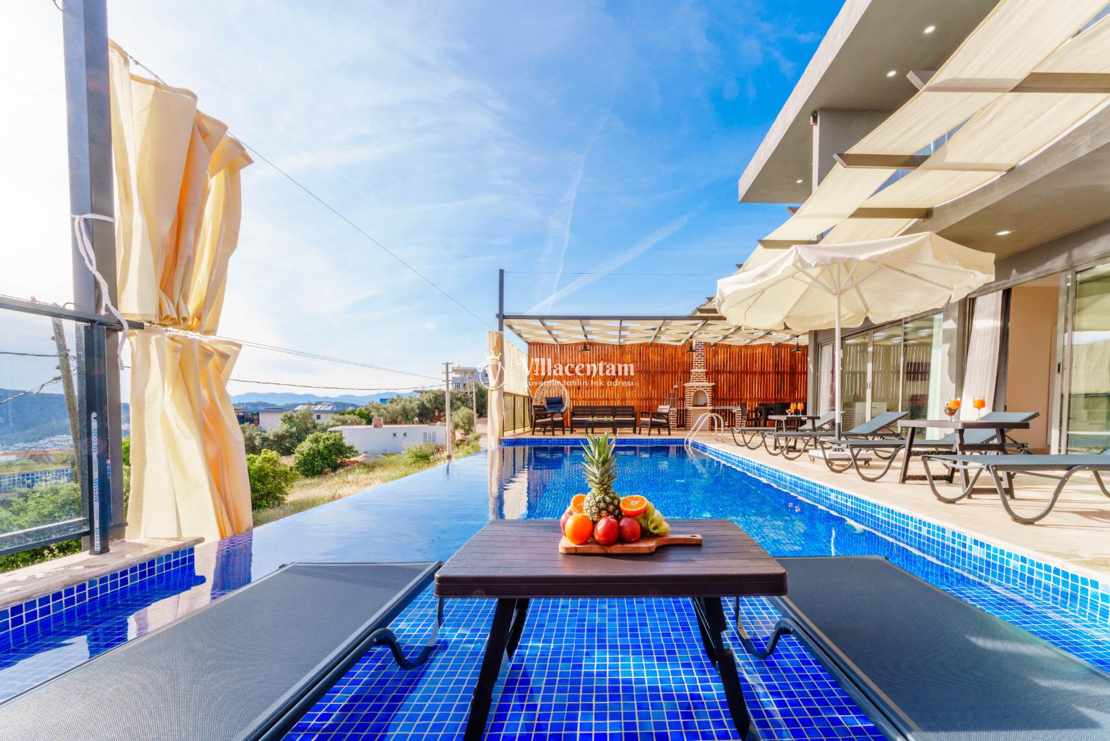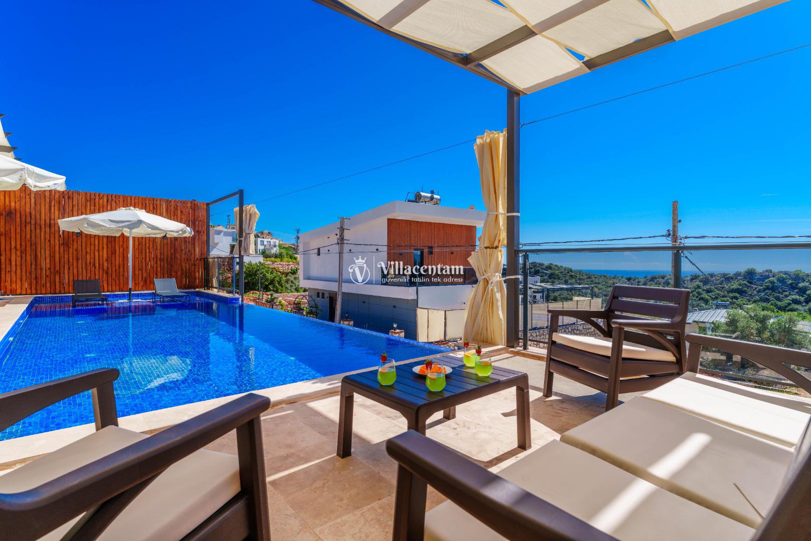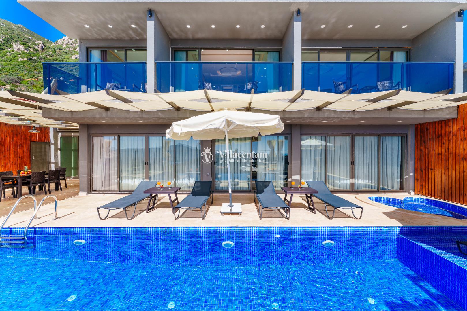 NOT 2 : Villamızın havuz terası oldukça korunaklıdır, fakat diğer villalara kıyasla görünürlük ve sakınma payı yüksek seviyededir. Tam korunaklı seçenek isteyen misafirlerimiz için uygun değildir.