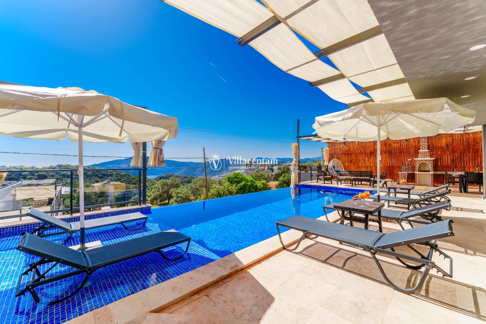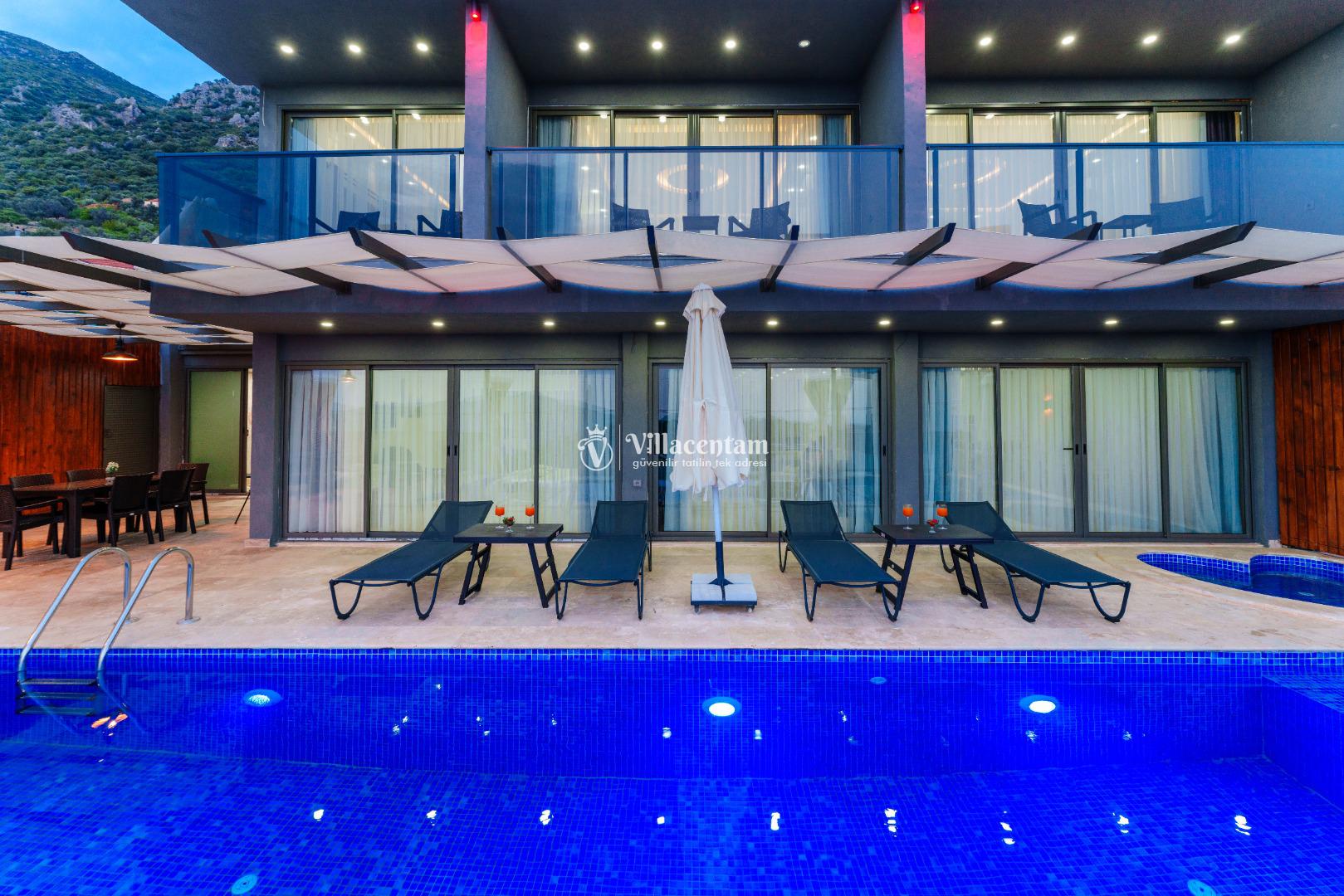Villa Grand Emora Duo, Kalkan Kördere mevkiinde konumlanmakta olan nefes kesen deniz manzarası ve yapısıyla mükemmel kiralık villalarımız arasında yer almaktadır. Kalabalık ailelere ve arkadaş gruplarına hitap eden yazlık villamızda 4 adet yatak odası bulunmakta olup, 8 kişi konaklayabilmektedir. Bir adet yatak odasının içerisinde yer alan jakuzi ile tüm yılın vermiş olduğu yorgunluğu giderebileceksiniz.Villamızda dış yüzme havuzuna entegre çocuk havuzu da yer almaktadır. Kiralık villamızın kapalı ısıtmalı havuzu ve kış ayları için yerden ısıtma sistemi mevcuttur. Geniş aileler ve kalabalık arkadaş grupları tercih edebilirler. Sevdiklerinizle birlikte kahvaltı ve barbekü keyifleri yapabileceğiniz donanımlı bir bahçe alanı bulunmaktadır. Unutulmaz keyif dolu anlar için Villa Grand Emora Duo 'yu tercih edebilirsiniz.