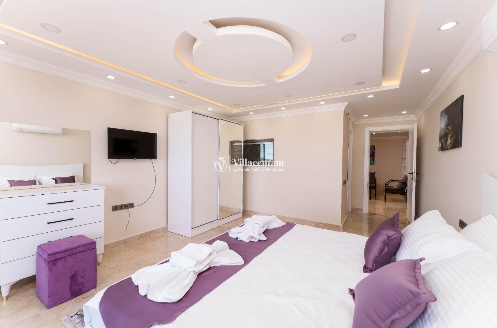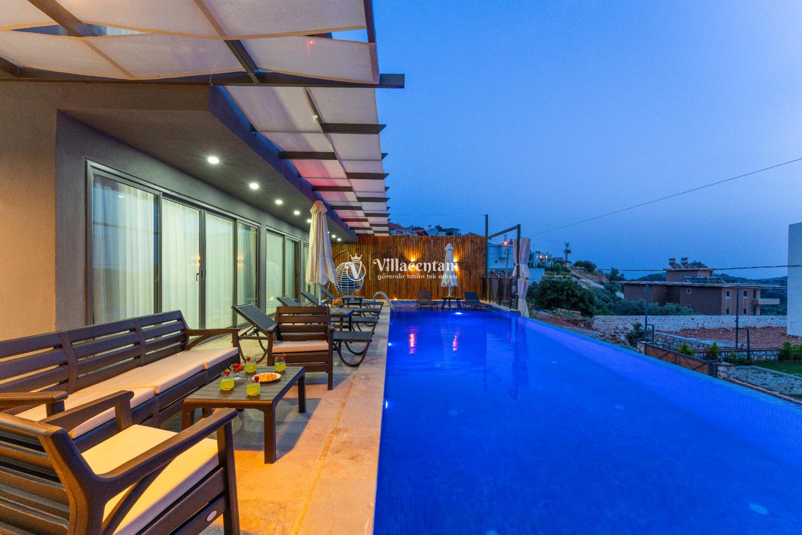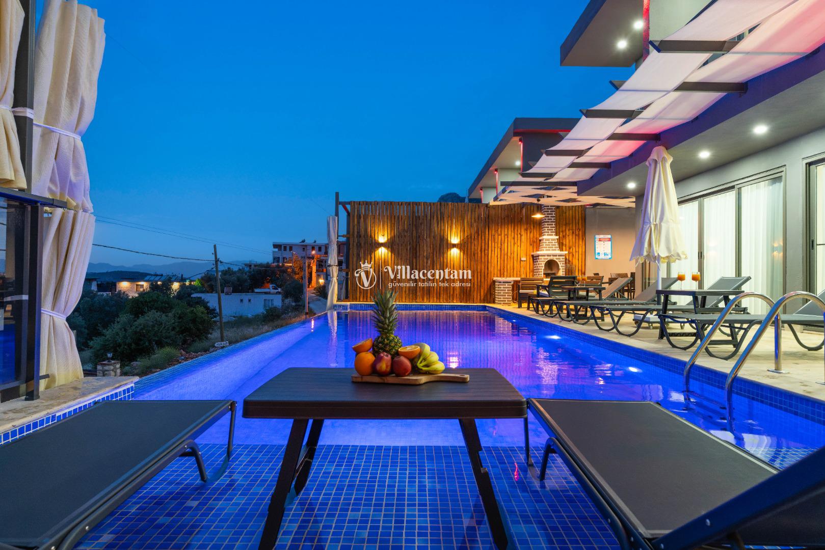 Villa Grand Emora UNO, Kalkan Kördere mevkiinde konumlanmakta olan nefes kesen deniz manzarası ve yapısıyla mükemmel kiralık villalarımız arasında yer almaktadır. Kalabalık ailelere ve arkadaş gruplarına hitap eden yazlık villamızda 5 adet yatak odası bulunmakta olup, 10 kişi konaklayabilmektedir. 2 adet jakuzi bulunan villamızda çocuk havuzuda yer almaktadır. Kiralık villamızın kapalı ısıtma havuzu ve kış ayları için yerden ısıtma sistemi mevcuttur. Geniş aileler ve kalabalık arkadaş grupları tercih edebilirler. Sevdiklerinizle birlikte kahvaltı ve barbekü keyifleri yapabileceğiniz donanımlı bir bahçe alanı bulunmaktadır. Unutulmaz keyif dolu anlar için Villa Grand Emora Uno 'yu tercih edebilirsiniz.