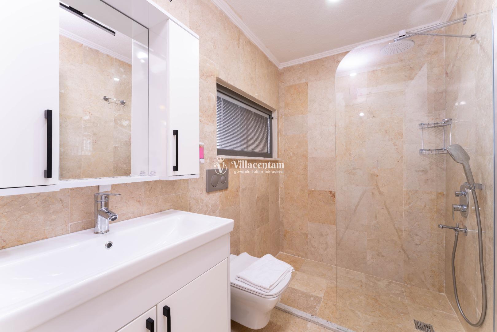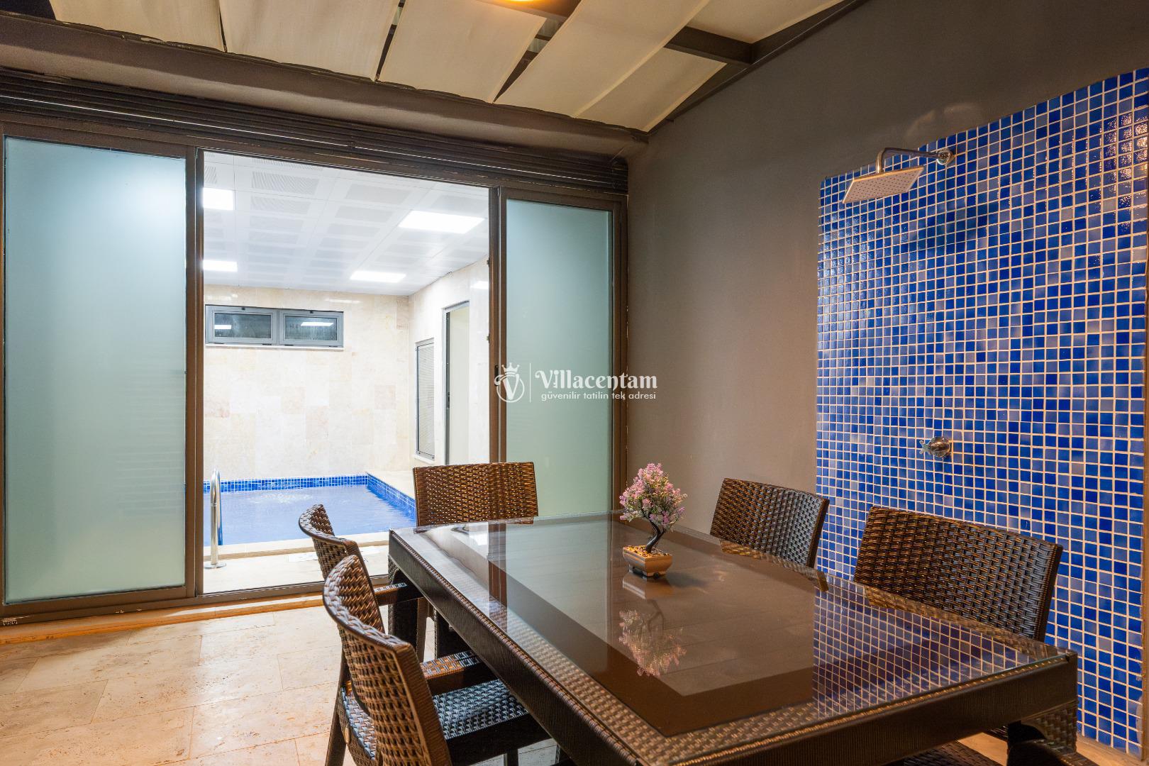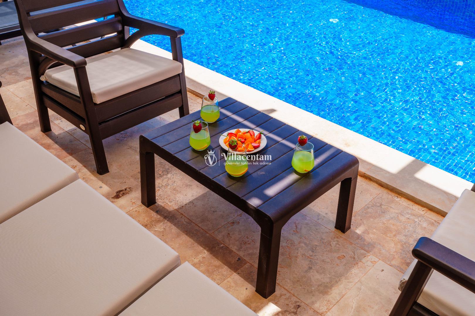 NOT 2 : Villamızın havuz terası oldukça korunaklıdır, fakat diğer villalara kıyasla görünürlük ve sakınma payı yüksek seviyededir. Tam korunaklı seçenek isteyen misafirlerimiz için uygun değildir.