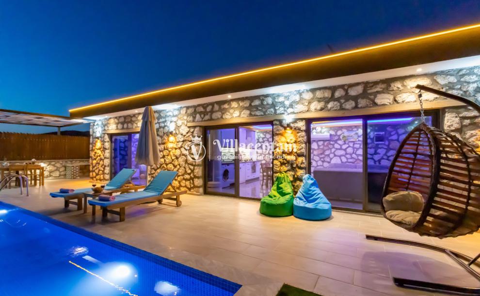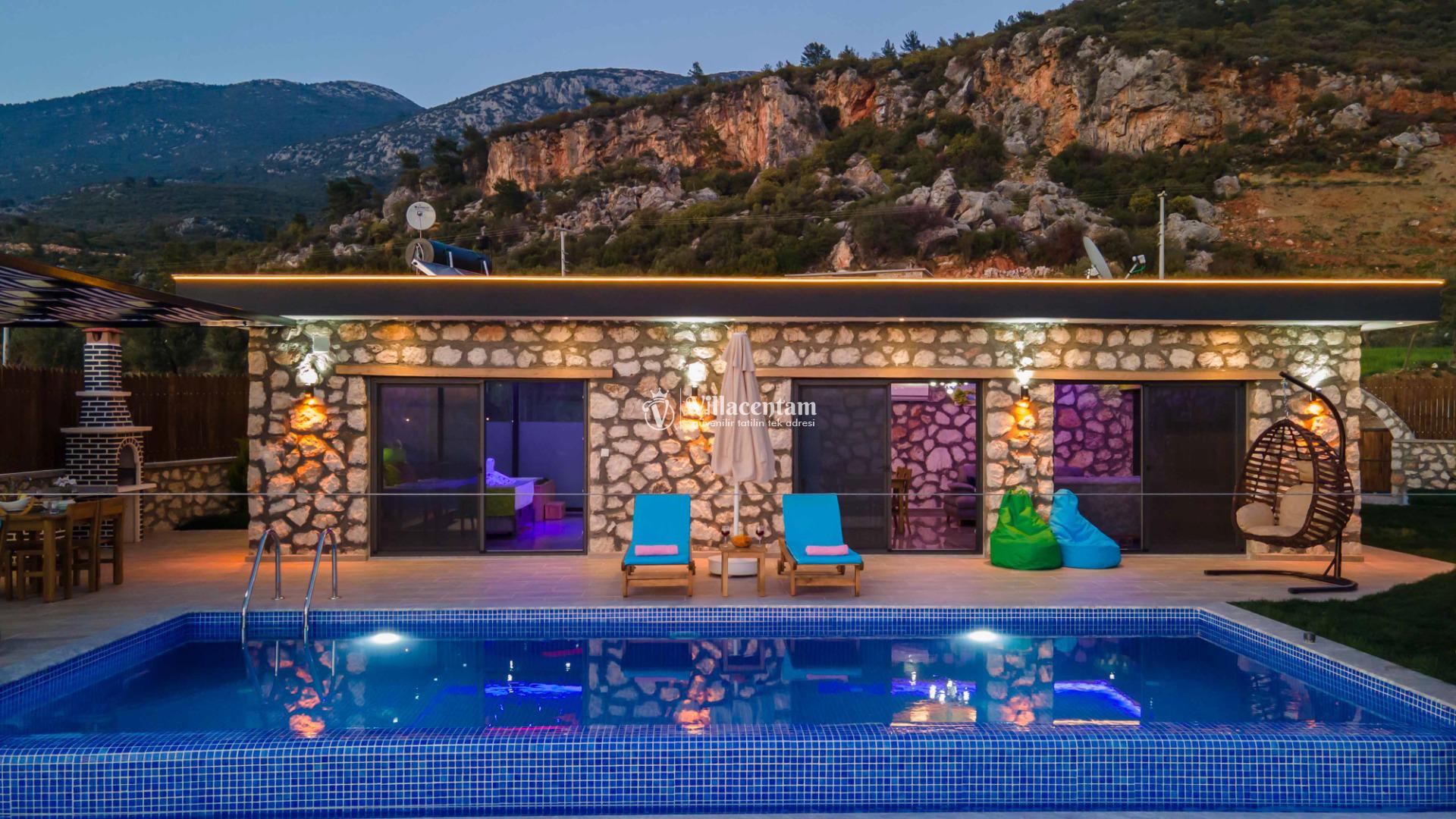 Villa Gündoğumu, Kalkan Çavdır mevkiinde konumlanmakta olan muhteşem doğa manzarasına hakim kiralık villalarımız arasında yer almaktadır. Şık ve konforlu bir şekilde dizayn edilen yazlık villamızda 1 adet yatak odası bulunmakta olup,2 kişiye konaklama imkanı sağlamaktadır. Villamızın havuz terasının korunaklı olması sayesinde size özel bir ortamda rahat bir tatil keyfi yaşayabilirsiniz. Villamızın yatak odasında tüm yılın vermiş olduğu yorgunluğu atabileceğiniz jakuzi konforu sağlanmaktadır.
