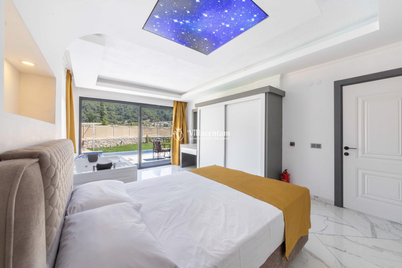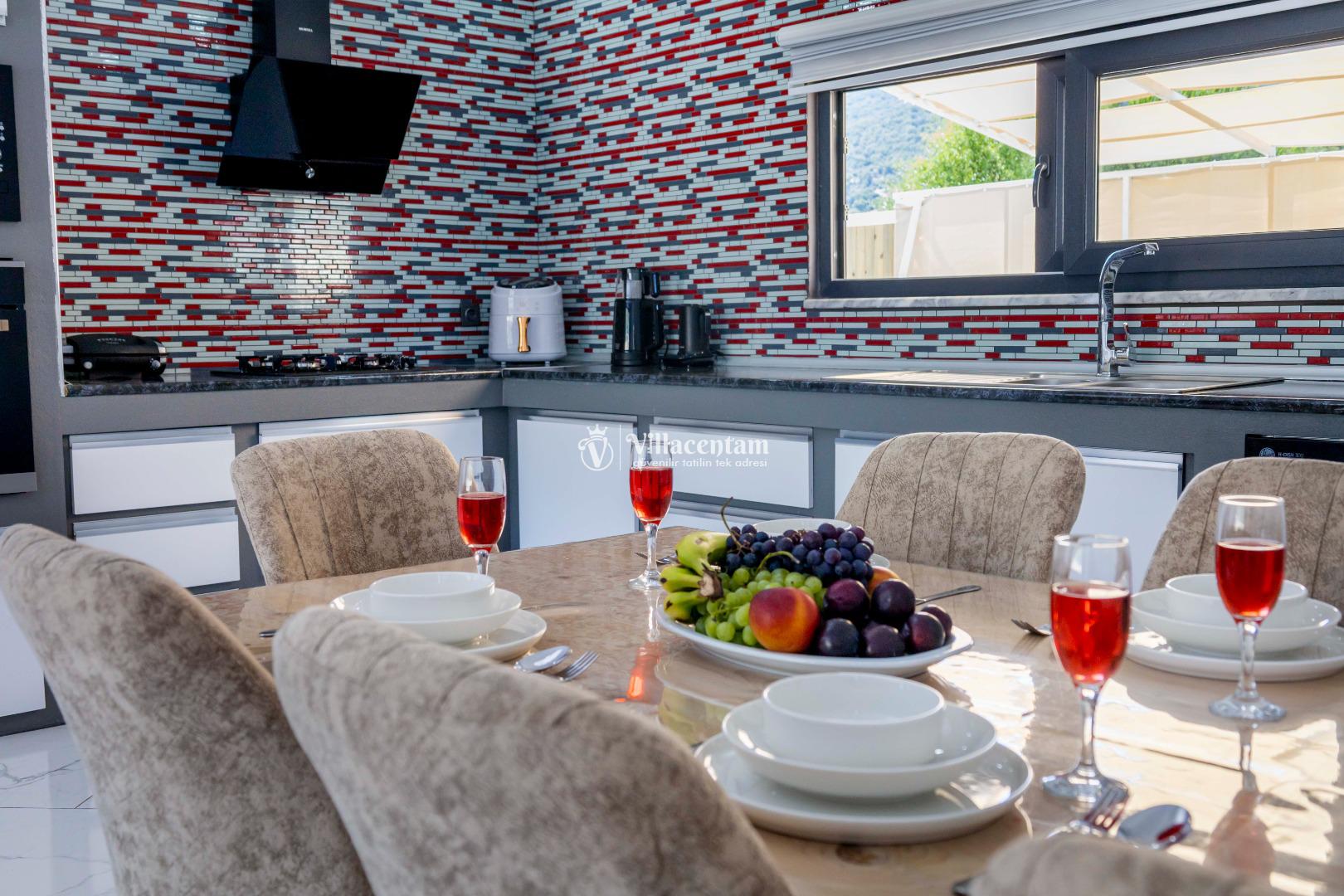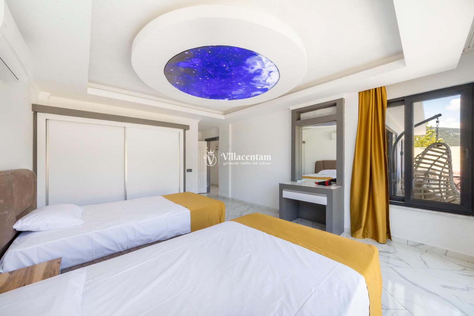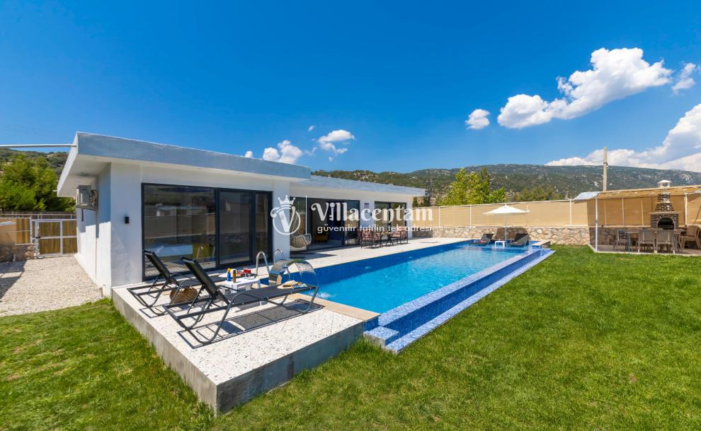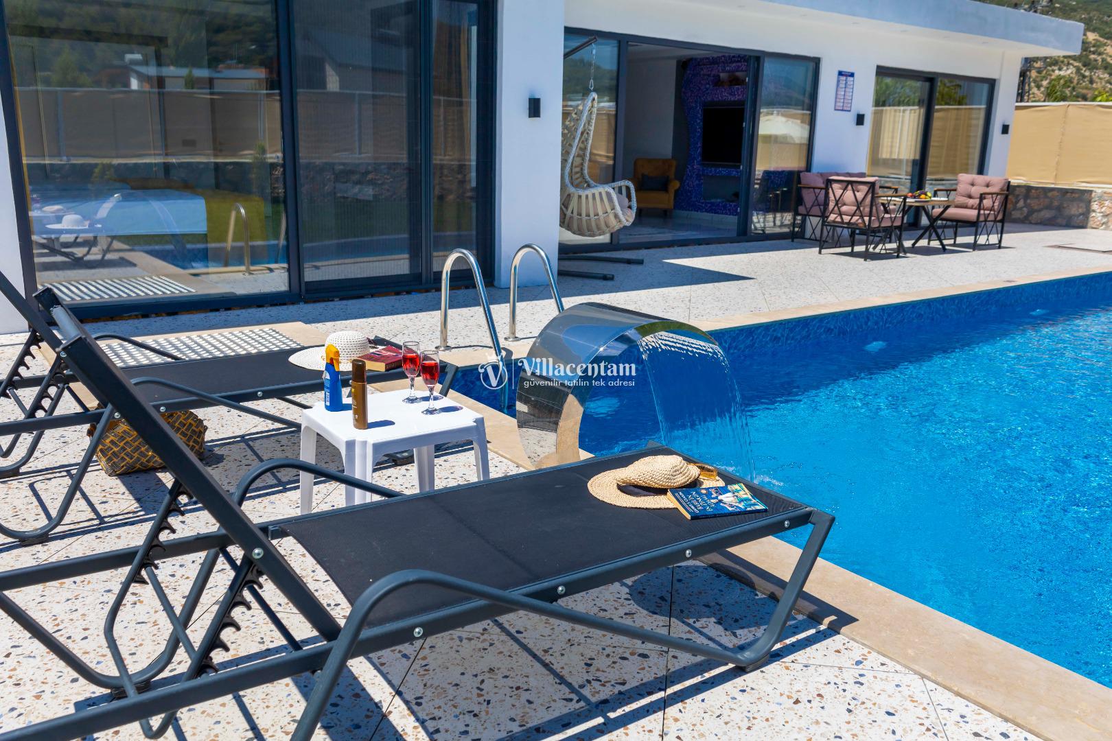 Villa Guru, Kalkan Sarıbelen mevkiinde konumlanan şehrin gürültüsünden uzak, doğanın kalbinde konumlanan bu özel villa; huzur, konfor ve mahremiyeti bir arada sunan keyifli bir tatil deneyimi vadediyor. 2 yatak odası ve 4 kişilik kapasitesiyle çekirdek aileler ve balayı çiftleri için ideal bir konaklama alternatifi oluşturur.Villanın yemyeşil manzaraya açılan özel yüzme havuzu ve bahçesi, gün boyu dinlenip doğayla baş başa kalabileceğiniz bir alan sunar. Güne kuş sesleriyle uyanabilir, akşamları ise temiz hava eşliğinde keyifli anlar yaşayabilirsiniz. Modern ve şık detaylarla tasarlanan iç mekân; konforlu oturma alanı, tam donanımlı mutfak ve ferah yatak odalarıyla ev rahatlığını tatilinize taşır.Doğa ile iç içe sakin bir konumda yer alan villa, hem dinlenmek hem de sevdiklerinizle kaliteli zaman geçirmek isteyen misafirler için özenle hazırlanmıştır. Mahremiyetine önem verenler için uygun yapısı sayesinde gözlerden uzak, huzurlu bir tatil arayanların beklentilerini fazlasıyla karşılar.
