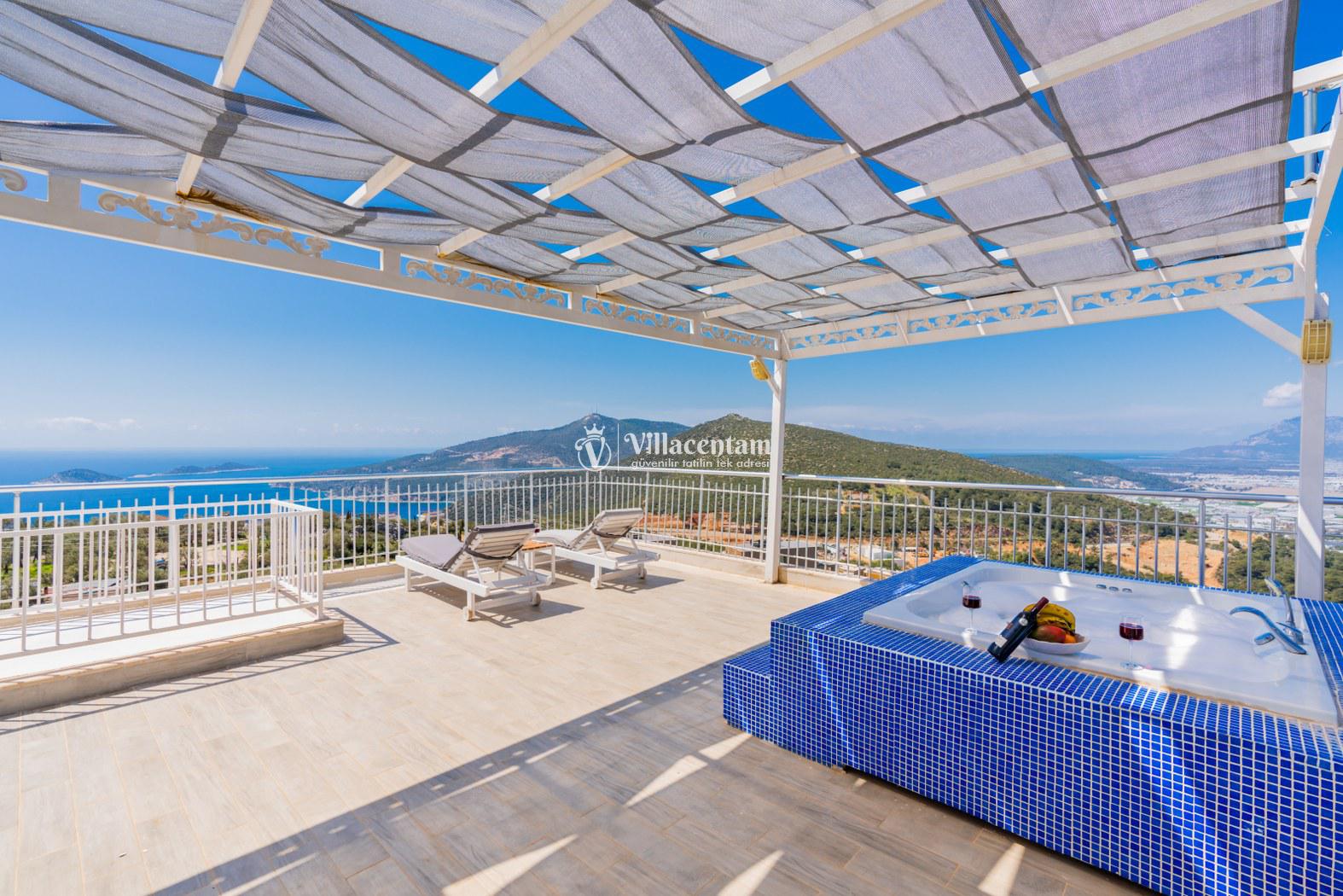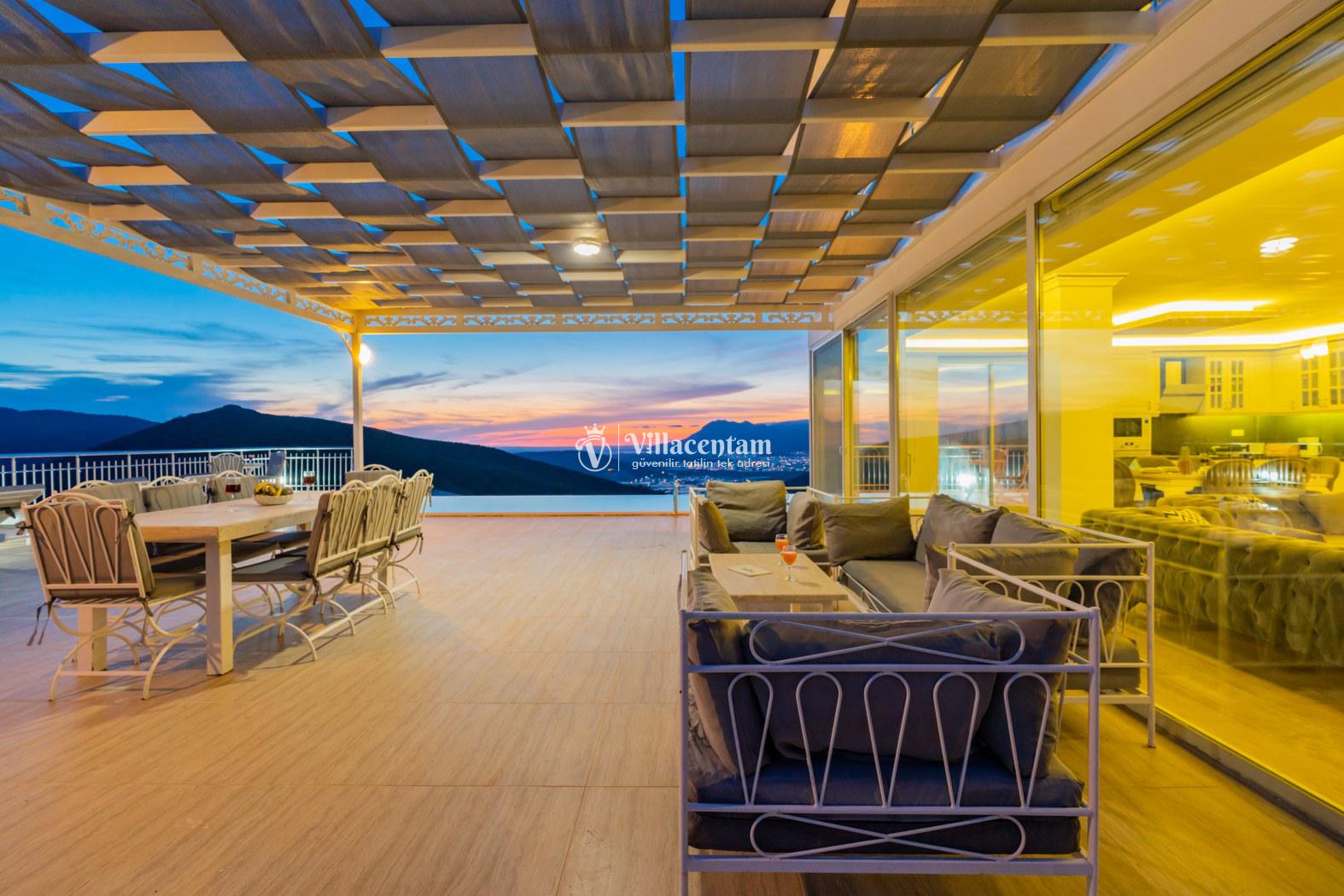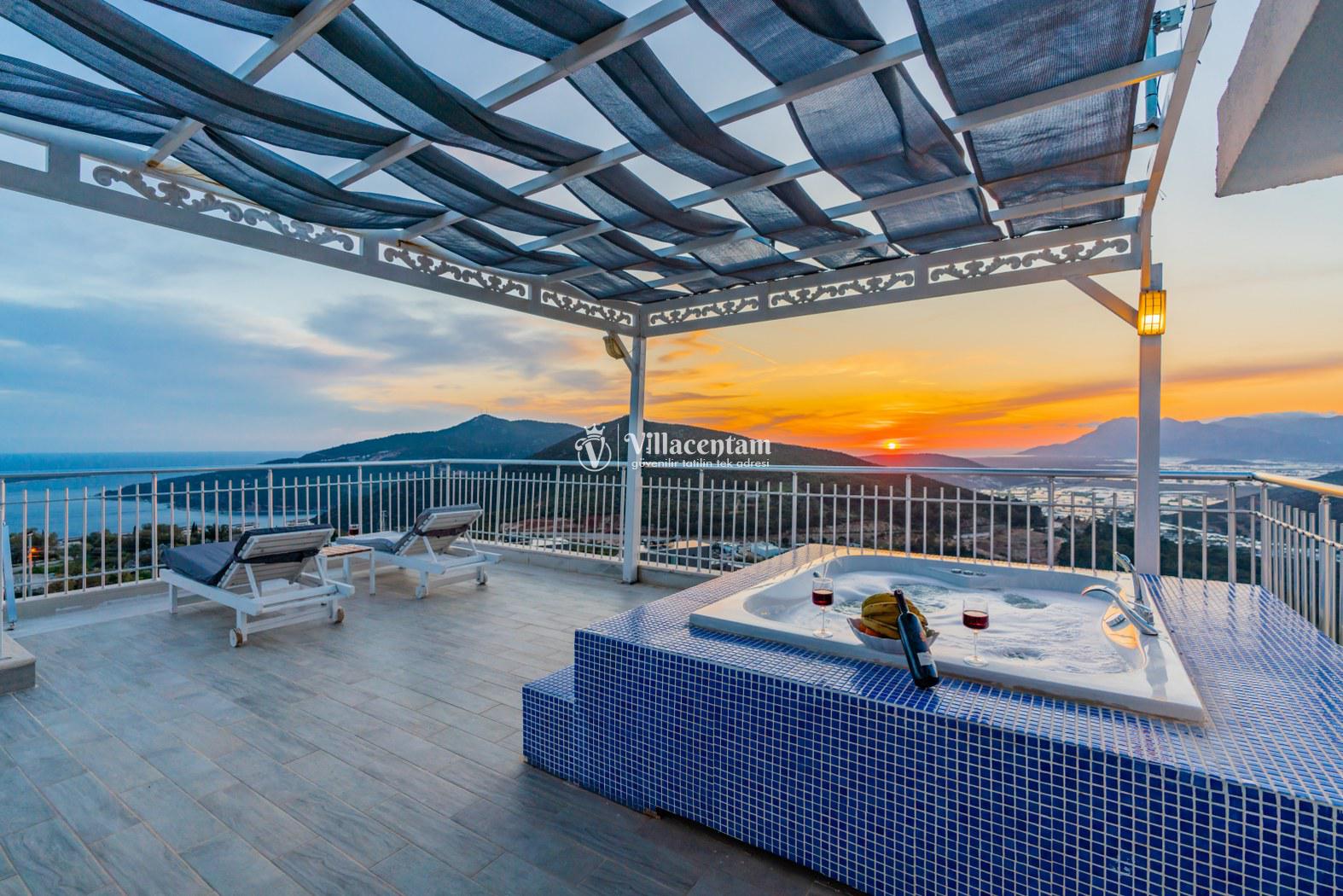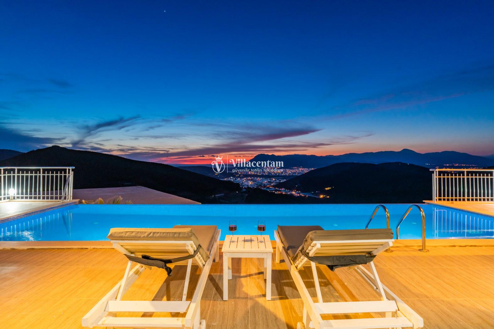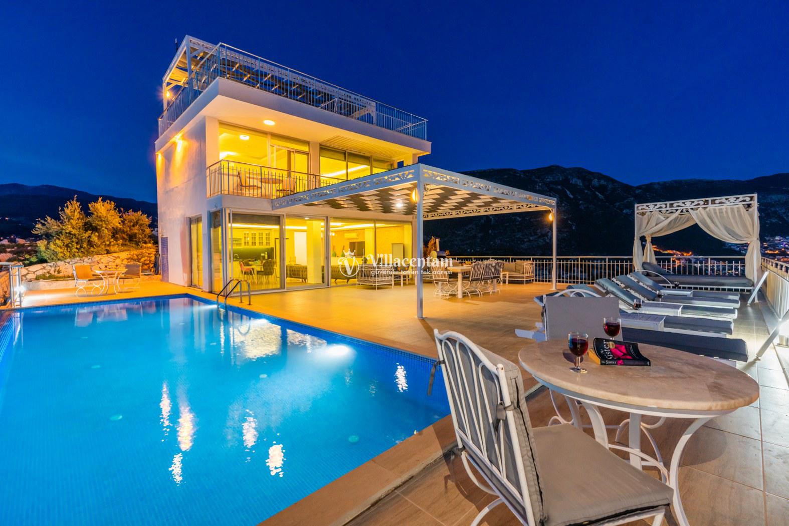 Villa İnfinity, Kalkan Akbel mevkiinde konumlanmış olan ultra lüks, muhteşem deniz ve doğa manzarasına hakim kiralık villalarımız arasında yer almaktadır. Yazlık villamızda 4 adet yatak odası bulunmakta olup, 8 kişiye konaklama imkanı sağlamaktakdır. Modern ve konforlu bir şekilde dizayn edilen villamızda, kapalı ısıtmalı havuz, sauna, masa tenisi, jakuzi ve spor aletleri yer almaktadır. Ayrıca kiralık villamız oldukça korunaklıdır. Muhafazar aileler, geniş aileler ve kalabalık arakadaş grupları tercih edebilirler. Hayallerinizinde ötesinde keyifli bir yazlık villada tatil için Villa İnfinity' i tercih edebilirsiniz.