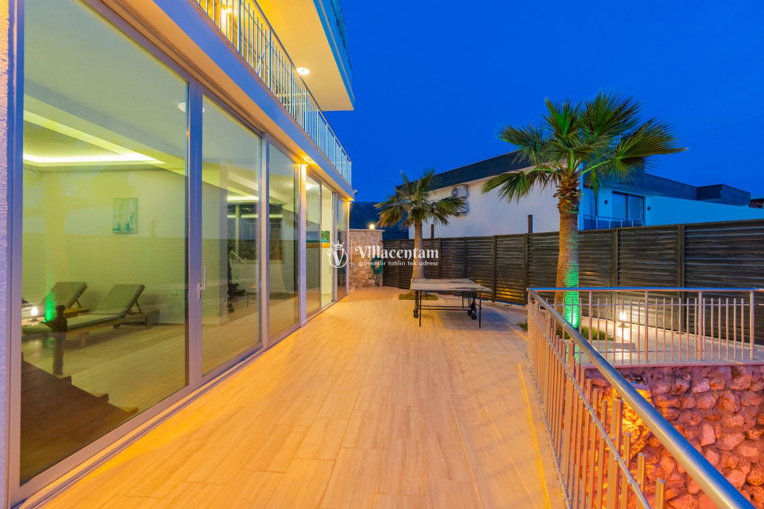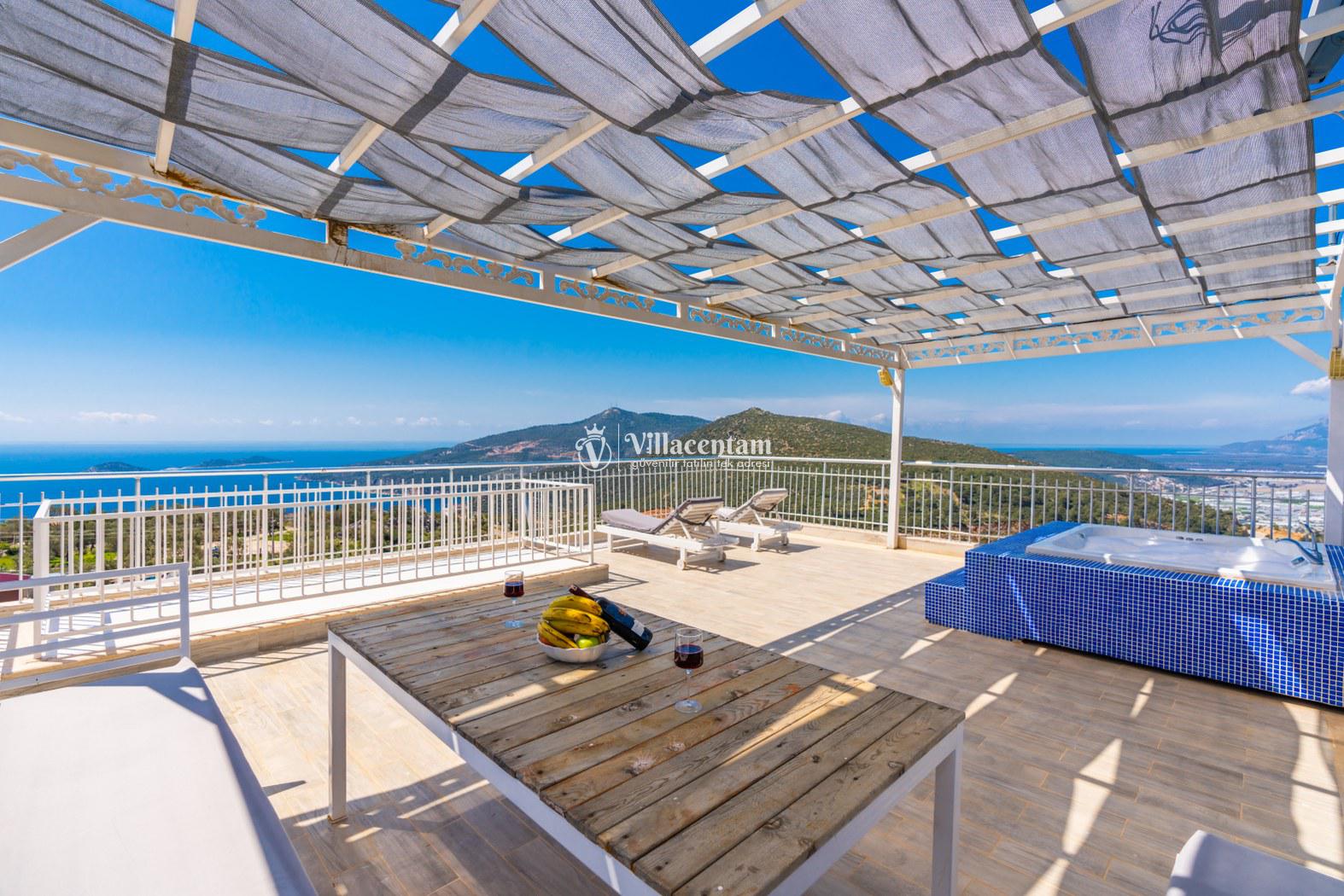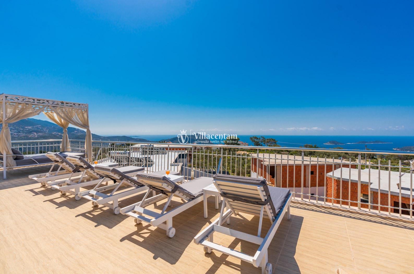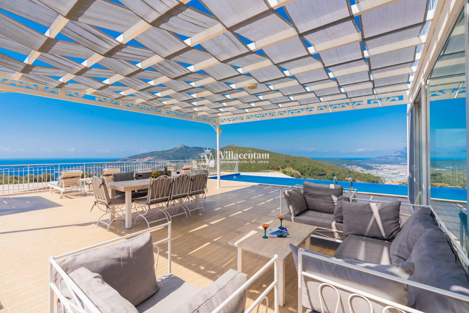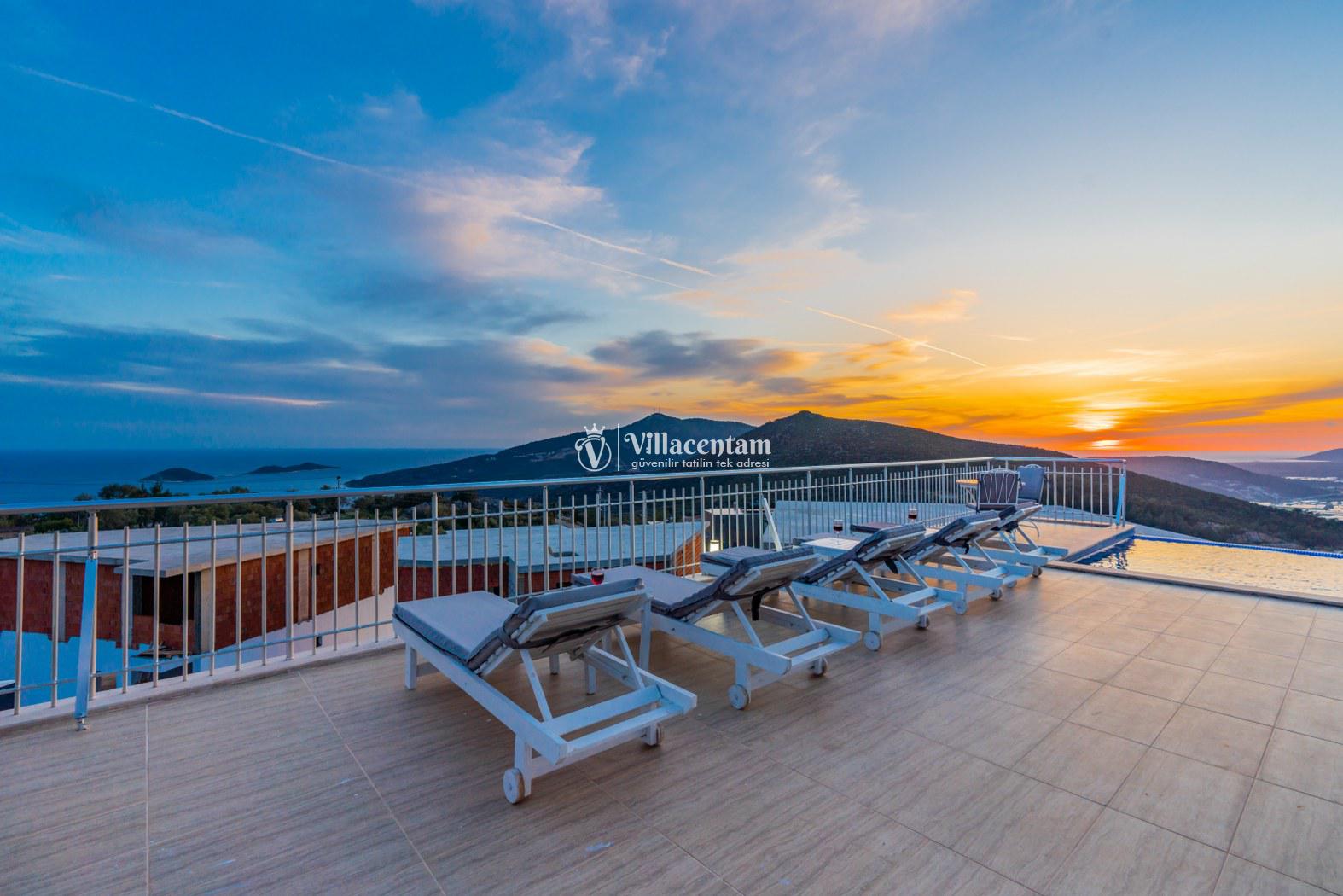 Villa İnfinity, Kalkan Akbel mevkiinde konumlanmış olan ultra lüks, muhteşem deniz ve doğa manzarasına hakim kiralık villalarımız arasında yer almaktadır. Yazlık villamızda 4 adet yatak odası bulunmakta olup, 8 kişiye konaklama imkanı sağlamaktakdır. Modern ve konforlu bir şekilde dizayn edilen villamızda, kapalı ısıtmalı havuz, sauna, masa tenisi, jakuzi ve spor aletleri yer almaktadır. Ayrıca kiralık villamız oldukça korunaklıdır. Muhafazar aileler, geniş aileler ve kalabalık arakadaş grupları tercih edebilirler. Hayallerinizinde ötesinde keyifli bir yazlık villada tatil için Villa İnfinity' i tercih edebilirsiniz.