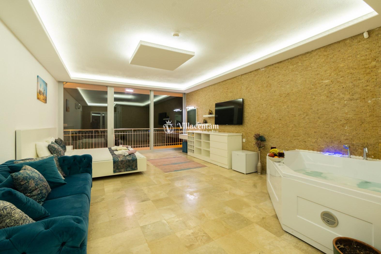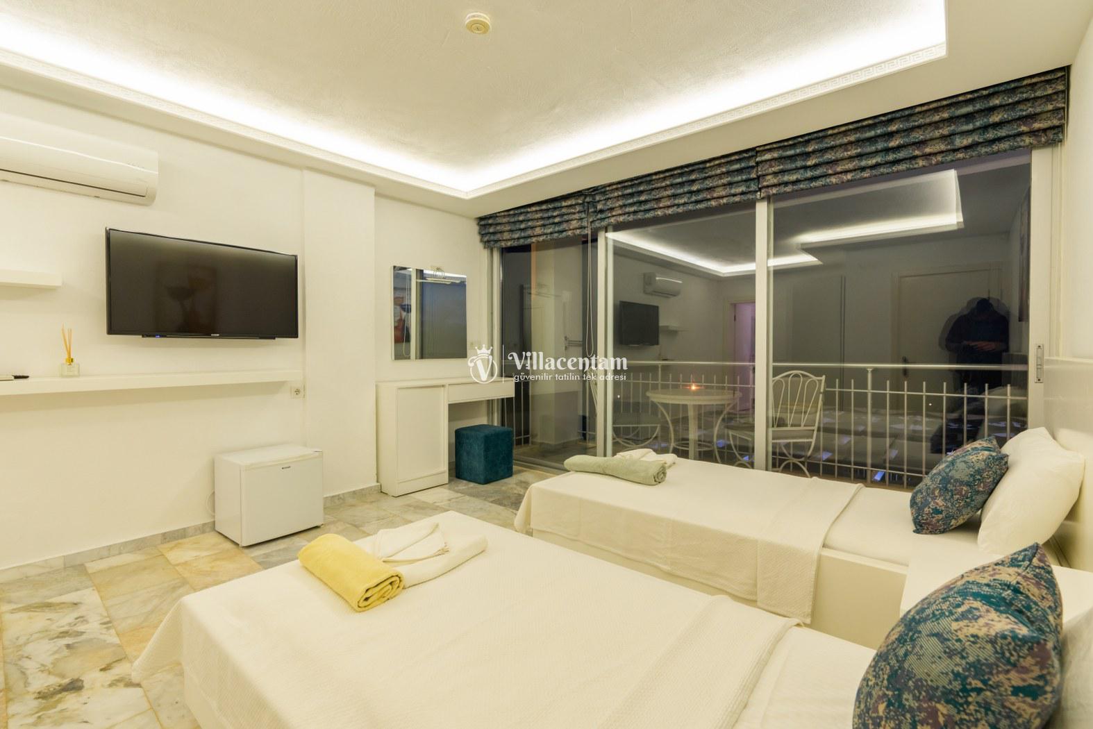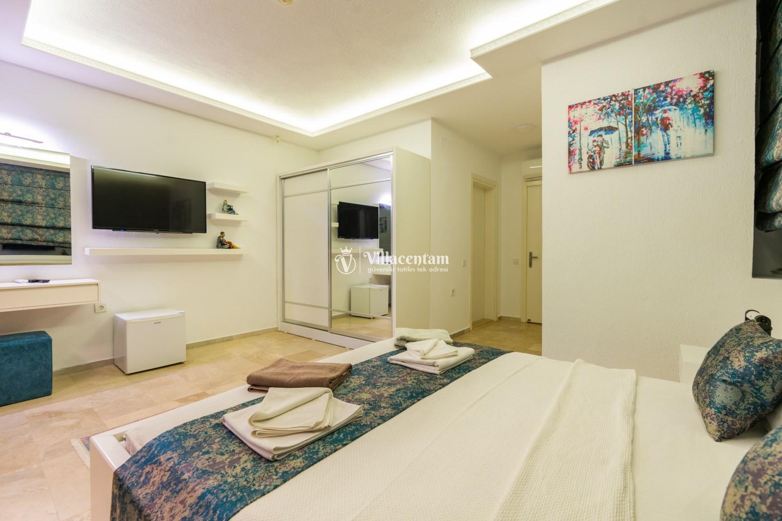NOT 1: Villamızda 4 adet yatak odası bulunmakta olup, salonda yer alan açılır-kapanır çekyat sayesinde 8 olan kişi kapasiesi 12' ye ulaşmaktadır.