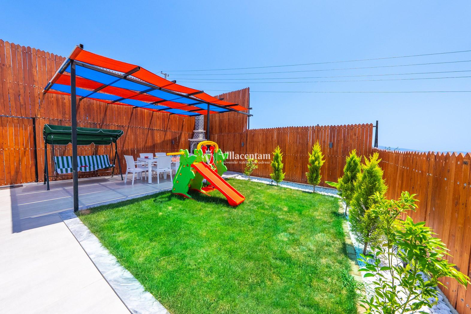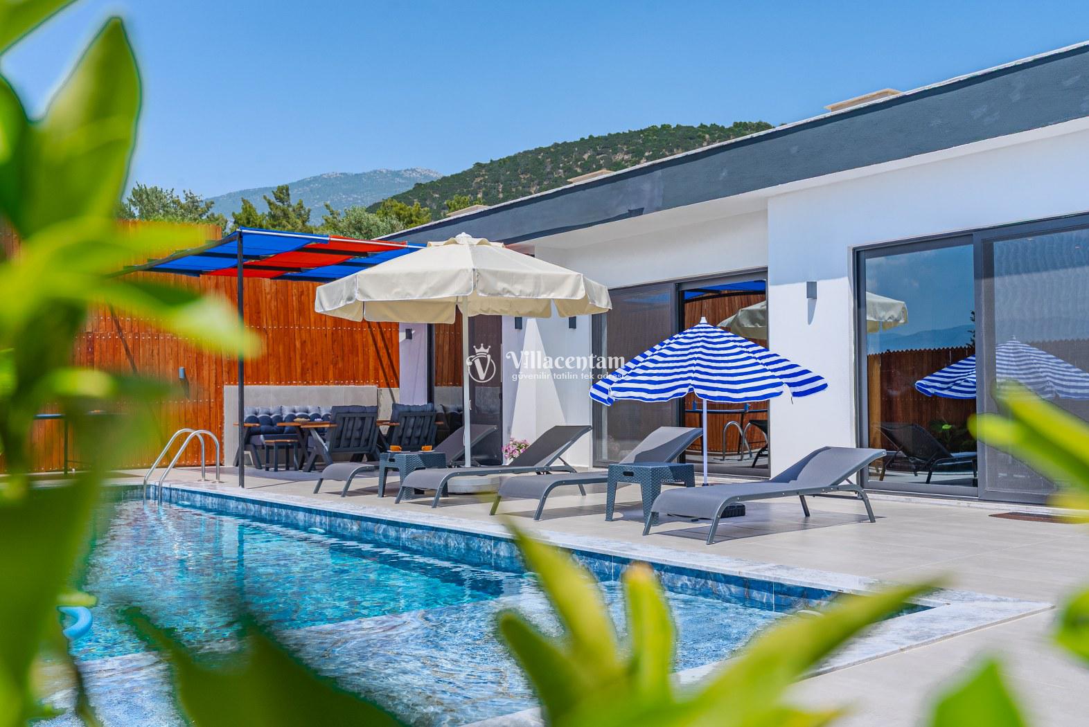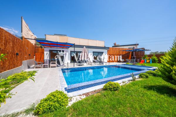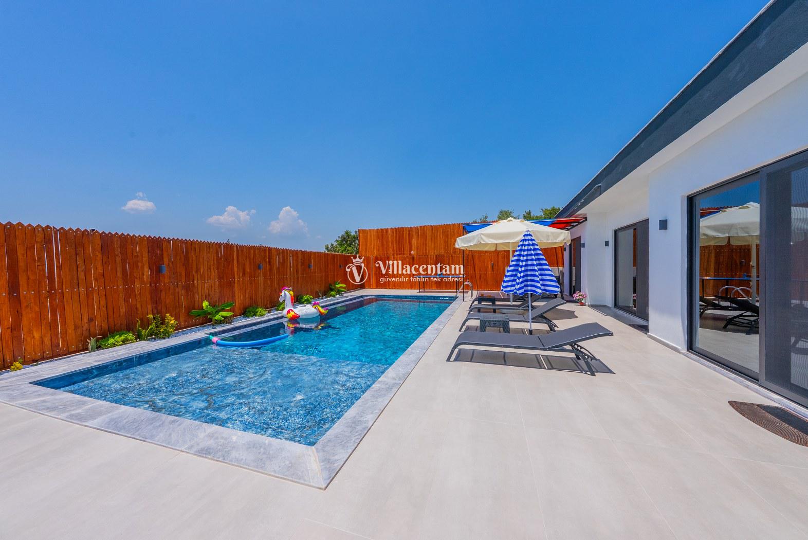 Modern ve kullanışlı şekilde dizayn edilen villamızda geniş bahçe ve havuz terası, şezlong alanı, oturma grubu, salıncak ve barbekü bölümü yer almakta olup sevdiklerinizle birlikte keyifli vakit geçirmeniz için tüm detaylar düşünülmüştür. Doğa içerisinde sakin tatil arayan misafirler için oldukça uygun bir alternatiftir.