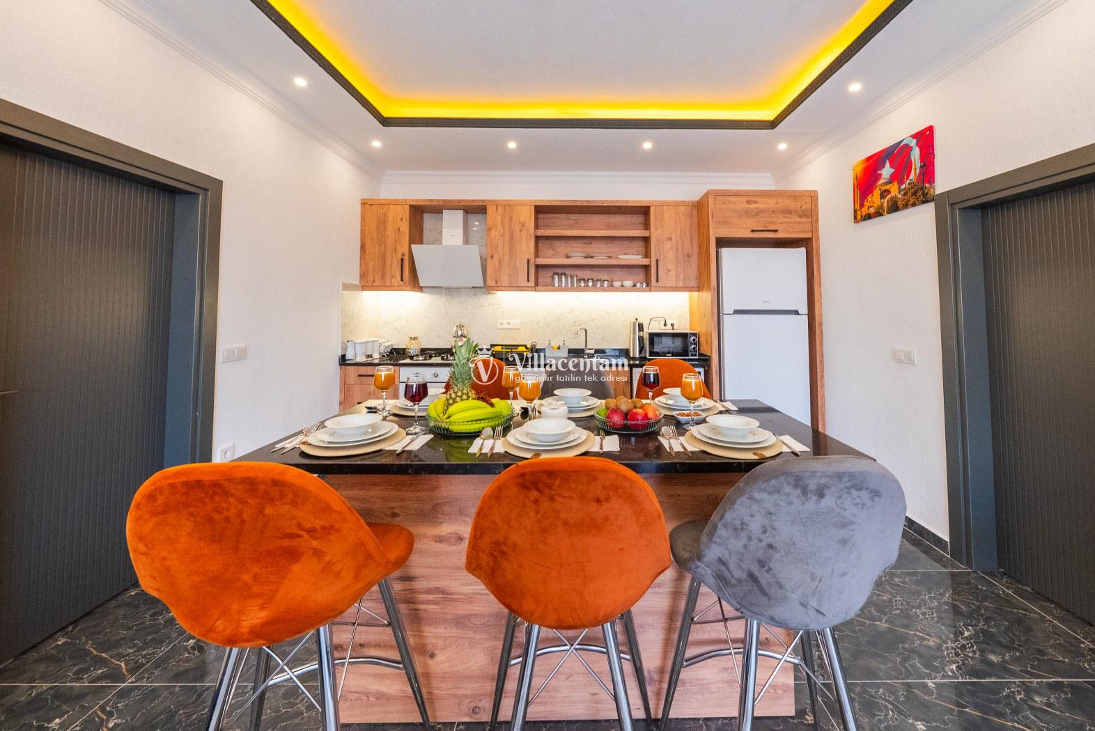 Konforlu salonu ve tam donanımlı Amerikan mutfağı ile ev rahatlığını aratmayan Villa İnziva 2, hem dinlenmek hem de eğlenceli anılar biriktirmek isteyen misafirlerini beklemektedir.