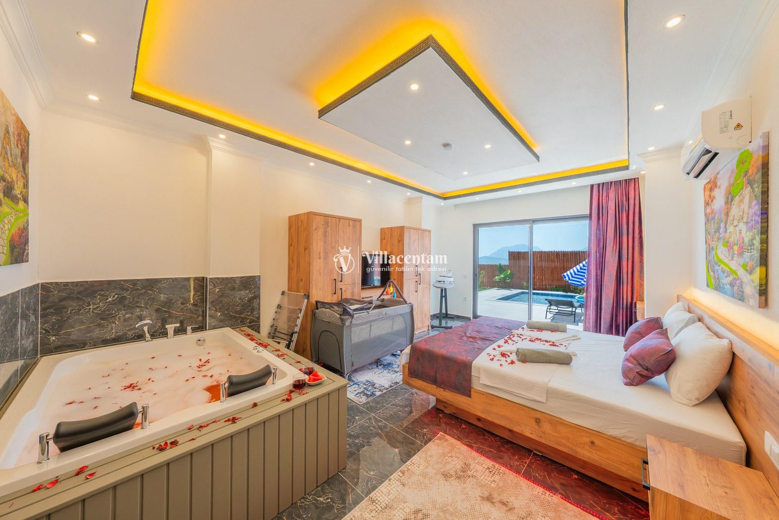 Doğanın huzurlu atmosferinde konumlanan Villa İnziva 2 tam korunaklı özel yüzme havuzu sayesinde gözlerden uzak, özgür ve konforlu bir tatil deneyimi yaşayabilirsiniz. Süit yatak odasında bulunan jakuzi, tatilinize keyifli ve ayrıcalıklı bir dokunuş katmaktadır.