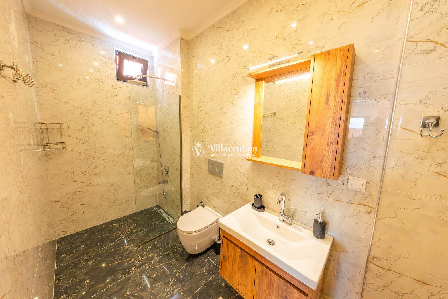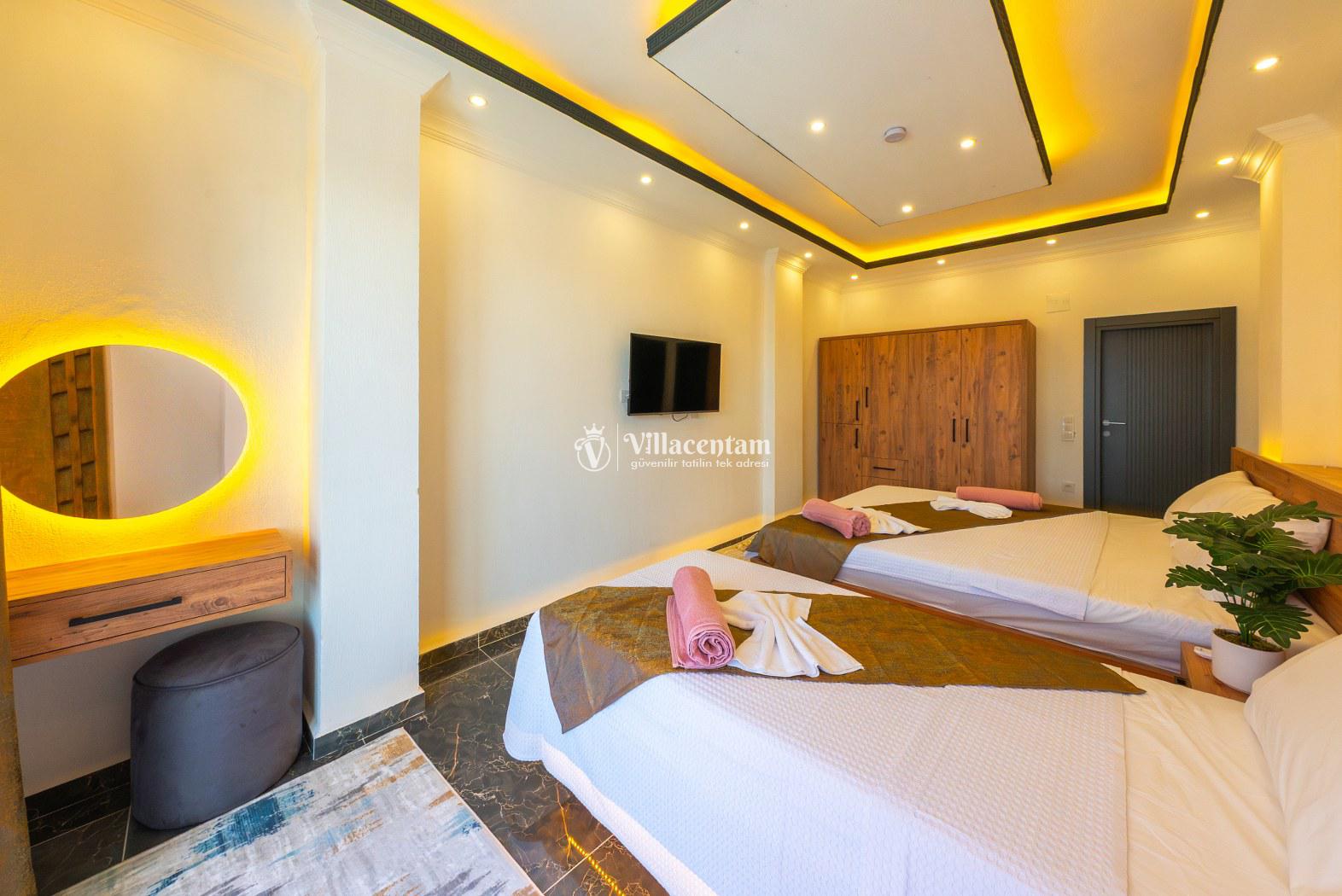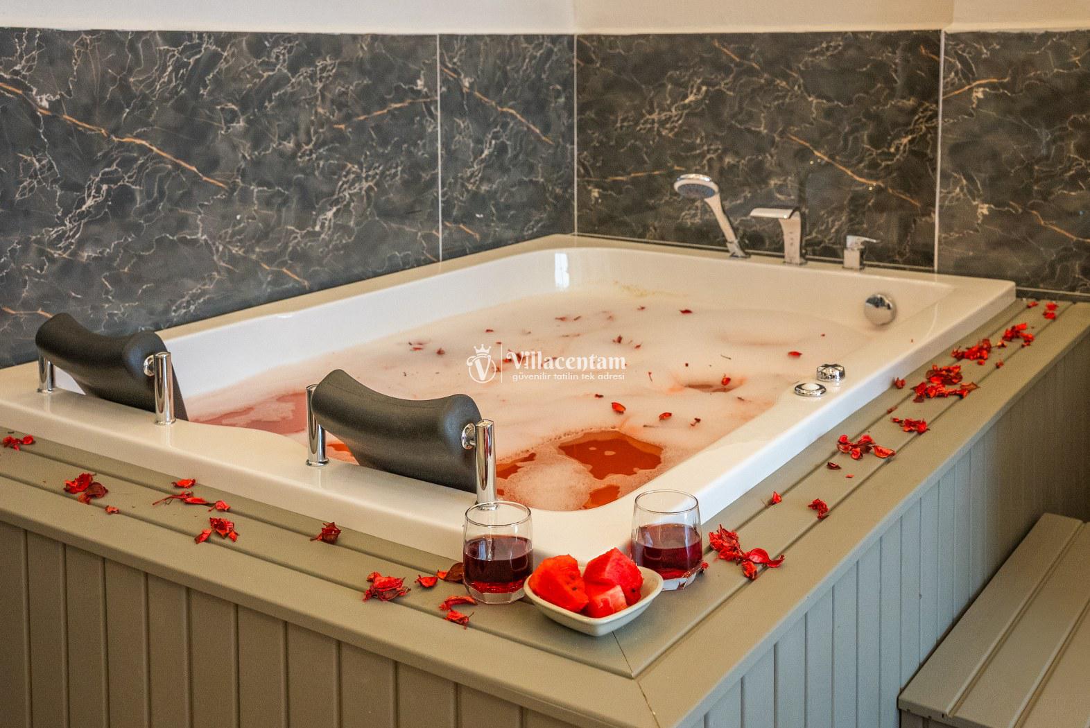 *Villalarda sıcak su için güneş enerjili su ısıtma sistemleri kullanılmaktadır. Çok yoğun sıcak su kullanımında, yoğunluğa ve su tankının büyüklüğüne bağlı olarak su tankında sıcak su tükenebilmekte ve tekrar suyun ısınması için belirli bir süre geçmesi gerekmektedir. Bu not sadece bu villa ile ilgili değil, tüm villalarımız için geçerli bir durumdur.