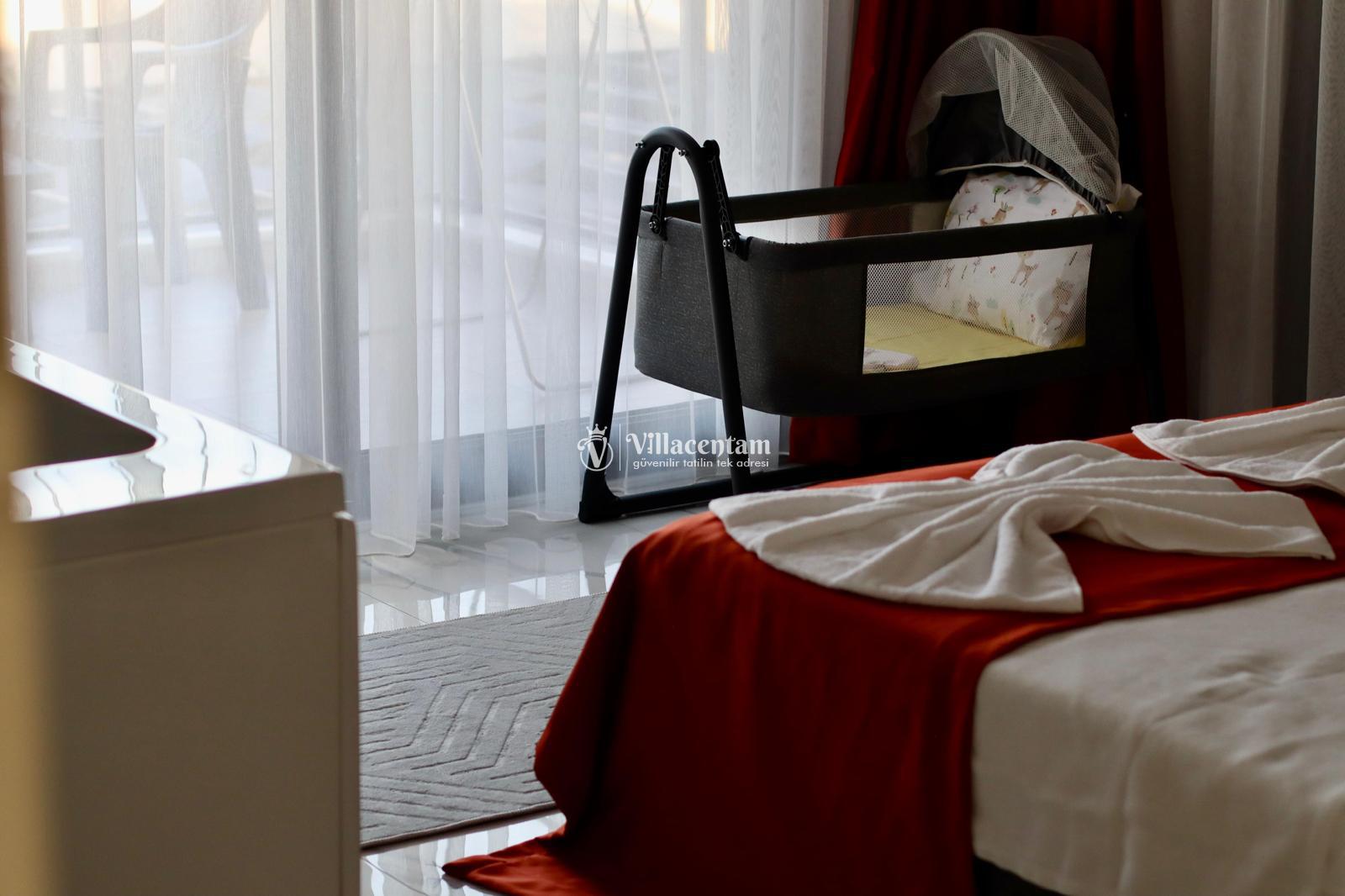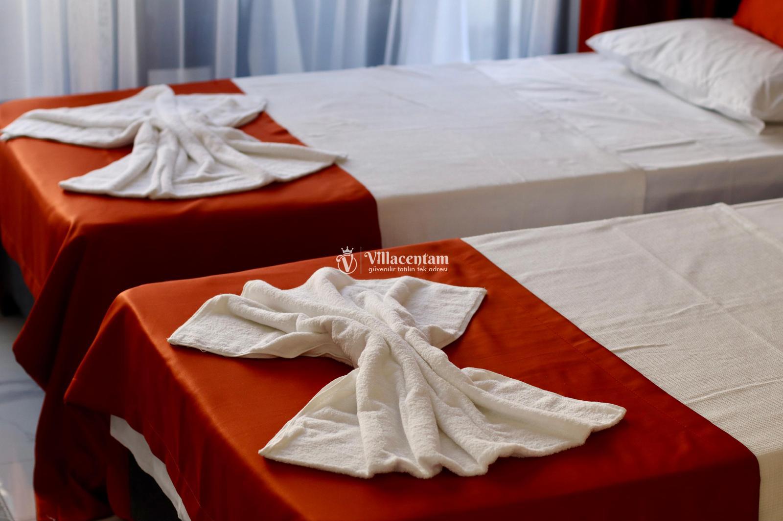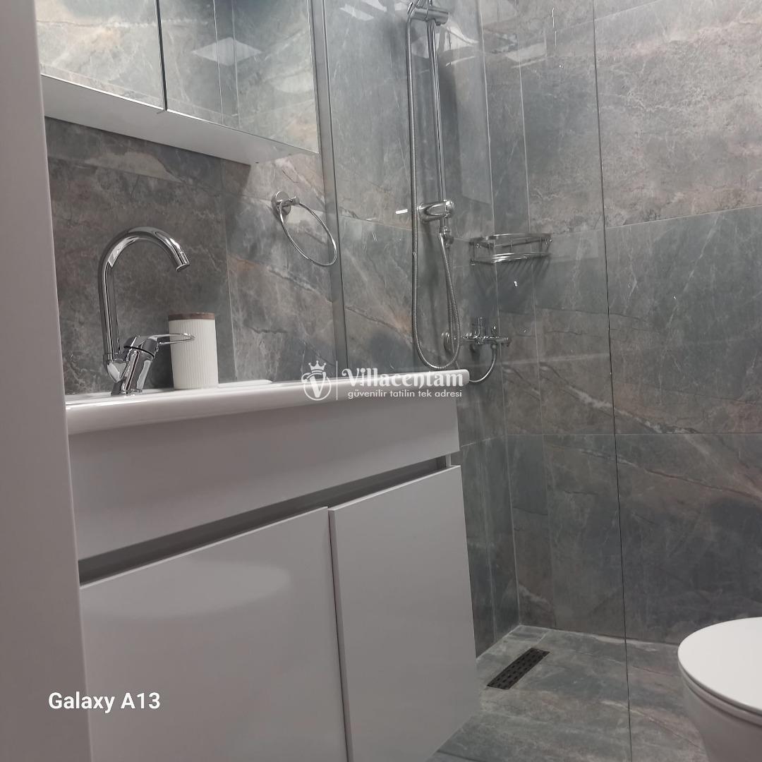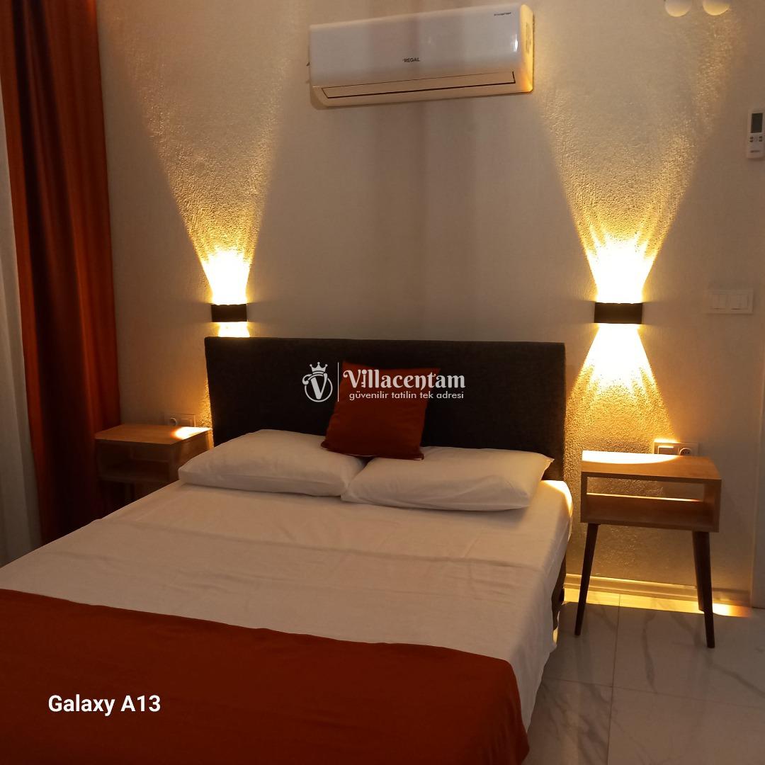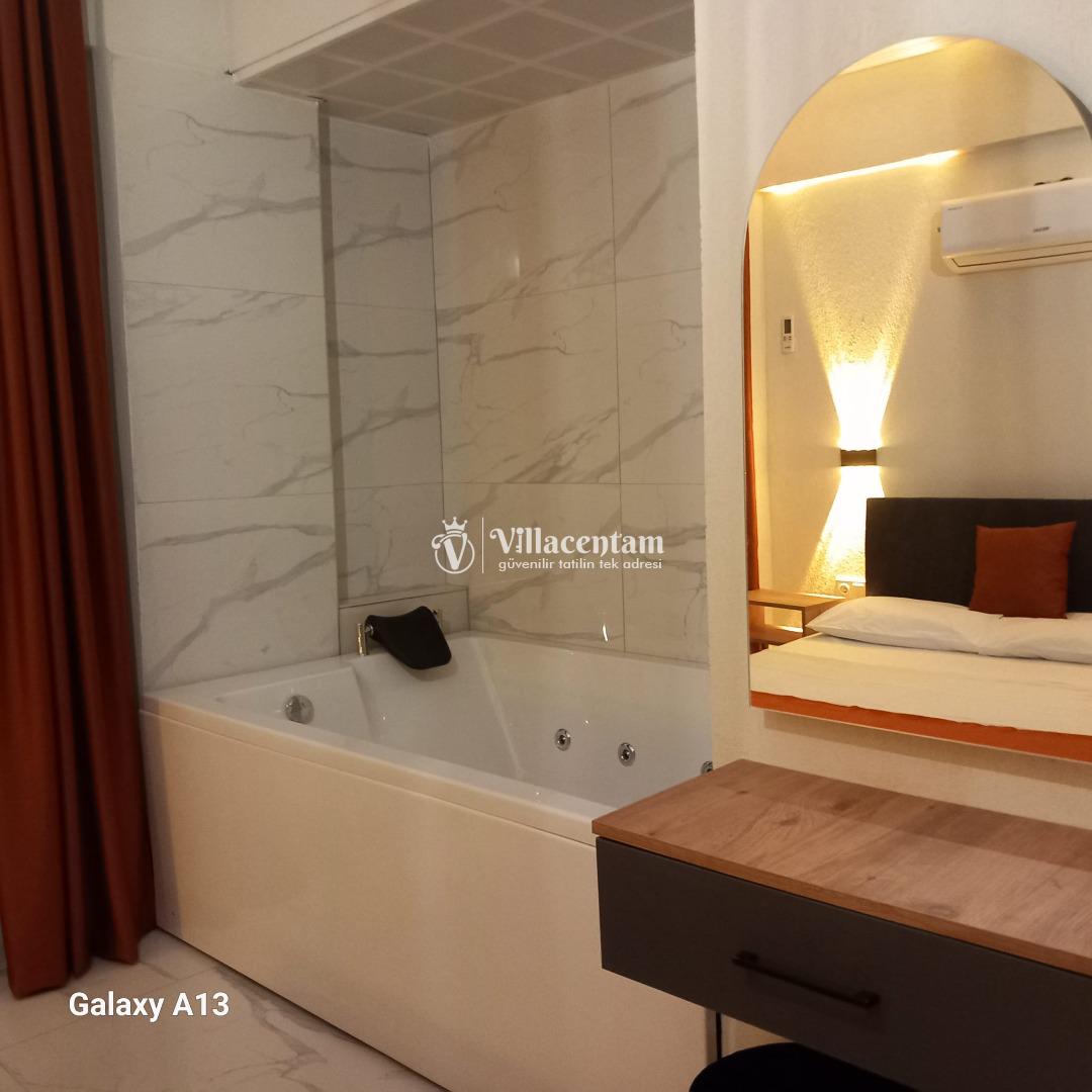 *Villalarda sıcak su için güneş enerjili su ısıtma sistemleri kullanılmaktadır. Çok yoğun sıcak su kullanımında, yoğunluğa ve su tankının büyüklüğüne bağlı olarak su tankında sıcak su tükenebilmekte ve tekrar suyun ısınması için belirli bir süre geçmesi gerekmektedir. Bu not sadece bu villa ile ilgili değil, tüm villalarımız için geçerli bir durumdur.