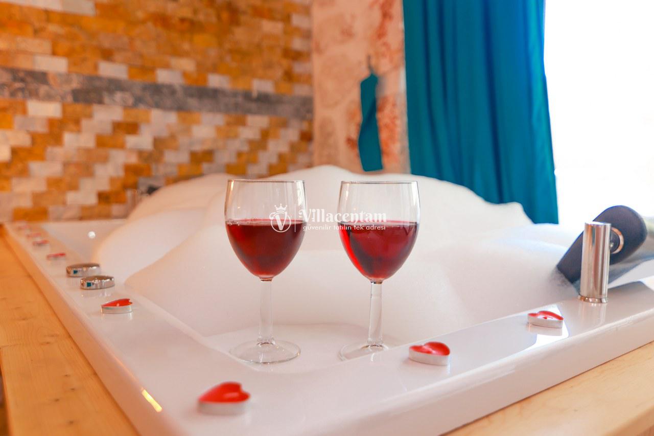 Villalarda sıcak su için güneş enerjili su ısıtma sistemleri kullanılmaktadır. Çok yoğun sıcak su kullanımında, yoğunluğa ve su tankının büyüklüğüne bağlı olarak su tankında sıcak su tükenebilmekte ve tekrar suyun ısınması için belirli bir süre geçmesi gerekmektedir. Bu not sadece bu villa ile ilgili değil, tüm villalarımız için geçerli bir durumdur