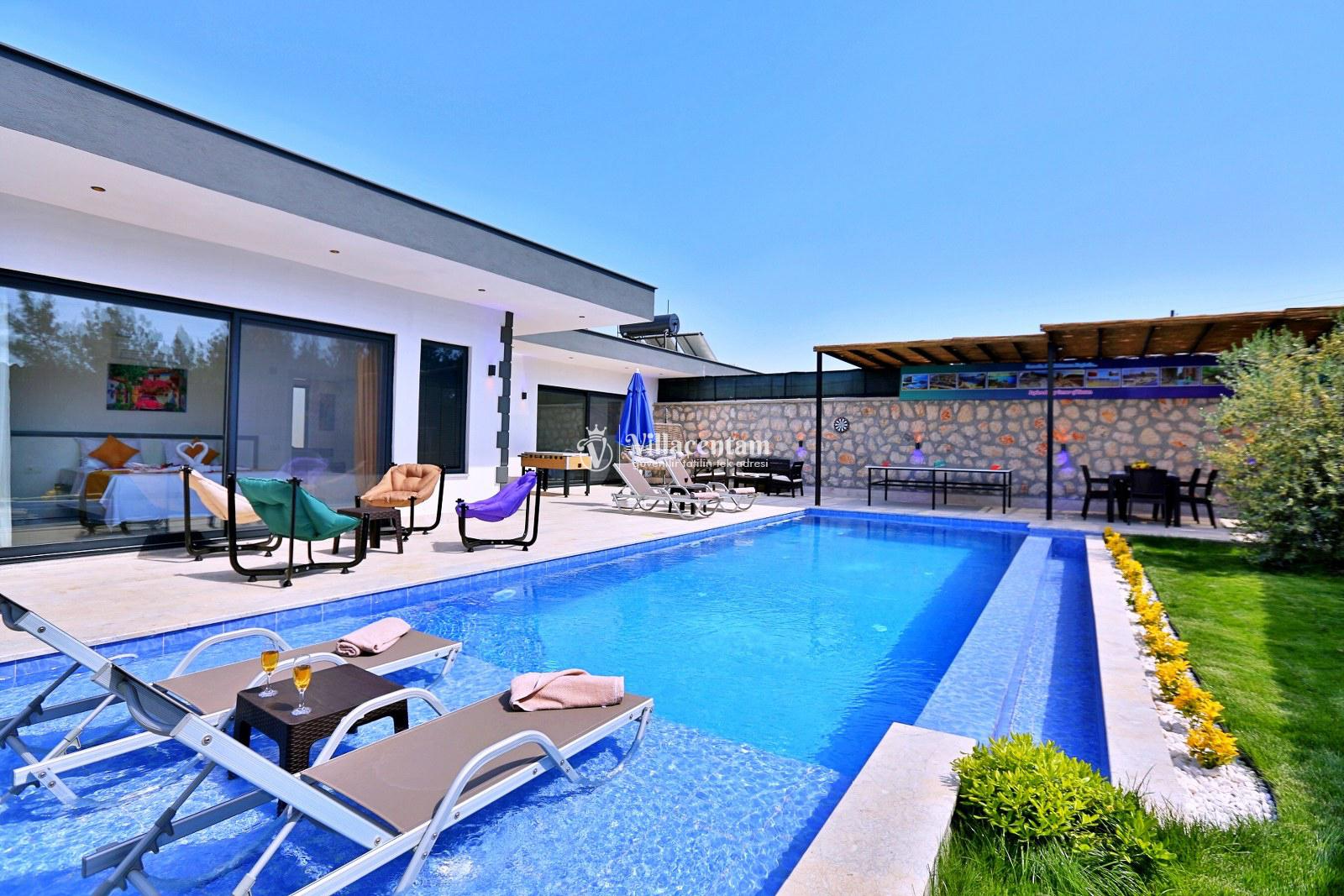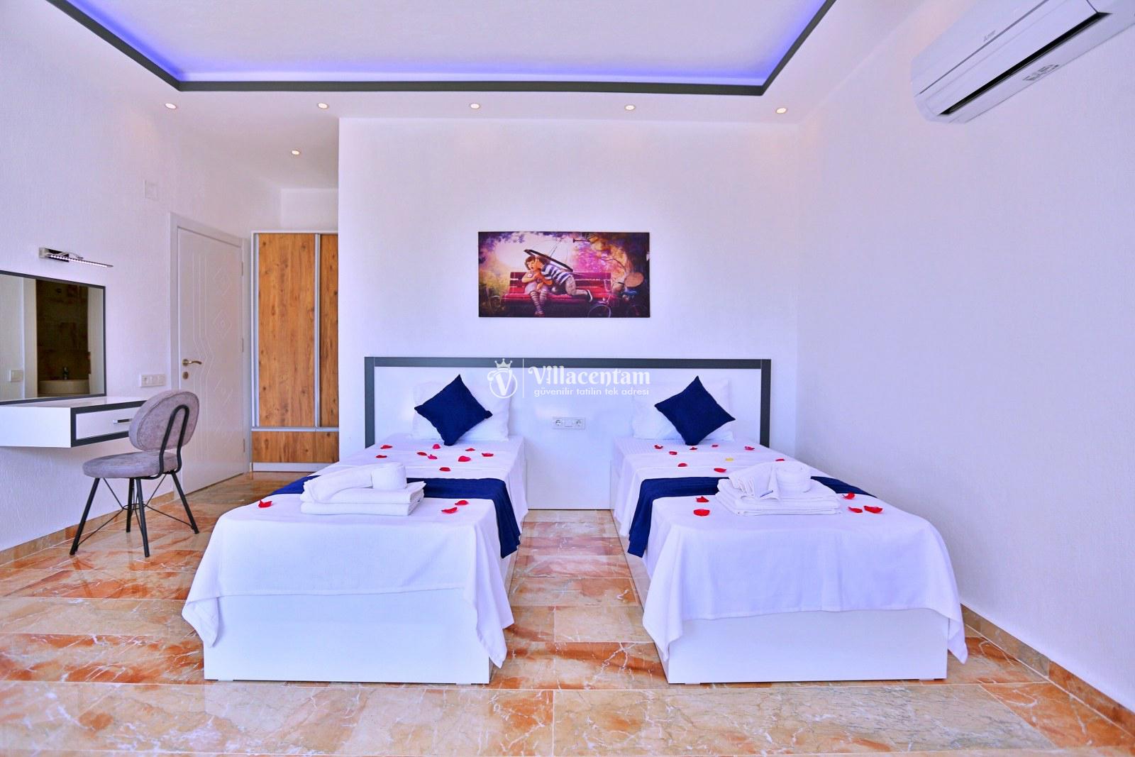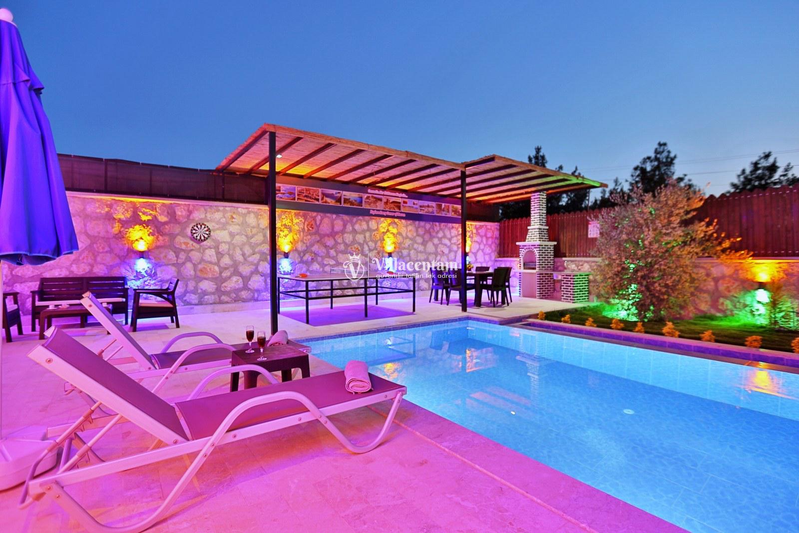 Villa Kara Duo , Kaş Çavdır mevkiinde konumlanmakta olan doğa manzarasına hakim kiralık villalarımız arasında yer almaktadır. Şık ve konforlu bir şekilde dizayn edilen yazlık villamızda 2 adet yatak odası bulunmakta olup, 4 kişiye konaklama imkanı sağlamaktadır. . Havuz ve havuz terası korunaklı bir hale getirilmiştir. Villamızın ebeveyn yatak odasının içerisinde tüm yılın vermiş olduğu yorgunluğu atabileceğiniz jakuzi yer almaktadır
