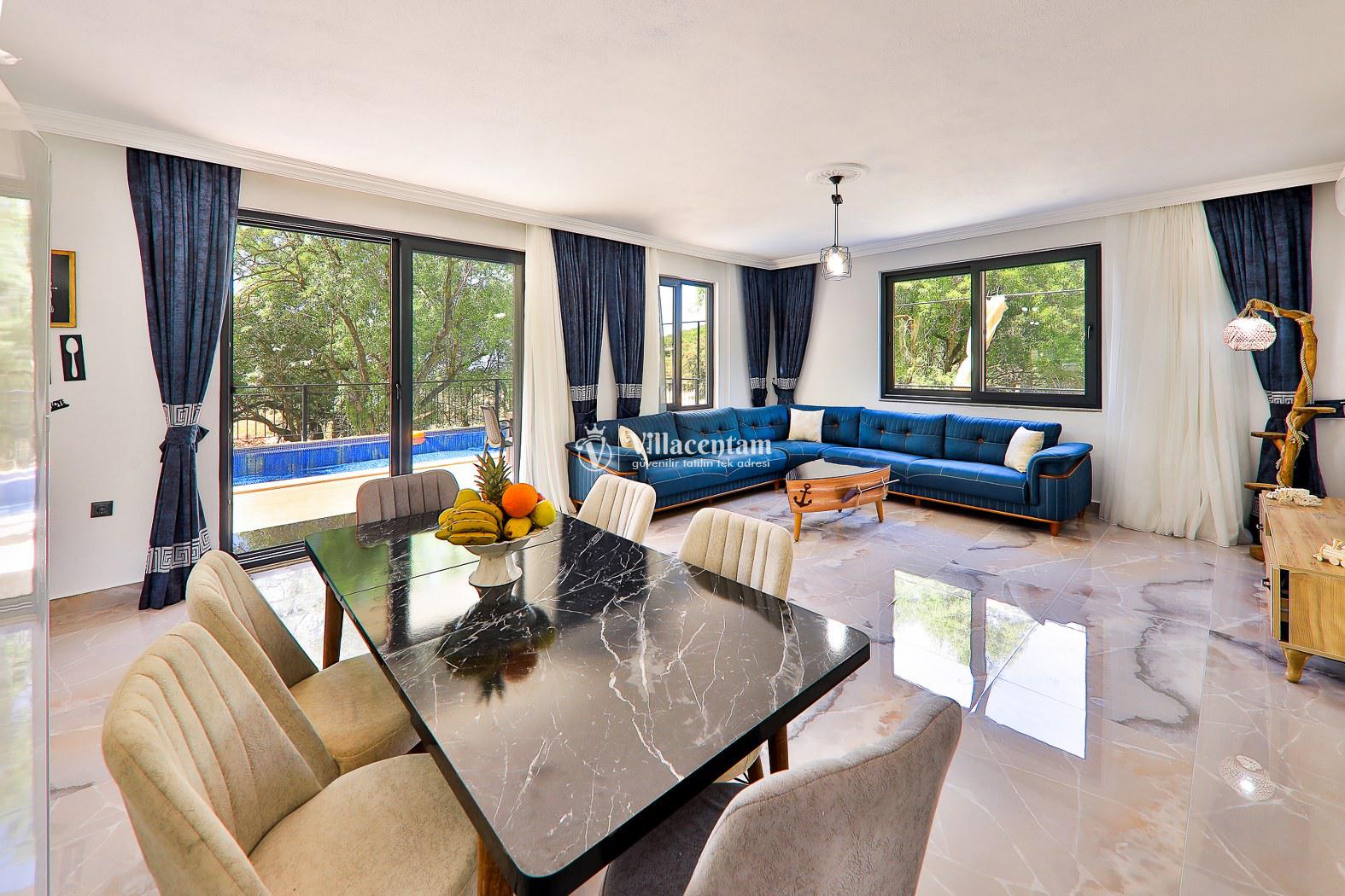 Doğa manzarasıyla çevrili bu villa, şehrin gürültüsünden uzaklaşmak isteyen misafirler için ideal bir kaçamak noktasıdır. 🏡 Kaş’ın merkezi ve popüler plajlara araçla kolay erişim imkânı sayesinde hem huzur hem de eğlenceyi bir arada yaşayabilirsiniz.