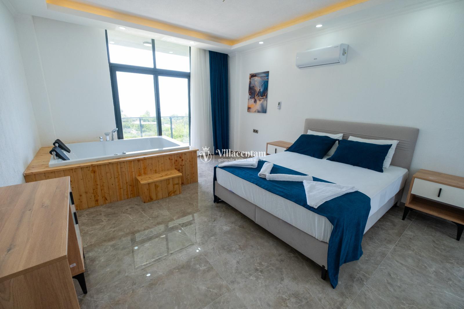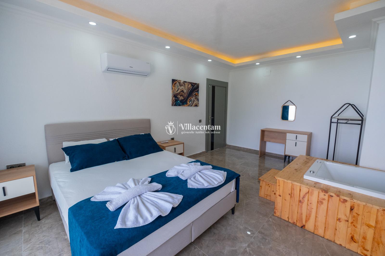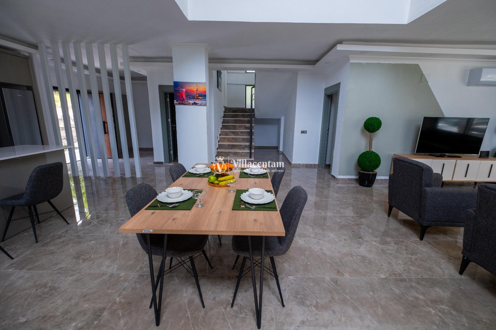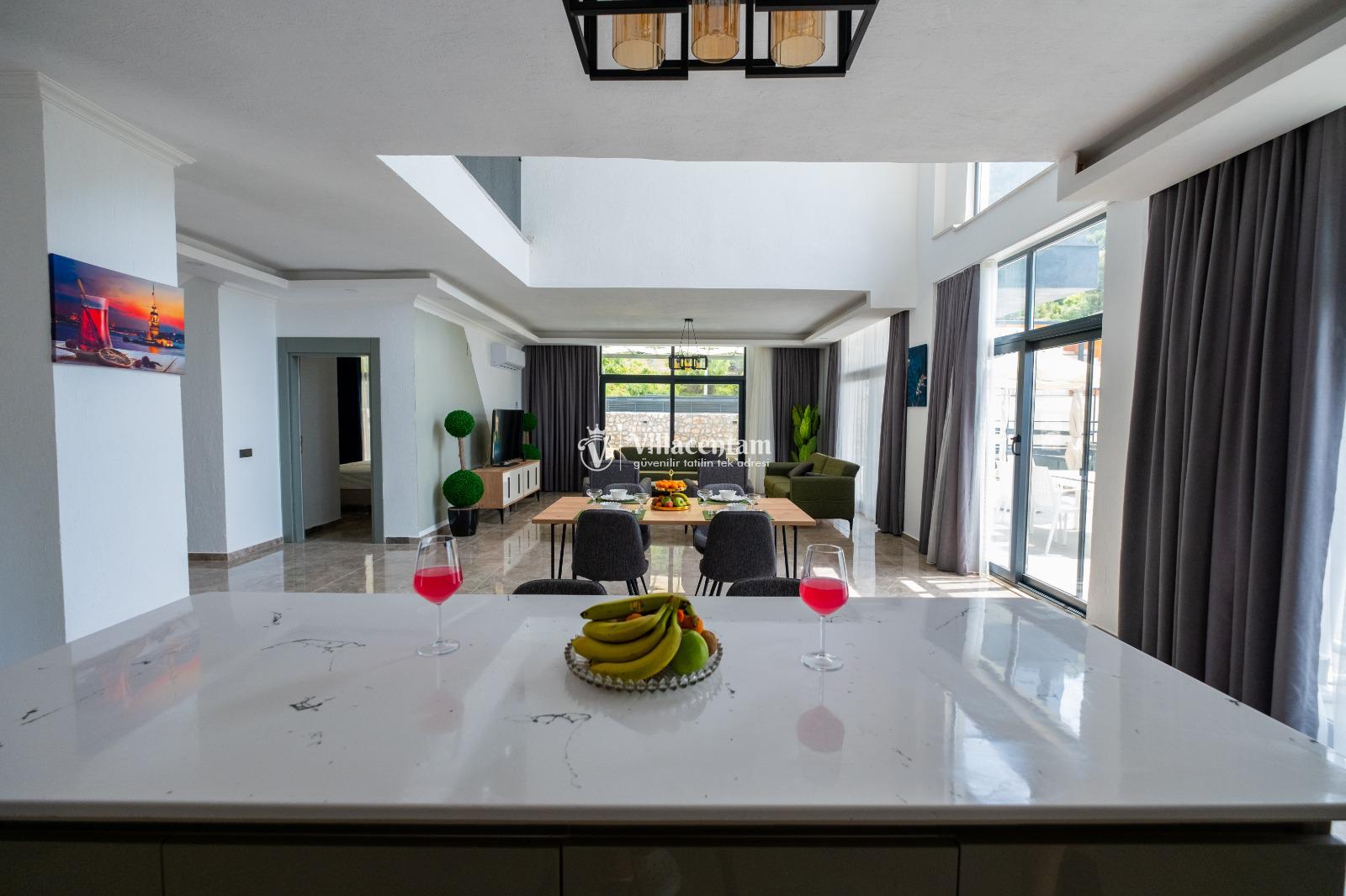 Villa King, Kalkan İslamlar mevkiinde konumlanan konfor, ferahlık ve özel alan ayrıcalığını bir arada sunan bu 8 kişilik villa, kalabalık aileler ve arkadaş grupları için ideal bir tatil deneyimi vadediyor. Geniş yaşam alanları, modern mimarisi ve özenle tasarlanmış detaylarıyla yılın her döneminde keyifli bir konaklama sunar. Villa içerisinde 4 yatak odası, rahat ve aydınlık bir salon, tam donanımlı mutfak ve modern banyolar yer almaktadır. Özel yüzme havuzu ve geniş bahçesi sayesinde gün boyu özgürce vakit geçirebilir, sevdiklerinizle birlikte size ait bir alanda tatilin tadını çıkarabilirsiniz. Doğa ile iç içe veya manzaralı konumu, sakinlik arayan misafirler için huzurlu bir atmosfer oluştururken; merkezi noktalara olan yakınlığı sayesinde ulaşım açısından da avantaj sağlar. Konforlu mobilyalar, yüksek standartlarda donanım ve mahremiyete önem veren yapısıyla unutulmaz bir villa tatili sizi bekliyor.