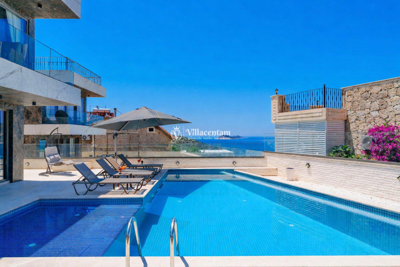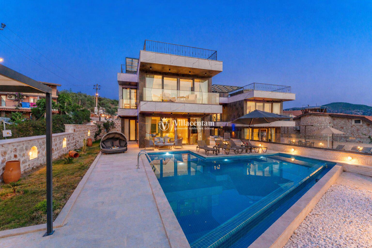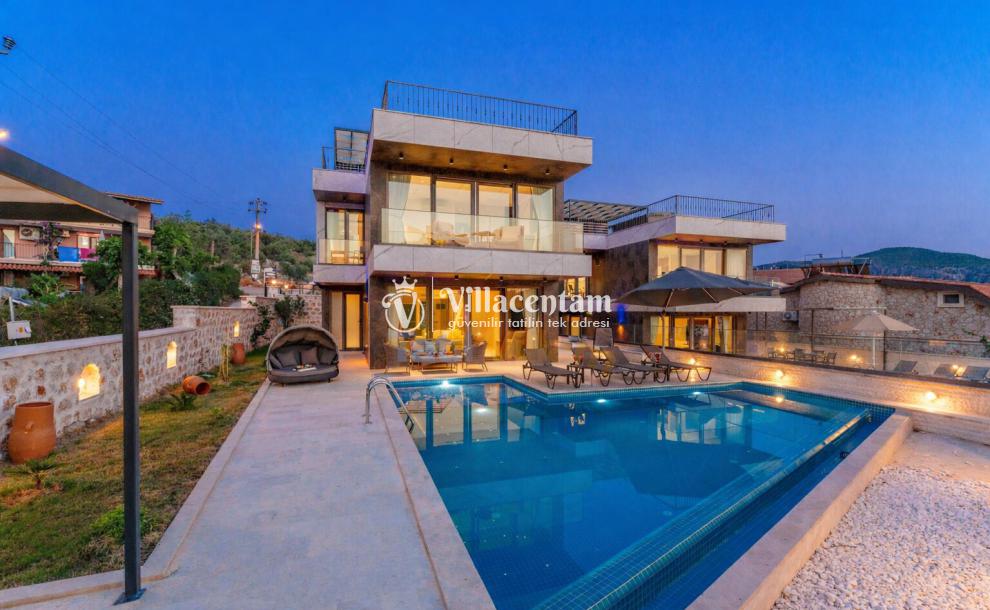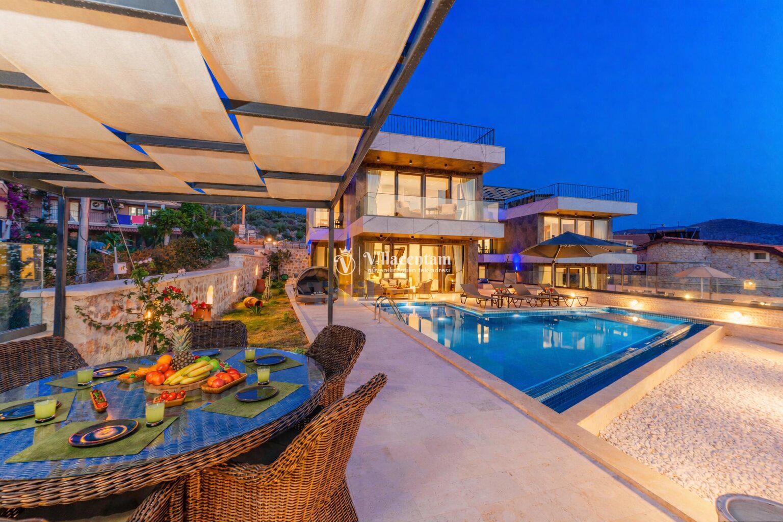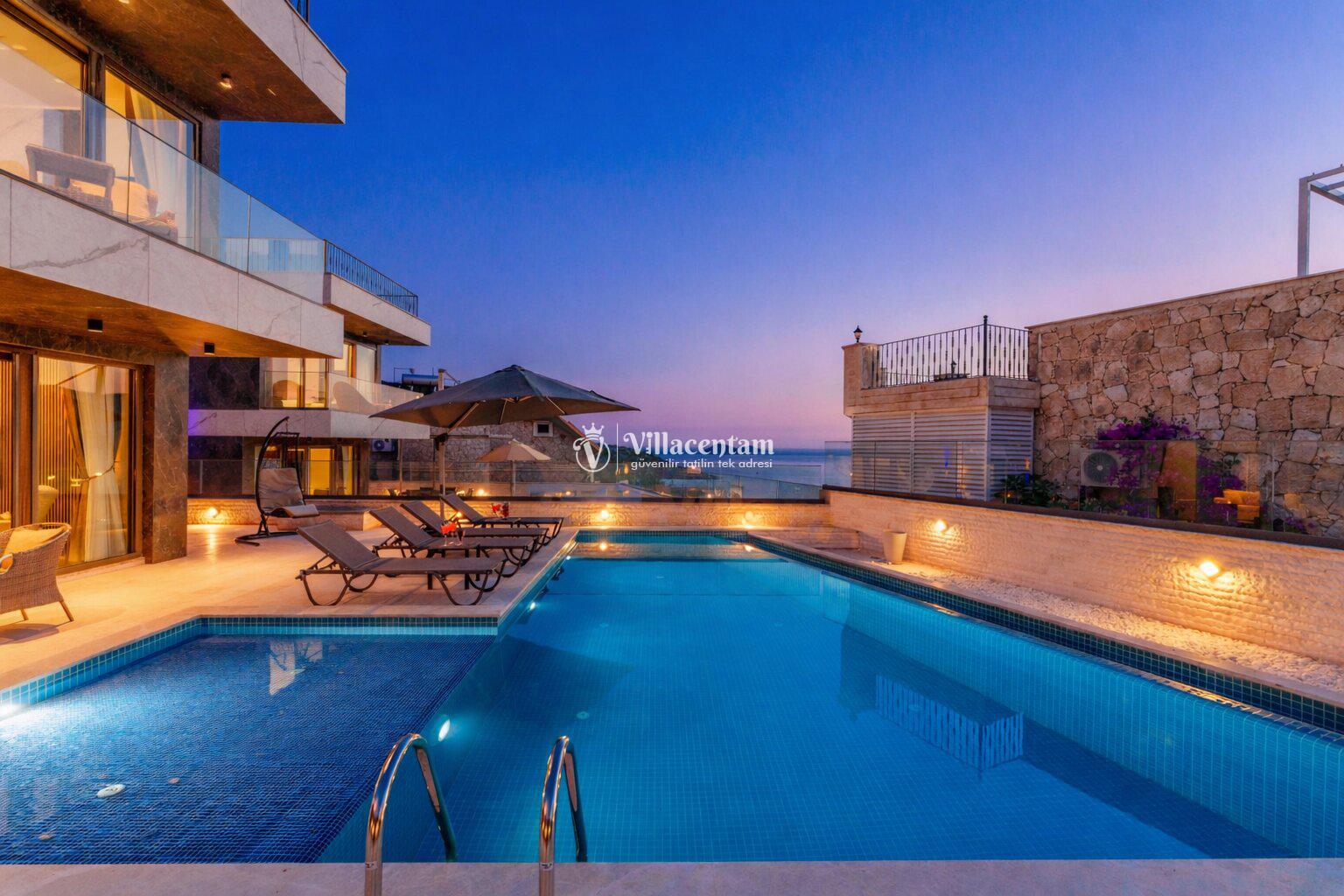 Modern mimariye sahip villamızda özel yüzme havuzu, jakuzi, sauna, Türk hamamı ve ısıtmalı kapalı havuz gibi ayrıcalıklı özellikler bulunmaktadır. Geniş havuz terası, güneşlenme alanı ve oturma grupları sayesinde gün boyu keyifli vakit geçirebilir, akşam saatlerinde ise Kalkan’ın eşsiz manzarası eşliğinde dinlenebilirsiniz.
