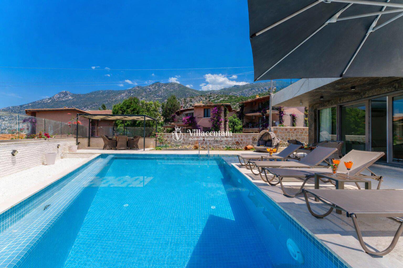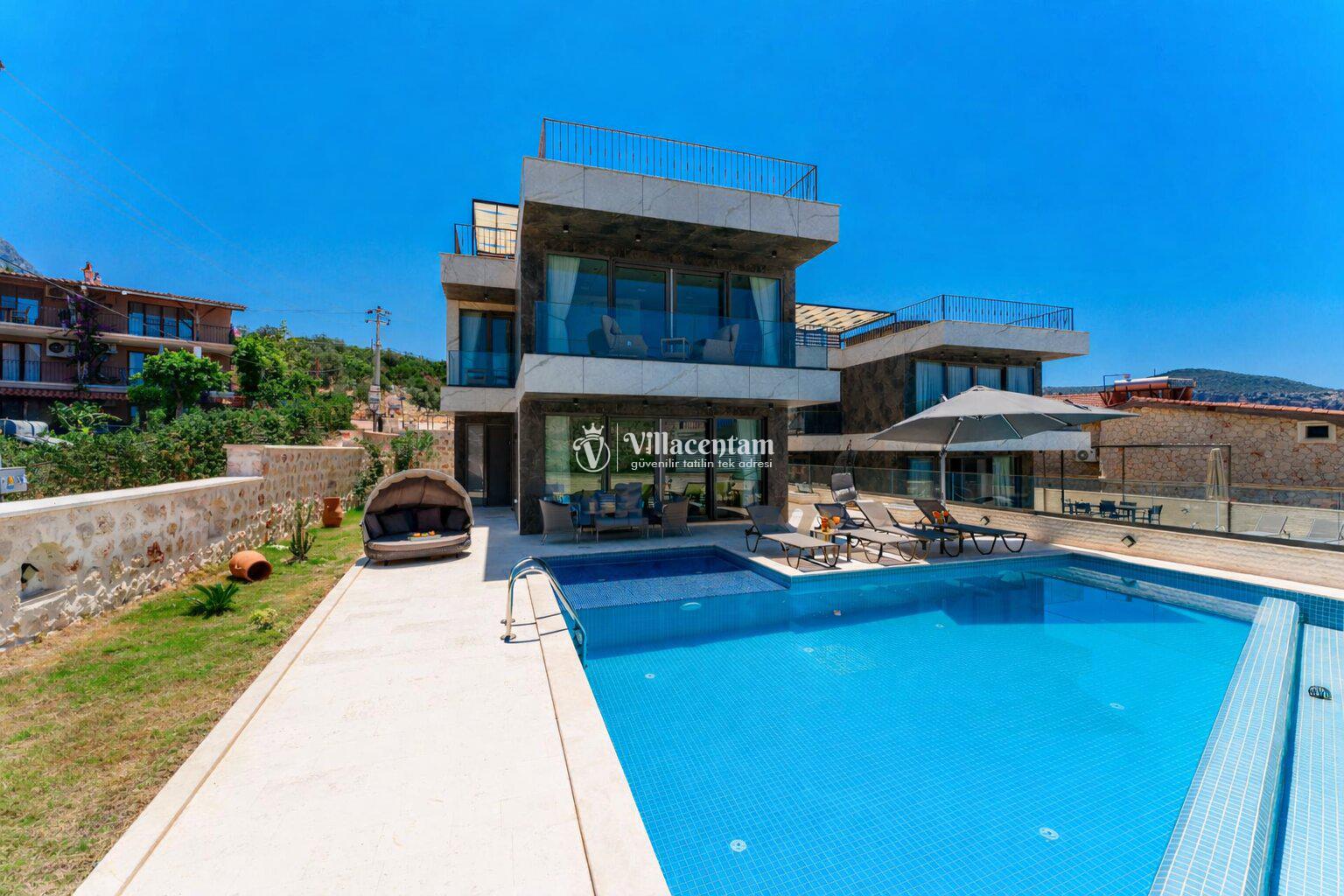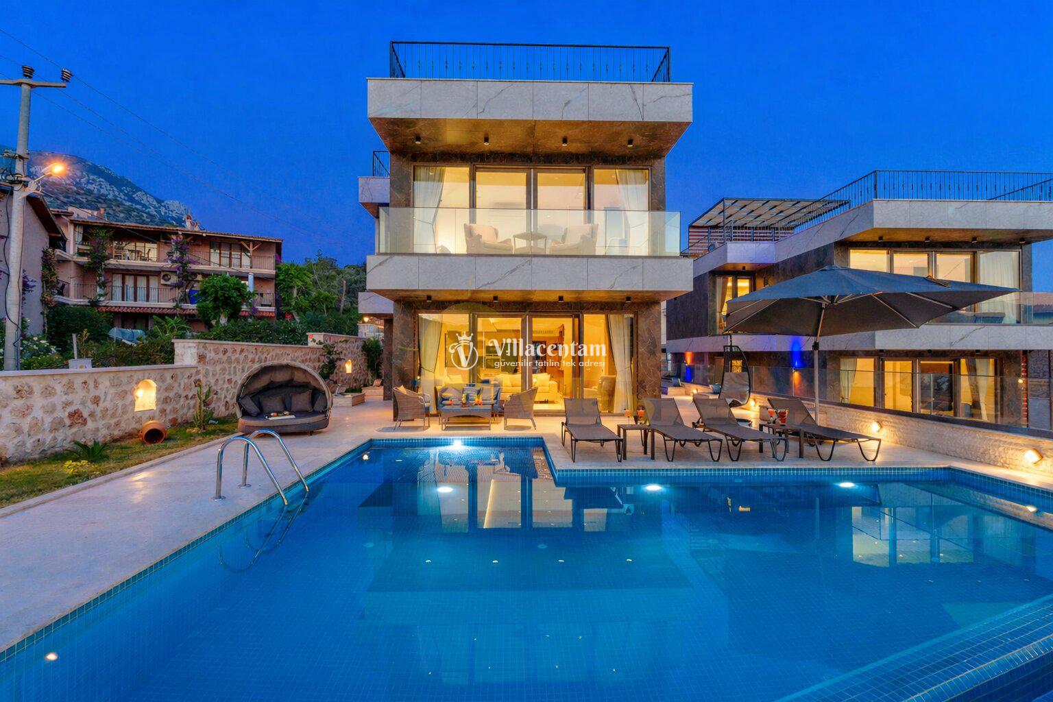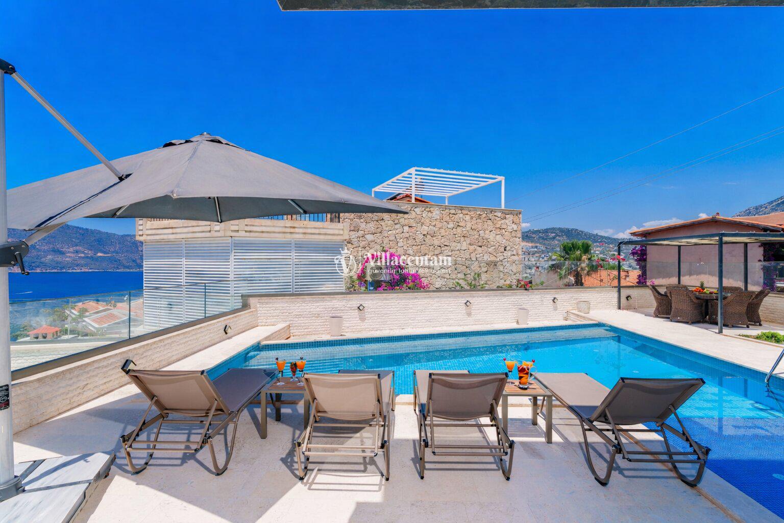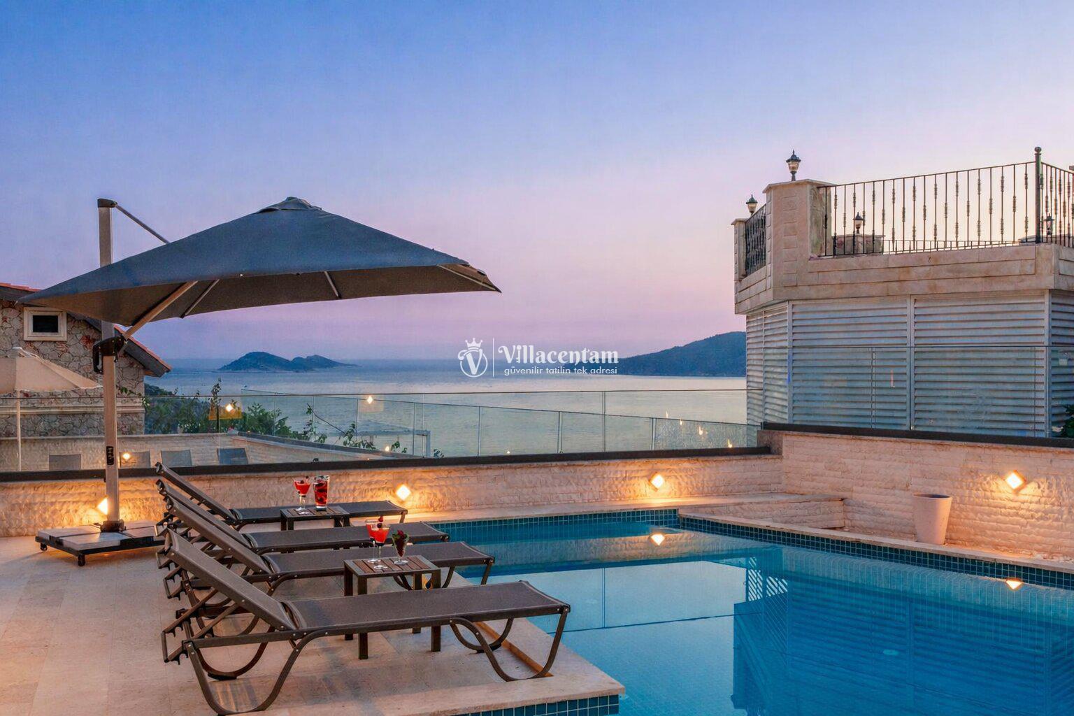 Modern mimariye sahip villamızda özel yüzme havuzu, jakuzi, sauna, Türk hamamı ve ısıtmalı kapalı havuz gibi ayrıcalıklı özellikler bulunmaktadır. Geniş havuz terası, güneşlenme alanı ve oturma grupları sayesinde gün boyu keyifli vakit geçirebilir, akşam saatlerinde ise Kalkan’ın eşsiz manzarası eşliğinde dinlenebilirsiniz.