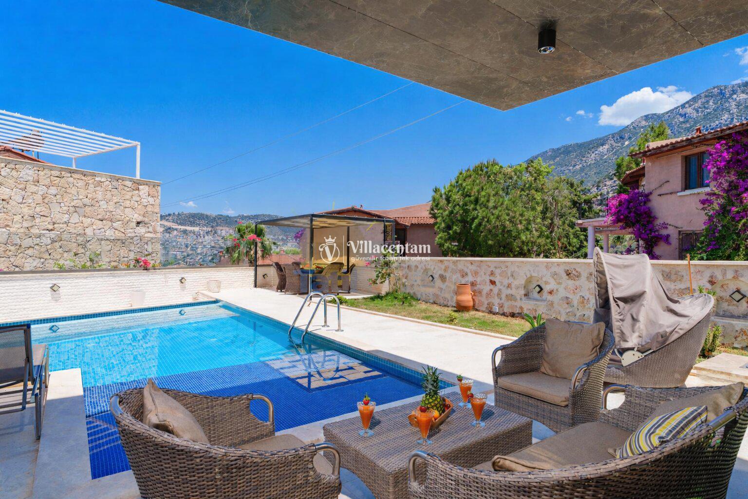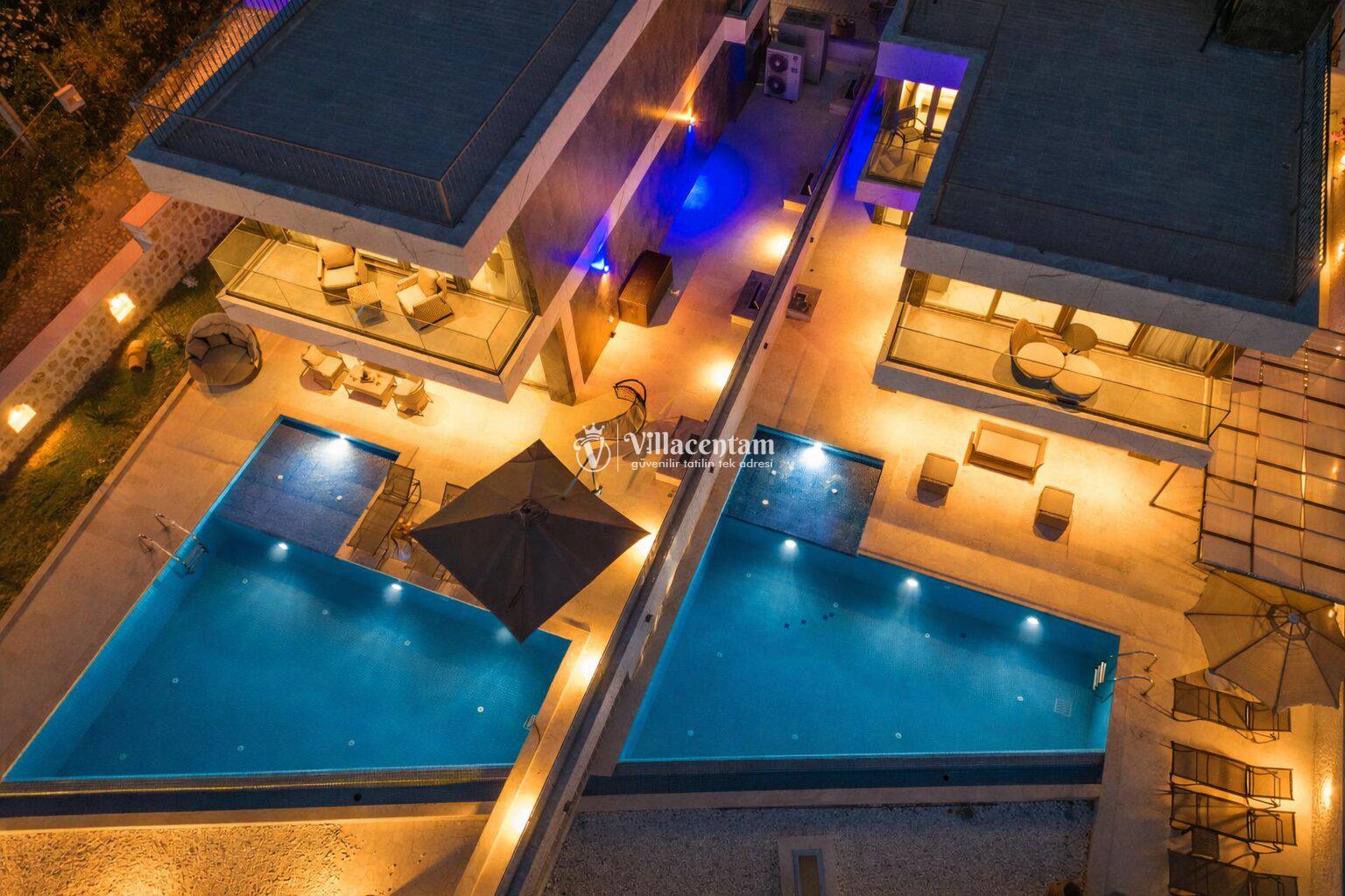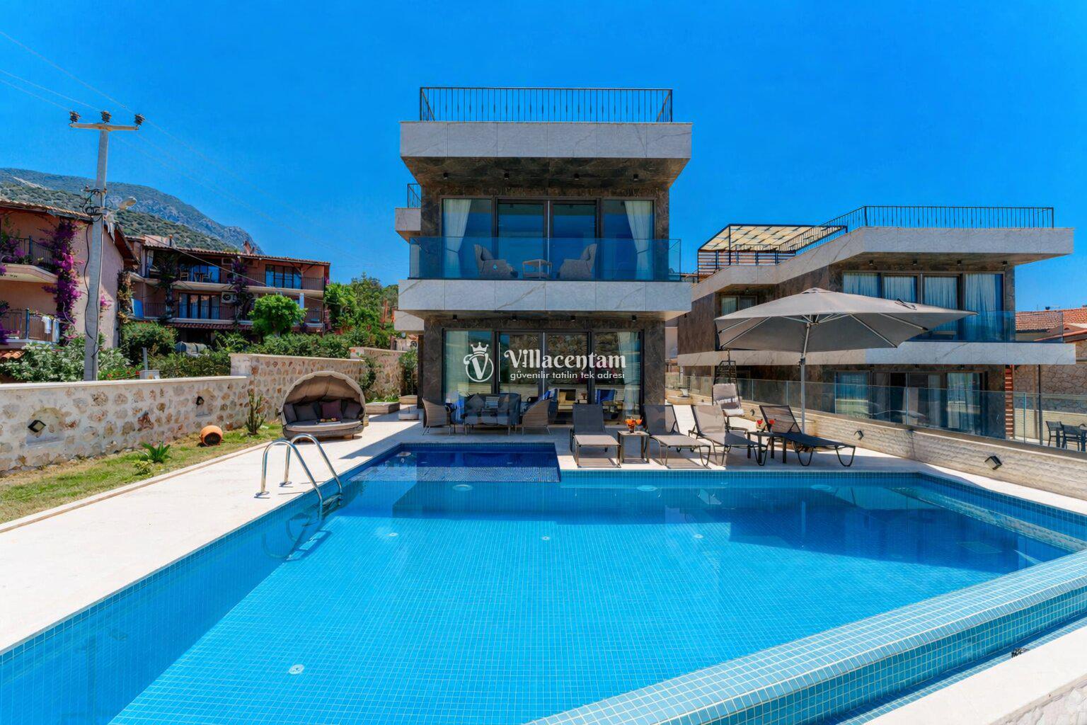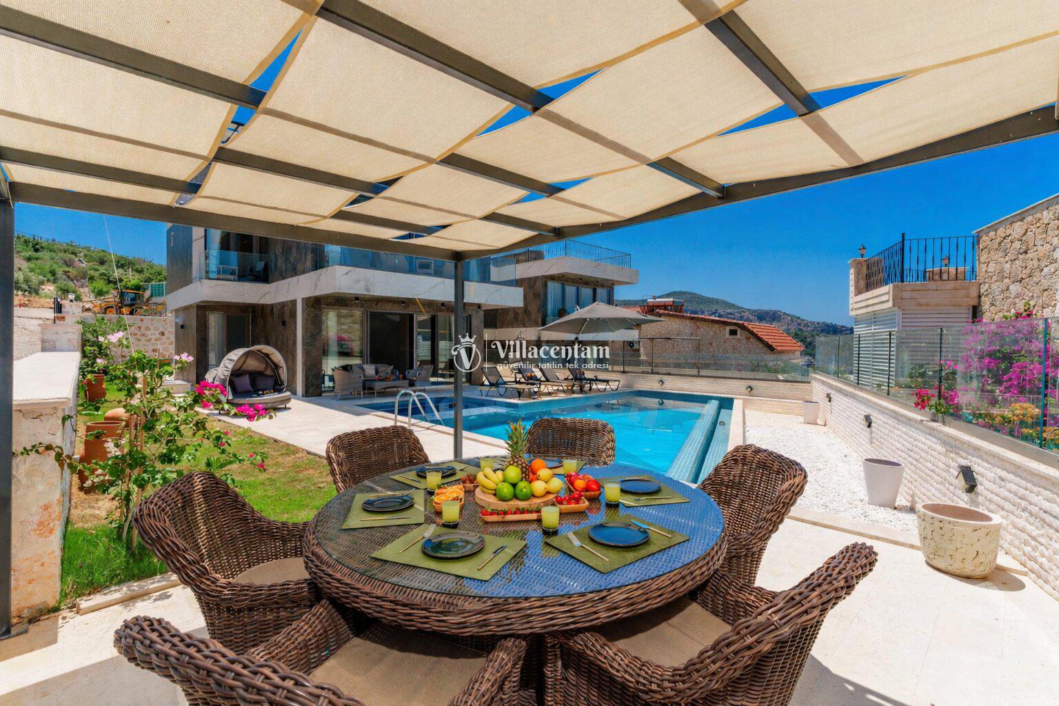 Modern mimariye sahip villamızda özel yüzme havuzu, jakuzi, sauna, Türk hamamı ve ısıtmalı kapalı havuz gibi ayrıcalıklı özellikler bulunmaktadır. Geniş havuz terası, güneşlenme alanı ve oturma grupları sayesinde gün boyu keyifli vakit geçirebilir, akşam saatlerinde ise Kalkan’ın eşsiz manzarası eşliğinde dinlenebilirsiniz.