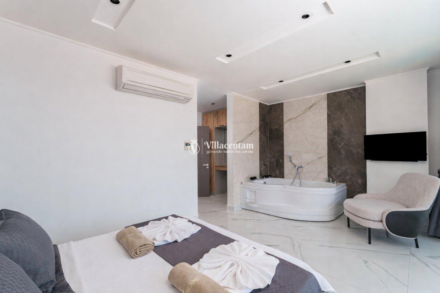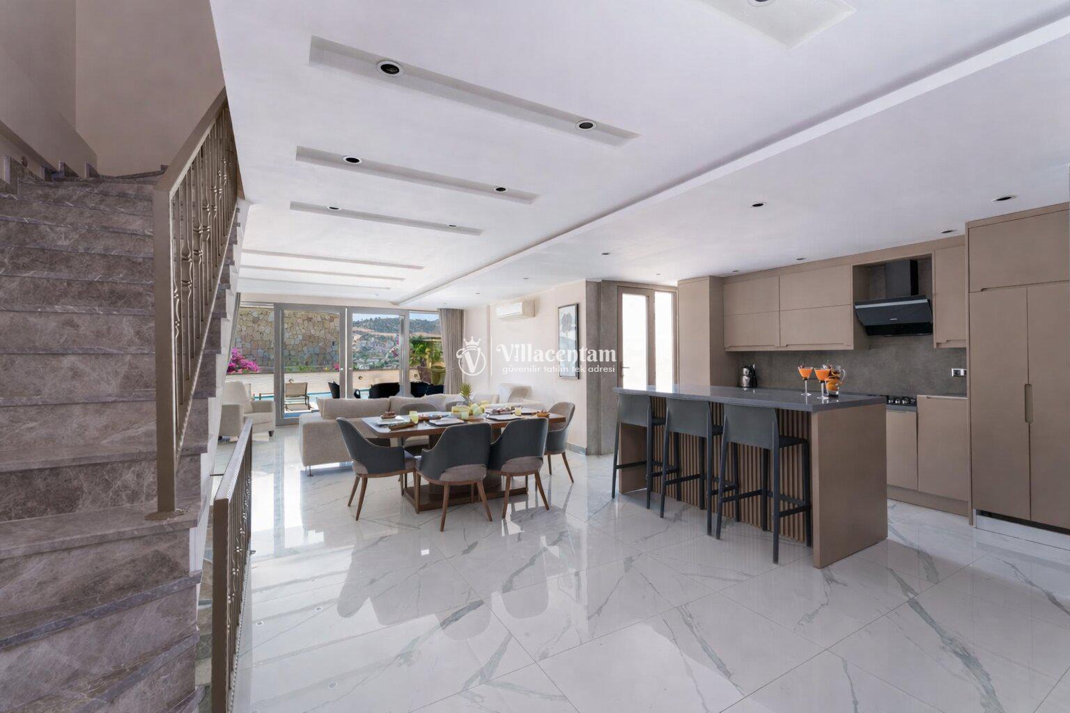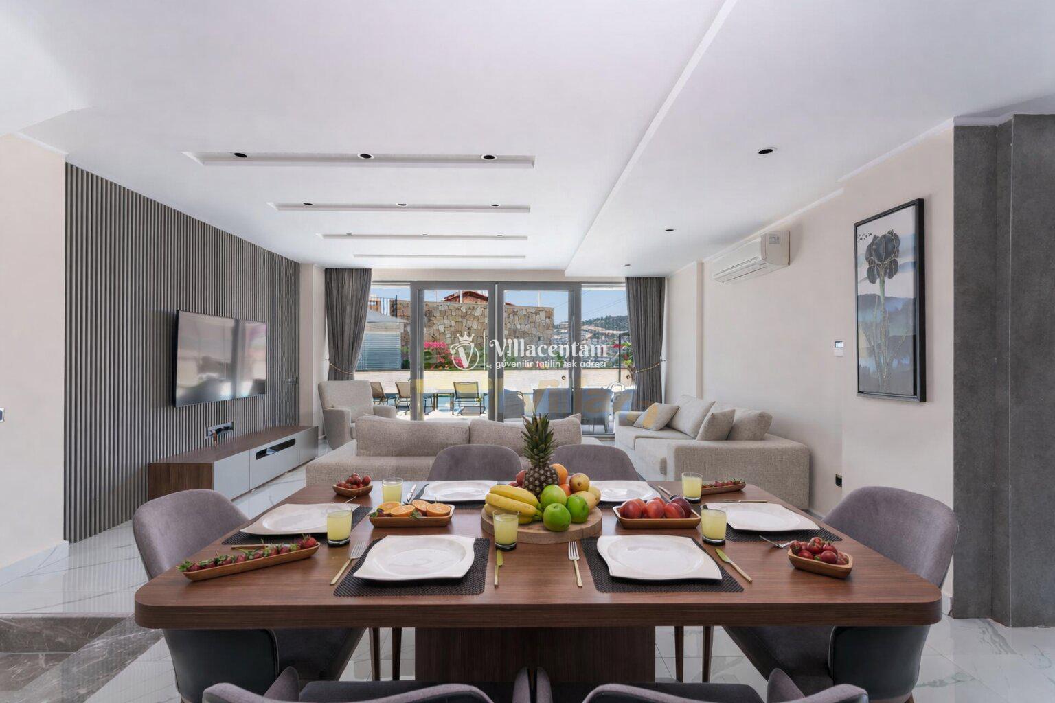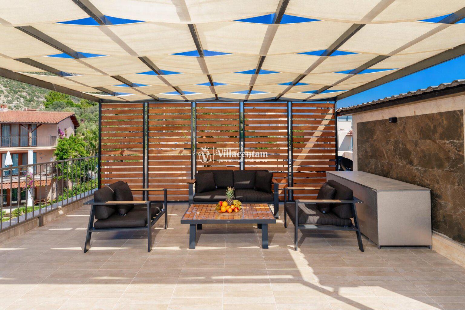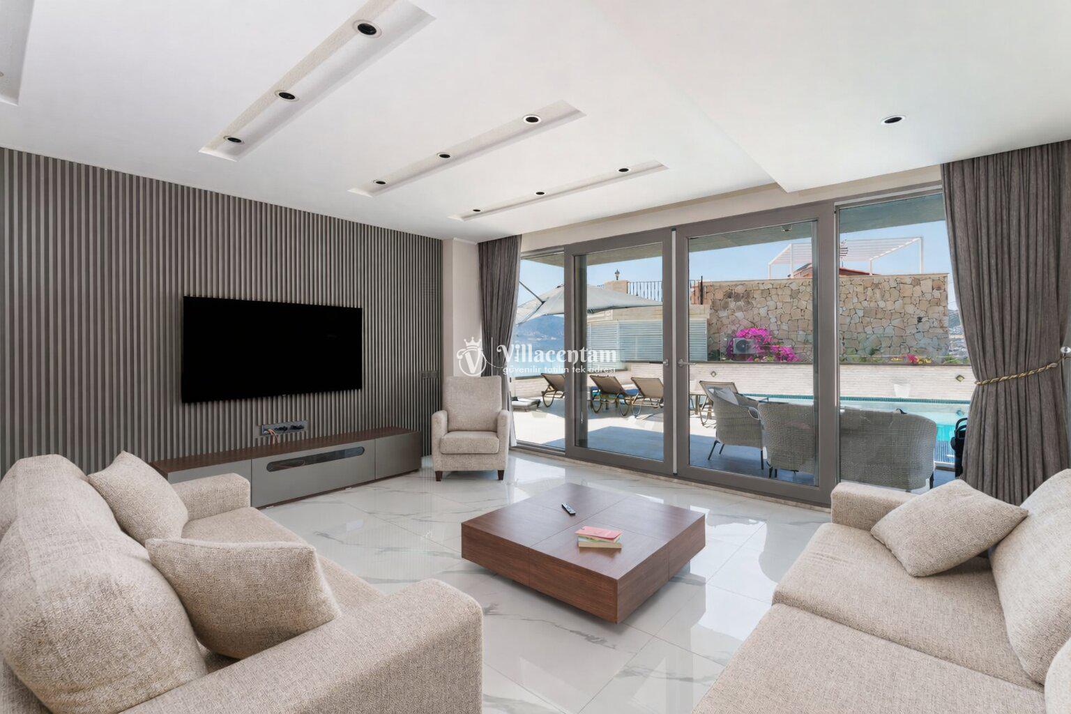 Modern mimariye sahip villamızda özel yüzme havuzu, jakuzi, sauna, Türk hamamı ve ısıtmalı kapalı havuz gibi ayrıcalıklı özellikler bulunmaktadır. Geniş havuz terası, güneşlenme alanı ve oturma grupları sayesinde gün boyu keyifli vakit geçirebilir, akşam saatlerinde ise Kalkan’ın eşsiz manzarası eşliğinde dinlenebilirsiniz.