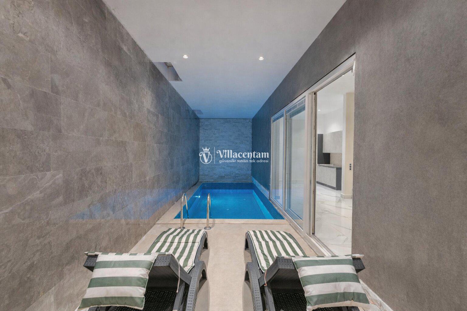 Not: Villamızın kapalı havuzu ısıtmalı olup, misafirlerimizin isteğine göre ücretsiz ( 1 Ekim - 30 Nisan tarihleri arasında ) olarak ısı derecesi ayarlanabilmektedir. Maksimum 25-28 derece) Diğer aylarda ise günlük 2000 TL ücret karşılığında hizmete sunulmaktadır.