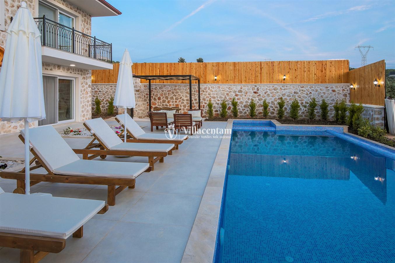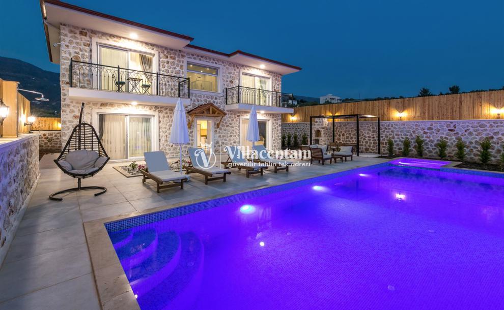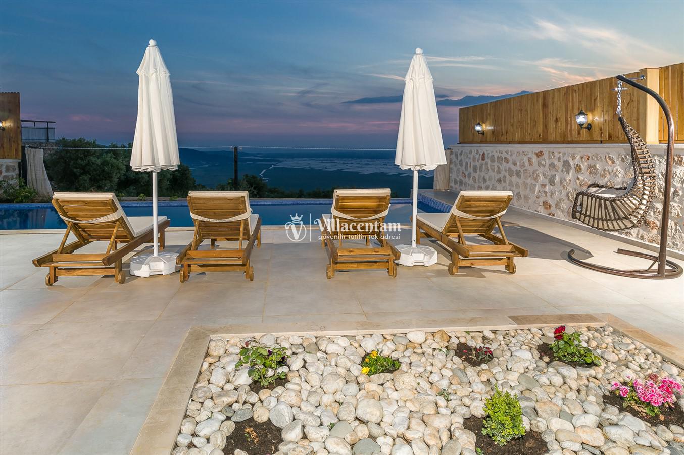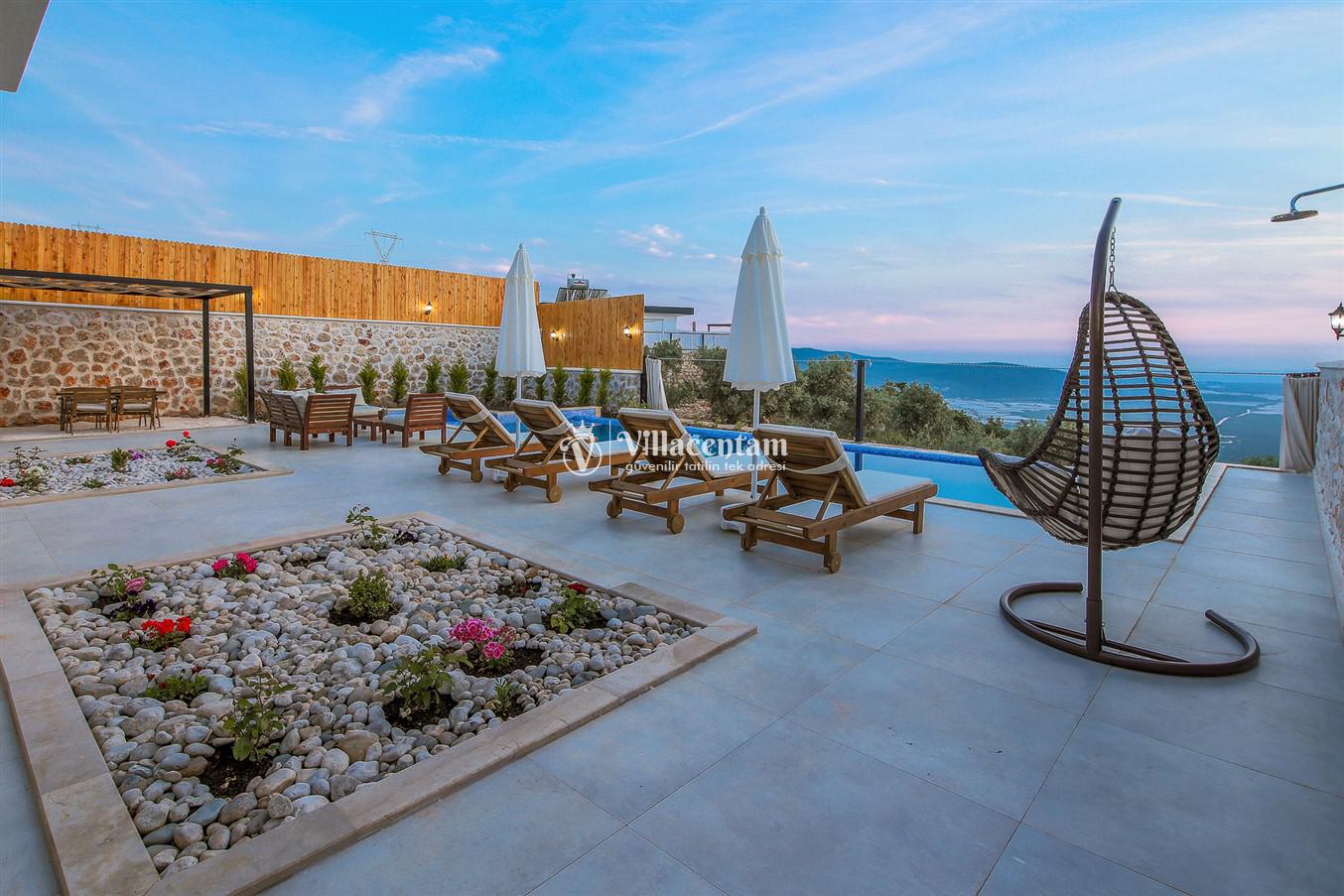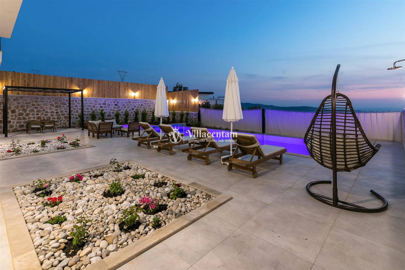 Villanın öne çıkan detaylarından biri, içerisinde yer alan jakuzili özel alanıdır. Günün yorgunluğunu jakuzide dinlenerek atabilir, manzara eşliğinde romantik ve keyifli anlar yaşayabilirsiniz. Bahçede bulunan salıncak ise hem çiftler hem de aileler için huzurlu vakit geçirme imkânı sunar.