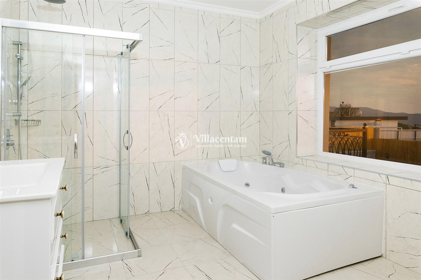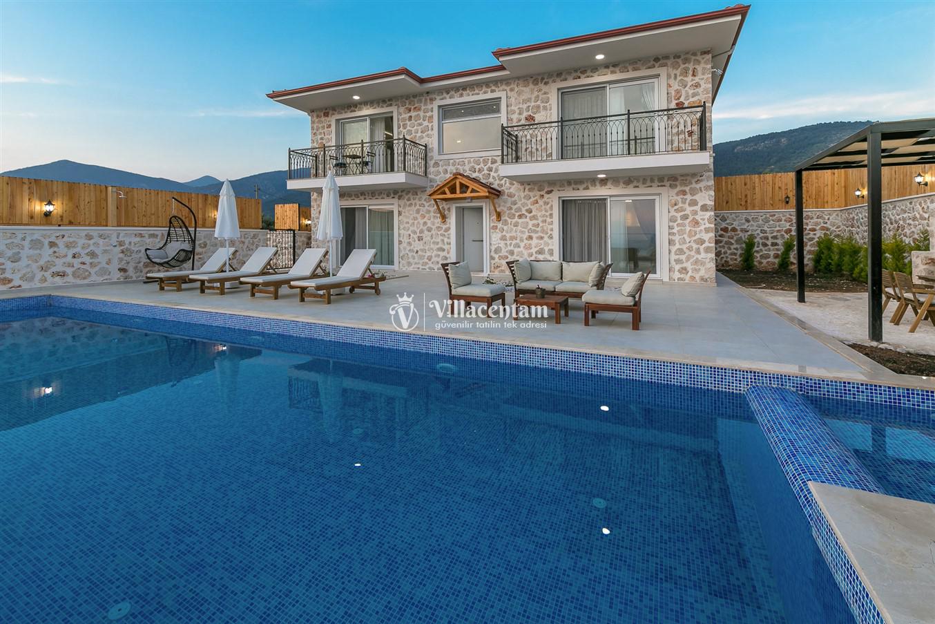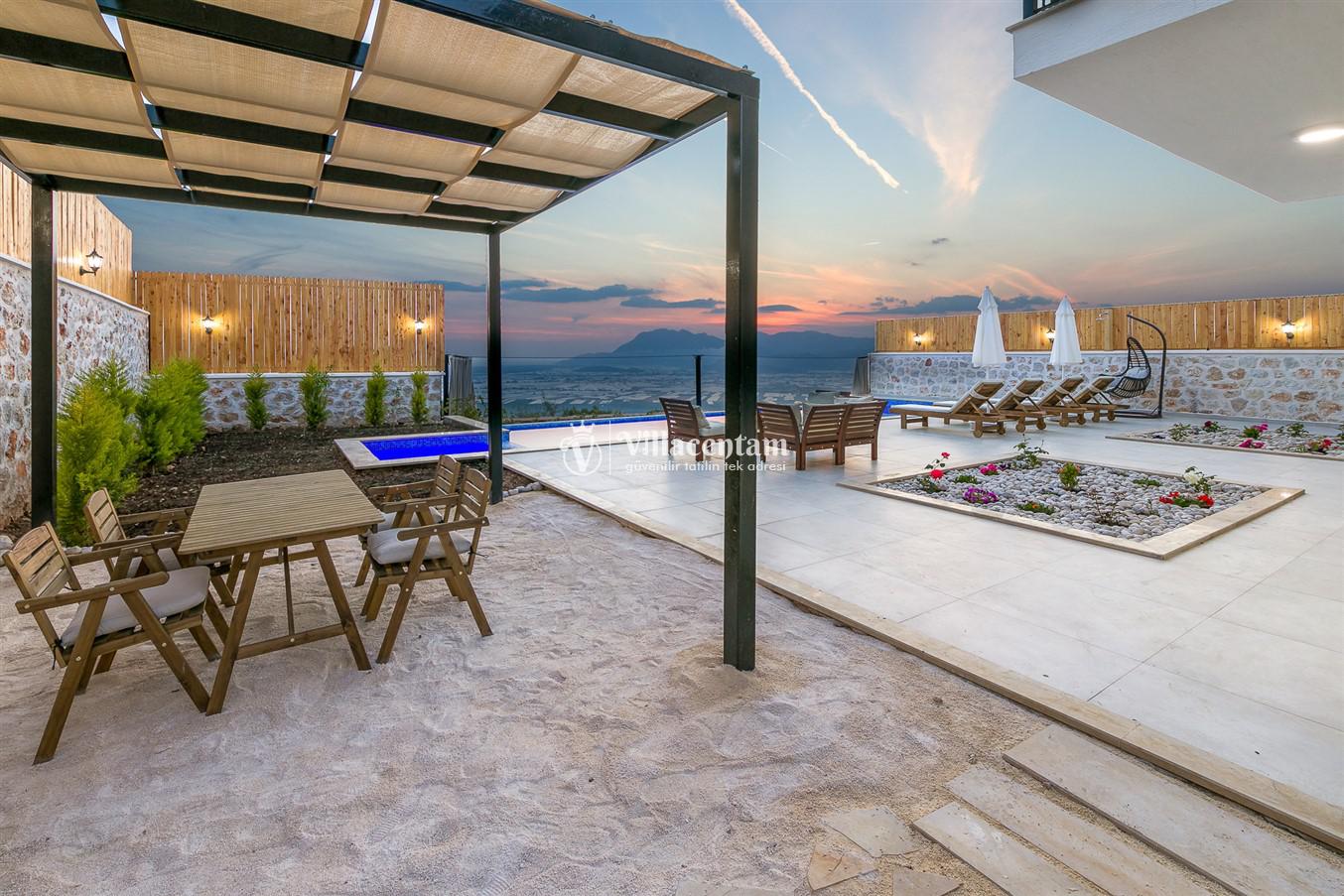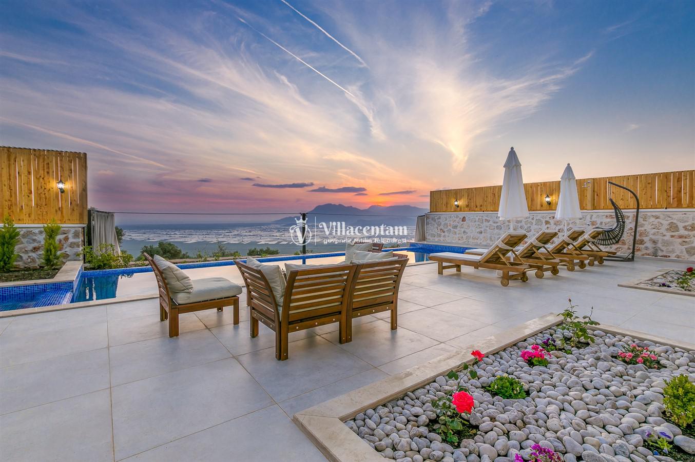 Villanın öne çıkan detaylarından biri, içerisinde yer alan jakuzili özel alanıdır. Günün yorgunluğunu jakuzide dinlenerek atabilir, manzara eşliğinde romantik ve keyifli anlar yaşayabilirsiniz. Bahçede bulunan salıncak ise hem çiftler hem de aileler için huzurlu vakit geçirme imkânı sunar.