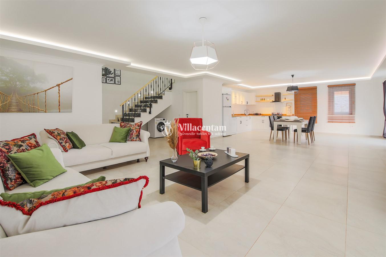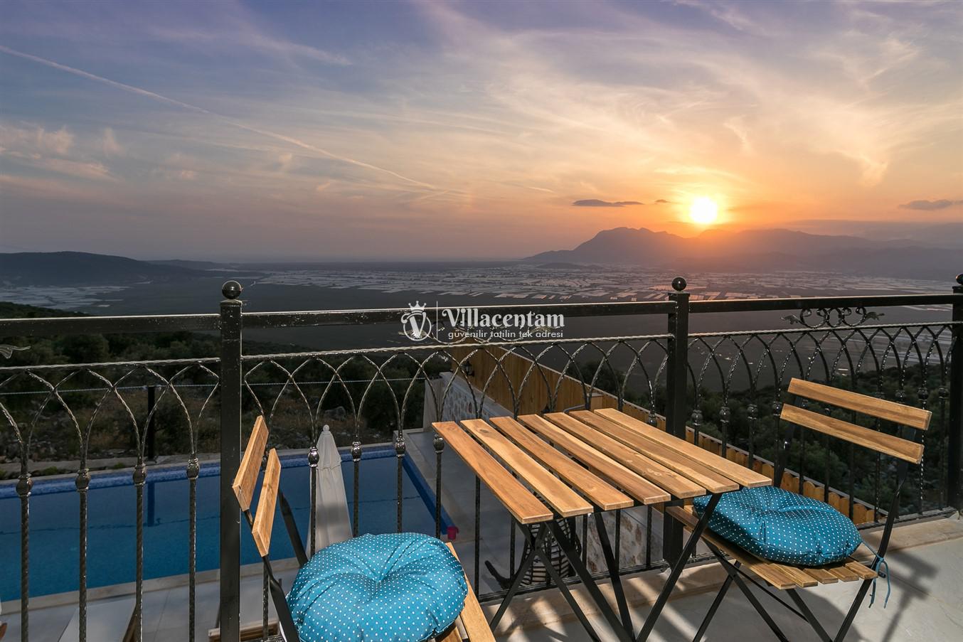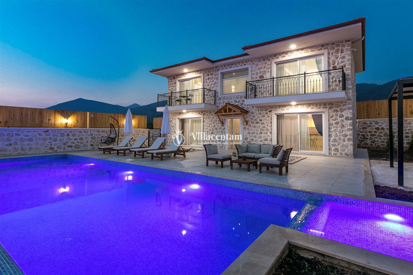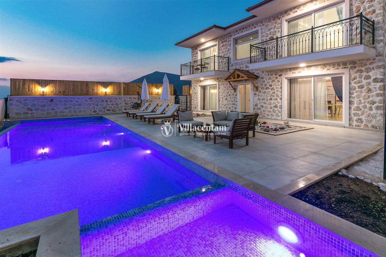 Villanın öne çıkan detaylarından biri, içerisinde yer alan jakuzili özel alanıdır. Günün yorgunluğunu jakuzide dinlenerek atabilir, manzara eşliğinde romantik ve keyifli anlar yaşayabilirsiniz. Bahçede bulunan salıncak ise hem çiftler hem de aileler için huzurlu vakit geçirme imkânı sunar.
