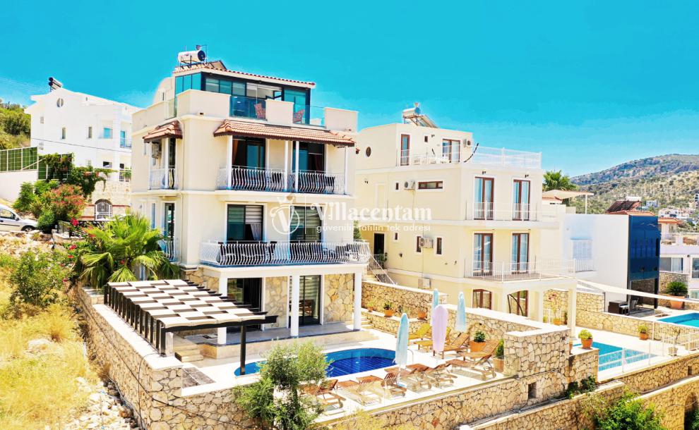 Kalkan Kışla mevkiinde konumlanmış olan Villa Leo, 4 katlı lüks kiralık villalarımız arasında yer almaktadır. Deniz ve doğa manzarasına hakim olan villamız da sevdiklerinizle huzur dolu anların tadını çıkaracak ve tüm yorgunluğunuzu atacaksınız. Şık ve konforlu bir şekilde dizayn edilmiş olan kiralık villamızda 5 adet yatak odası bulunmakta olup, 10 kişi konaklayabilmektedir. Master süit yatak odasının içerisinde jakuzi de bulunmaktadır. Market ve restoranlara yürüme mesafesinedir. Havuz terası donanımlı ve ferahtır. Geniş aileler ve arkadaş grupları tercih edebilir ve heyecan dolu anların tadını çıkarabilirler.