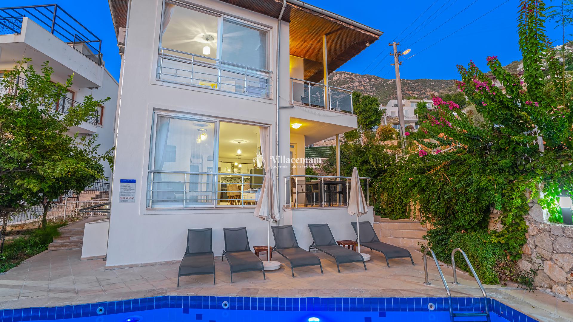 Villa Leo Kızıltaş, Kalkan’ın merkezine yürüme mesafesinde konumlanan, deniz manzarası ve avantajlı lokasyonuyla öne çıkan konforlu bir tatil villasıdır. 4 yatak odası ve 8 kişilik konaklama kapasitesiyle geniş aileler ve arkadaş grupları için ideal bir seçenek sunan villa, hem merkezi konumda olmak hem de sakin bir villa tatili yaşamak isteyen misafirler için oldukça uygundur. Sayfadaki bilgilere göre villa, merkeze yaklaşık 3 dakikalık yürüme mesafesinde yer almakta ve 7,5 metre uzunluğunda özel yüzme havuzuna sahiptir.