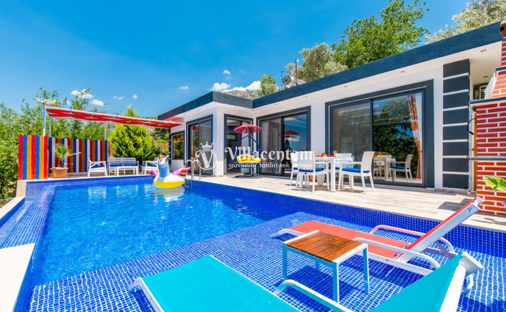 Villa Linay, Kalkan Üzümlü köyünde konumlanmakta olan, yeşilliklerin arasında doğa manzaralı kiralık bir villadır. Modern ve konforlu bir şekilde dizayn edilen yazlık villamızda 1 adet yatak odası bulunmakta olup, 2 kişiye konaklama imkanı sağlamaktadır. Yatak odasının içerisinde tüm yorgunluğunuzu atabileceğiniz jakuzi yer almaktadır. Her bir detayın düşünüldüğü villamızda dış özel yüzme havuzuna entegre sığ havuz bulunmaktadır. Ayrıca villamızda bebek yatağı ve mama sandalyeside mevcuttur. Özellikle balayı çiftlerimize hitap eden yazlık villamızın havuz ve havuz terası korunaklı hale getirilmiştir. Kiralık villamız dışarıdan gözükmemektedir. Muhafazakar çiftlerimiz de gönül rahatlığı ile tercih edebilirler. Sessizlik ve sakinlik içerisinde huzur dolu bir balayı tatili için Villa Linay sizler için doğru bir tercih olacaktır.