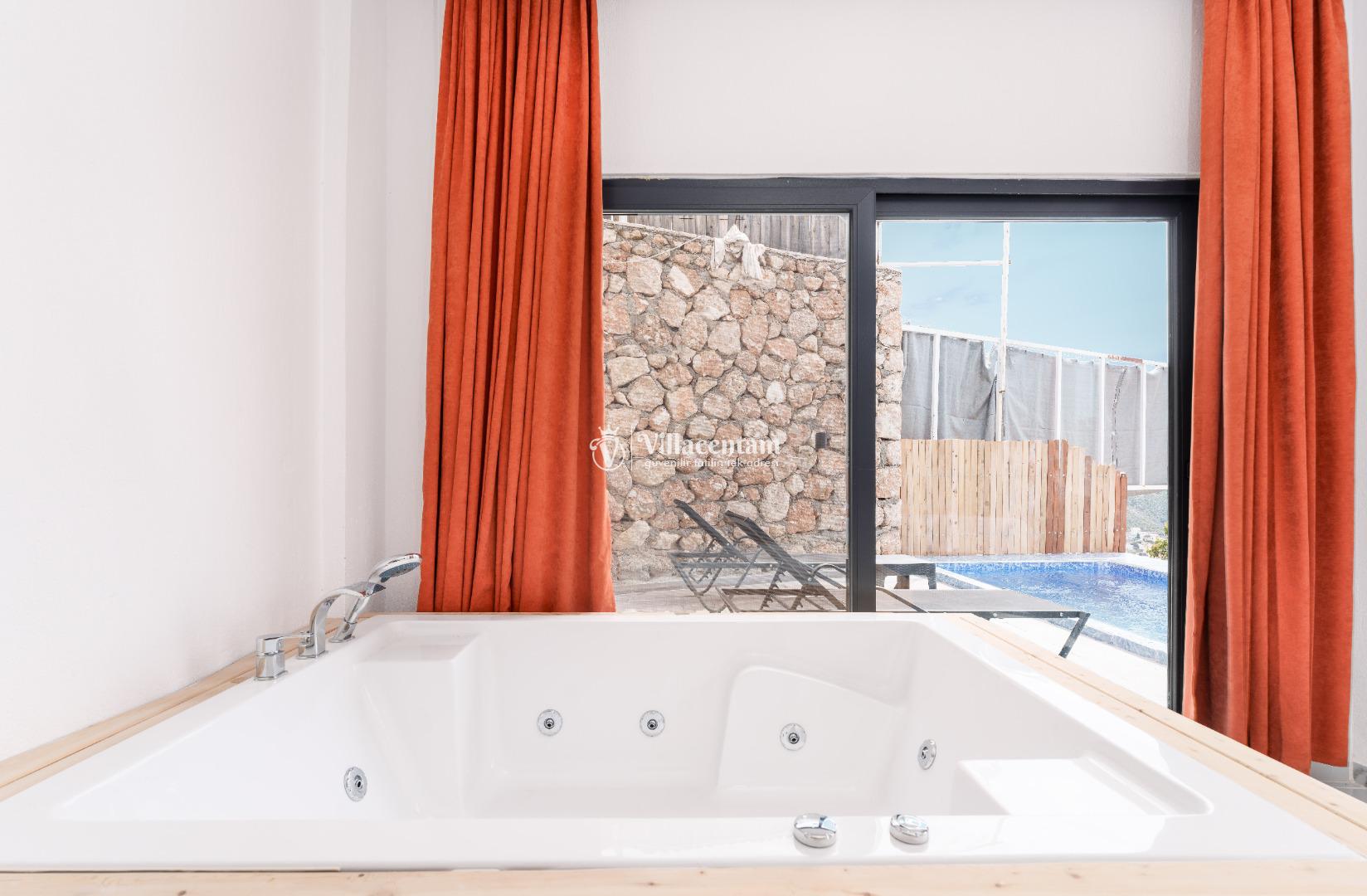 *Villalarda sıcak su için güneş enerjili su ısıtma sistemleri kullanılmaktadır. Çok yoğun sıcak su kullanımında, yoğunluğa ve su tankının büyüklüğüne bağlı olarak su tankında sıcak su tükenebilmekte ve tekrar suyun ısınması için belirli bir süre geçmesi gerekmektedir. Bu not sadece bu villa ile ilgili değil, tüm villalarımız için geçerli bir durumdur.