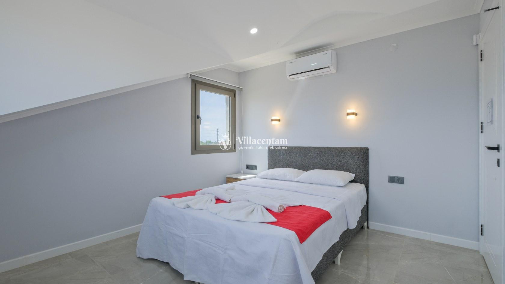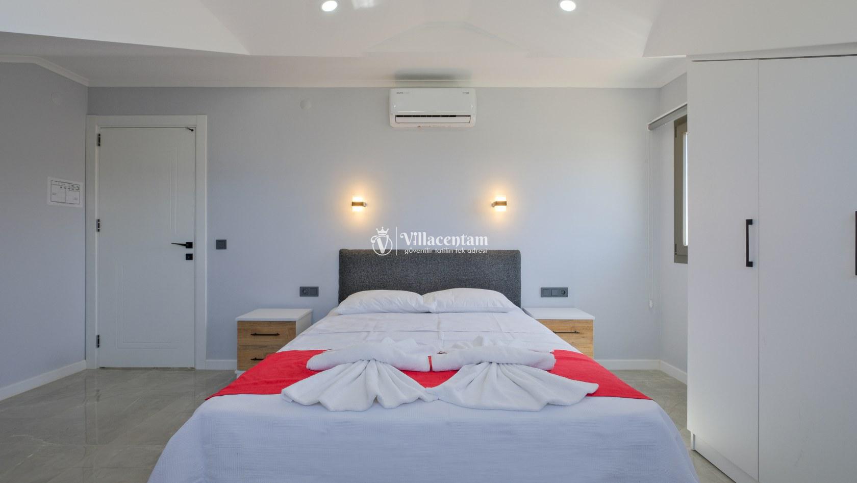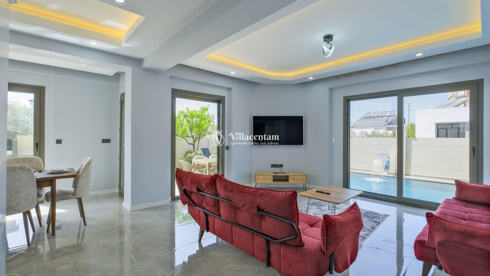 Toplam 4 yatak odasına sahip olan villa 8 kişilik konaklama kapasitesi ile ferah ve rahat bir tatil ortamı sağlar. Modern ve kullanışlı şekilde dizayn edilmiş salonu, tam donanımlı mutfağı ve geniş oturma alanları sayesinde ev konforunda bir konaklama deneyimi sunar. Yatak odaları rahat bir uyku sağlayacak şekilde düzenlenmiş olup, aileler ve gruplar için konfor ön planda tutulmuştur.