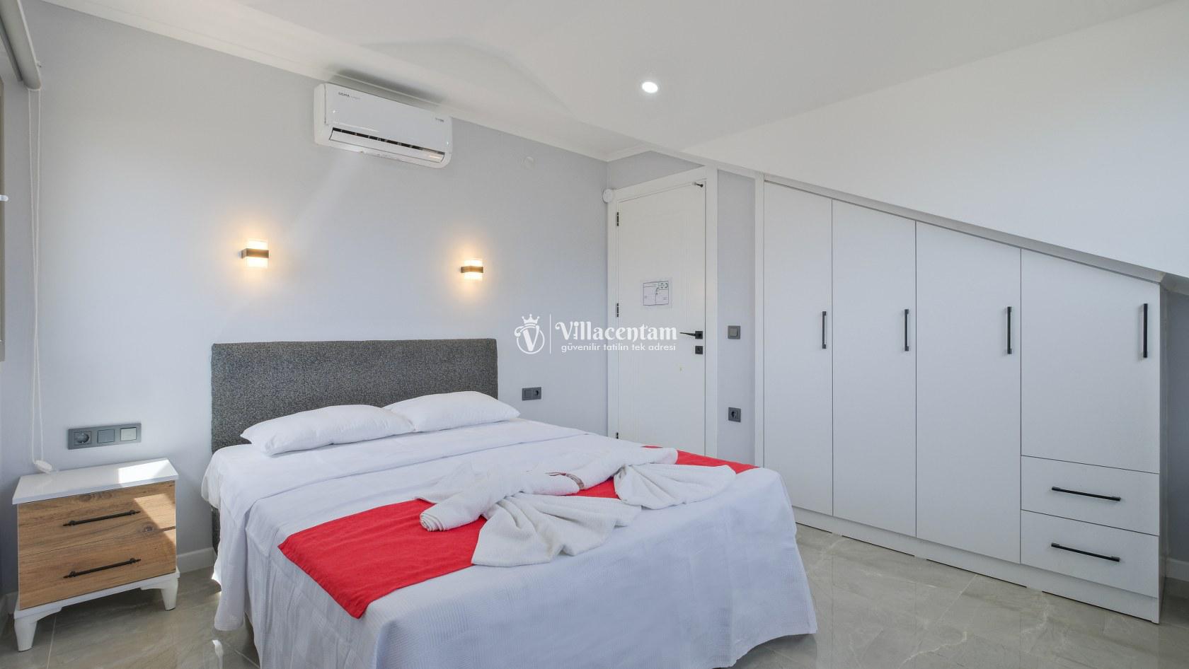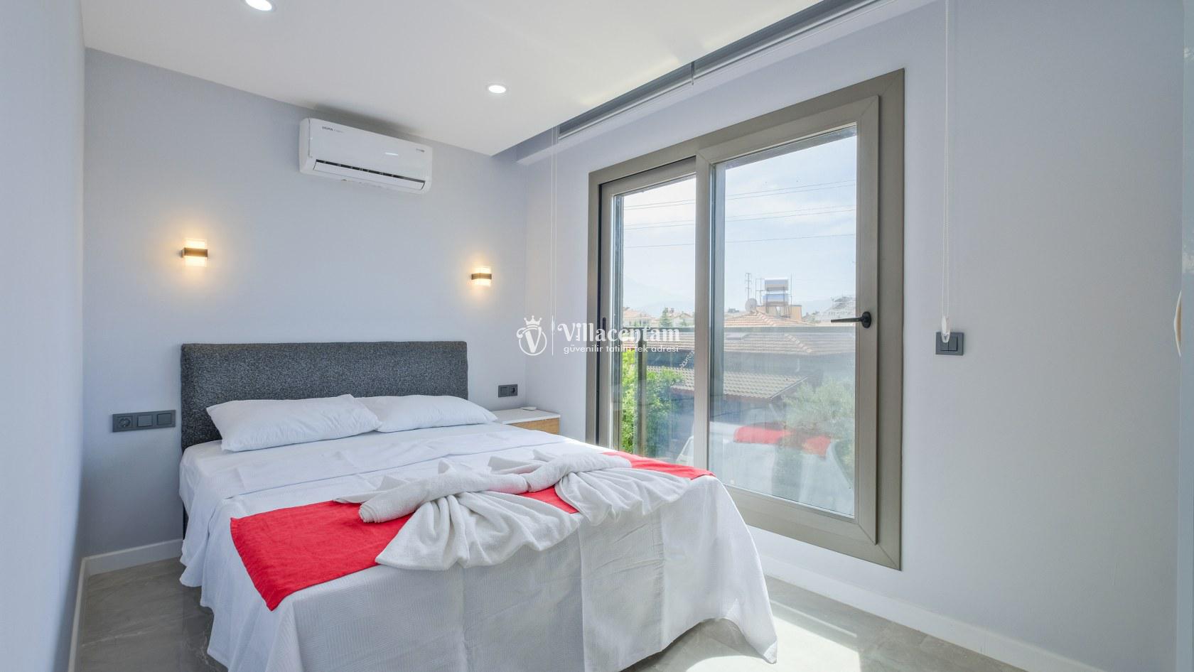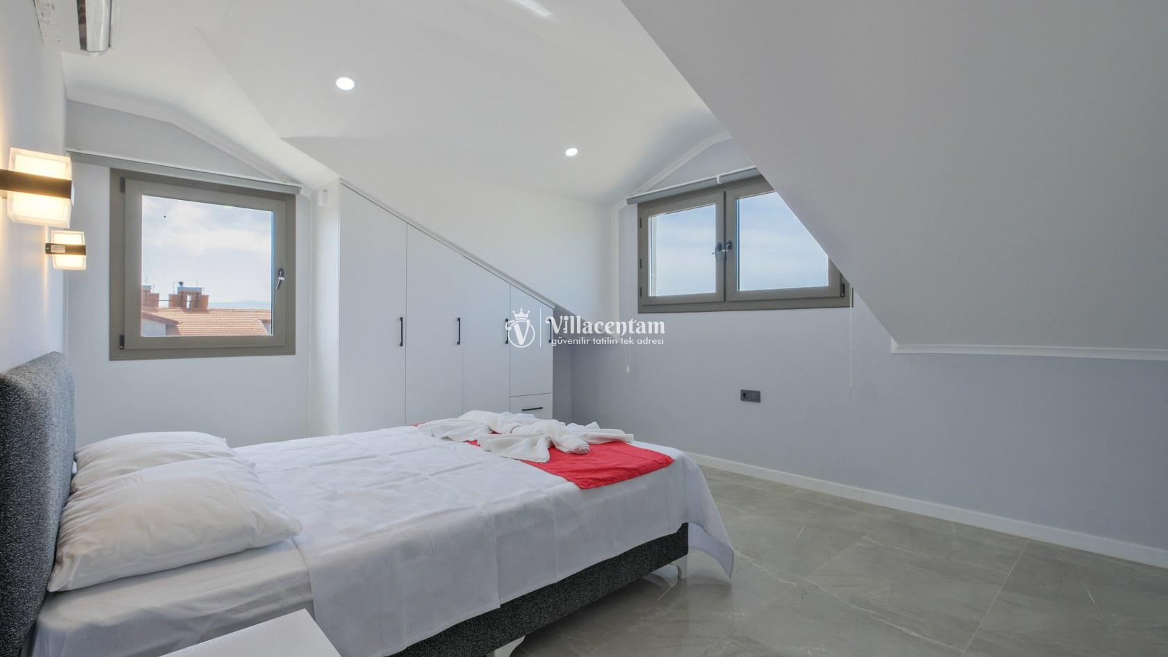 Toplam 4 yatak odasına sahip olan villa 8 kişilik konaklama kapasitesi ile ferah ve rahat bir tatil ortamı sağlar. Modern ve kullanışlı şekilde dizayn edilmiş salonu, tam donanımlı mutfağı ve geniş oturma alanları sayesinde ev konforunda bir konaklama deneyimi sunar. Yatak odaları rahat bir uyku sağlayacak şekilde düzenlenmiş olup, aileler ve gruplar için konfor ön planda tutulmuştur.